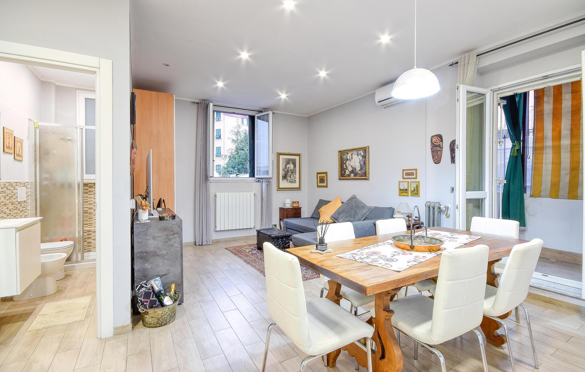 Denne lyse og indbydende lejlighed ligger lige uden for centrum af den gamle havneby Genova. Her får I den ideelle base for en smuk parferie, hvor I kan hvile stængerne efter en hyggelig dag med byvandring og store oplevelser. Tag jer god tid med madlavningen og nyd en rolig middag for to. Lejligheden har en super beliggenhed til at begive jer på eventyr i den historiske by.