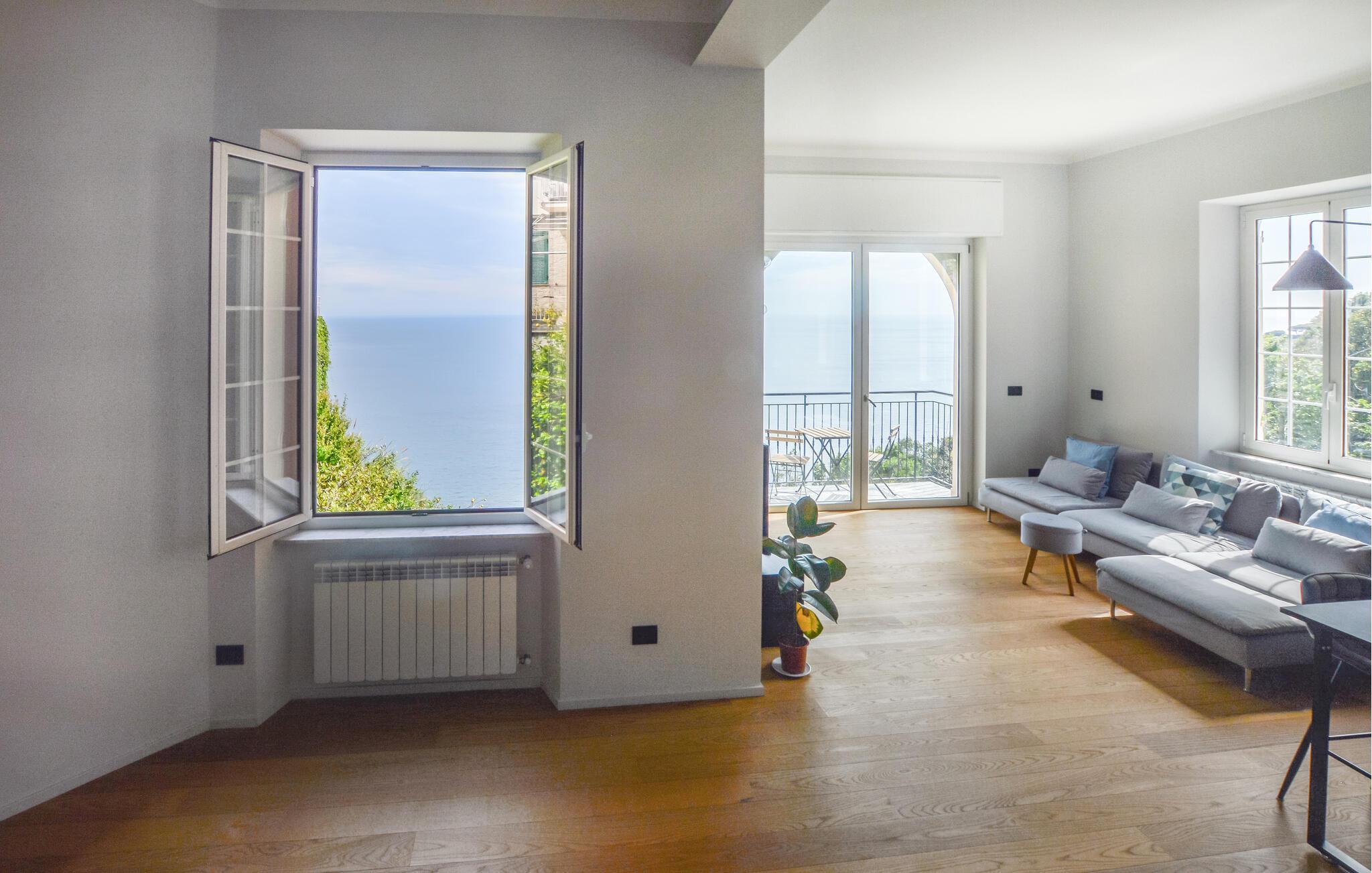 Hvis I er på udkig efter en hyggelig og veludstyret feriebolig lige ved havet, er denne lækre lejlighed ved Genova det helt rette valg for jer. Udsigten er allelunde fantastisk, og indvendigt emmer det af varme farveskalaer, gode møbler og moderne faciliteter over to etager, der gør jeres ophold helt og aldeles bekymringsfrit med det samme, I ankommer. Tilbered jeres livretter i det veludstyrede køkken og nyd maden på den lille altan, der støder op til stuen, og hvorfra I har en helt mageløs udsigt over det blå hav.