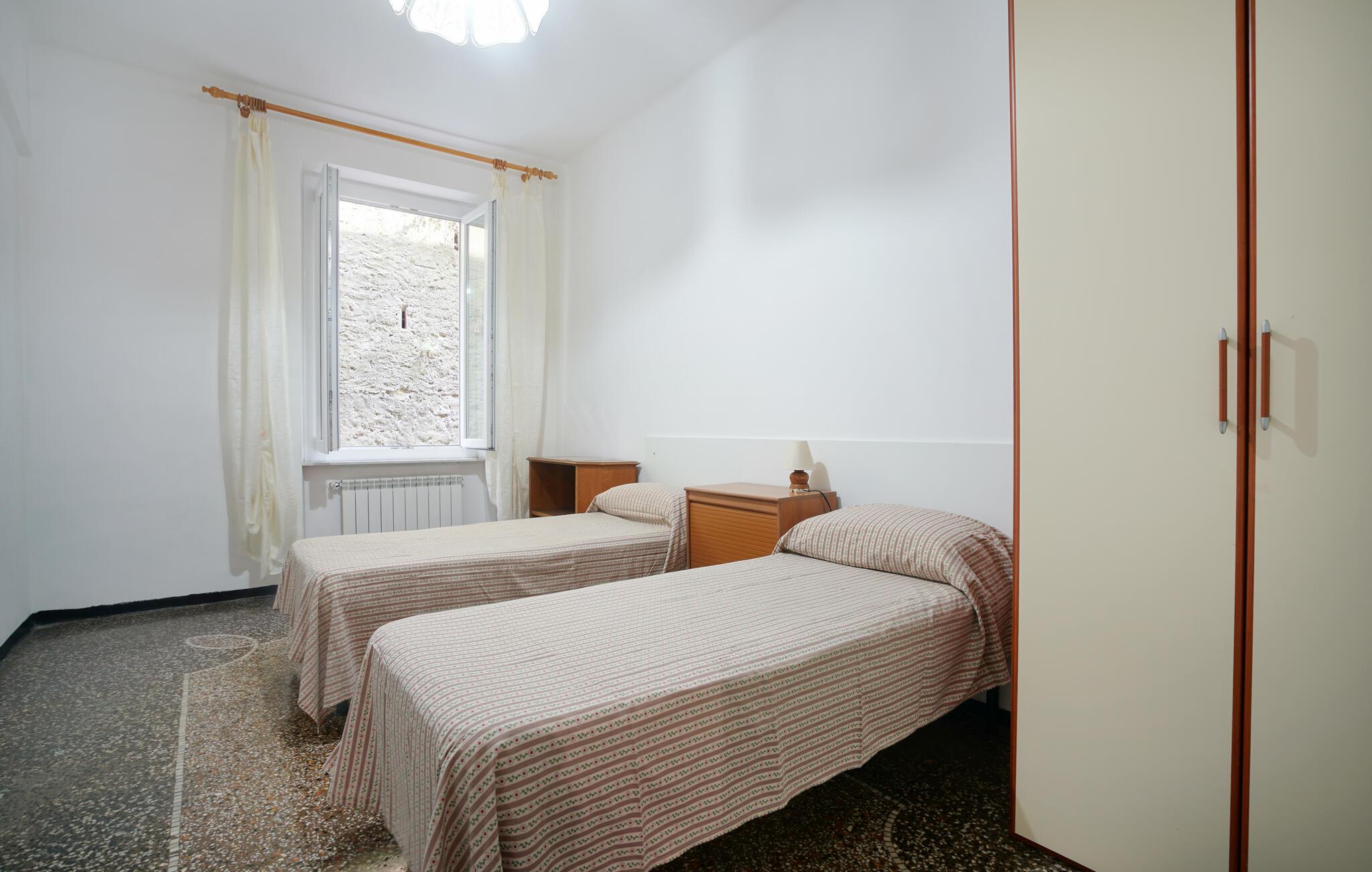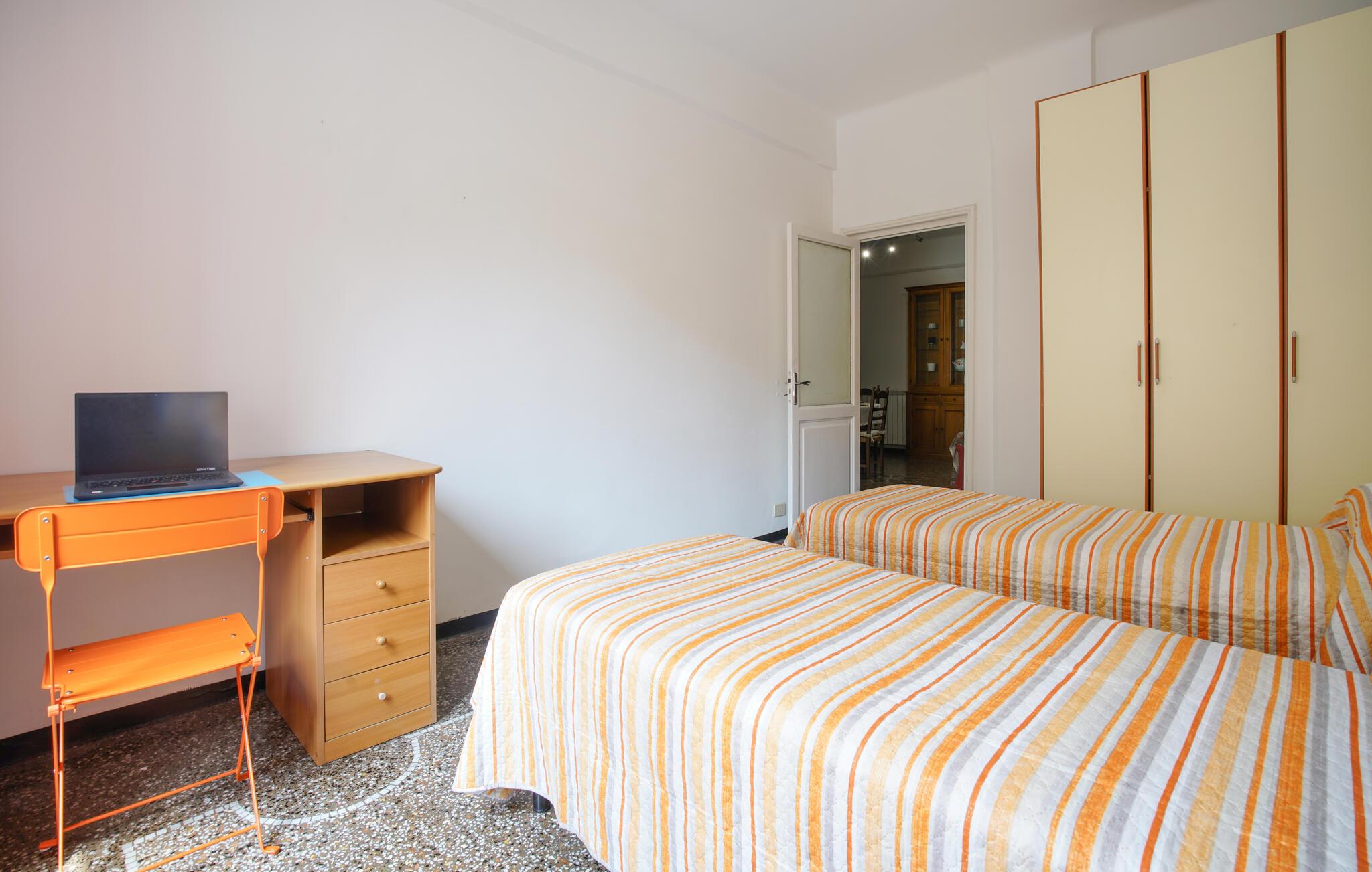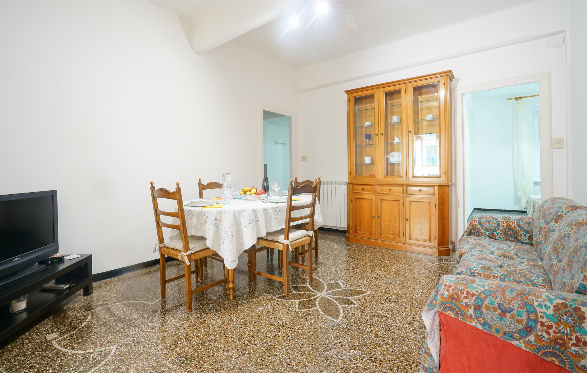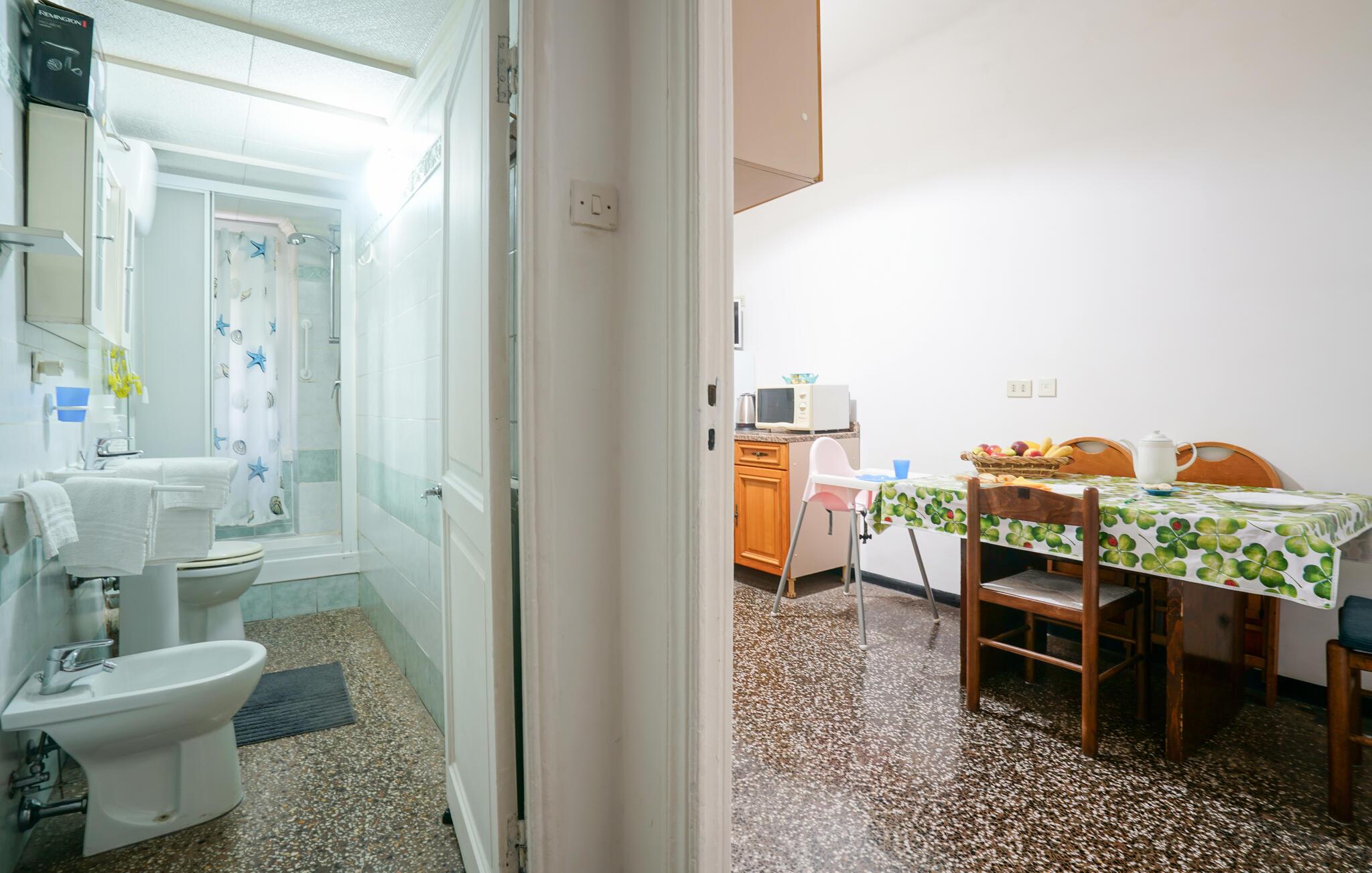 Slap af i denne praktiske ferielejlighed nær havet. Denne hyggelige lejlighed tilbyder alt, hvad I behøver for et problemfrit ophold: en lys stue med spisebord, en behagelig sofa og et lille tv til afslappende aftener. Slap af og nyd livet, mens I tilbereder jeres yndlingsmåltid eller nyder et godt glas vin. Gå ud på altanen om morgenen og start dagen med en let morgenmad ved det hyggelige bistrobord. Nyd den autentiske atmosfære i den lille gyde og planlæg jeres næste ferieaktiviteter. Tag en slentretur til stranden og nyd en forfriskende dukkert i bølgerne. Udforsk Genovas charmerende gamle bydel med dens smalle gader, historiske paladser og små butikker. Tag på udflugter til Riviera di Levante eller besøg det berømte Genova Akvarium. Prøv traditionelle regionale specialiteter som pesto alla genovese i en af de mange trattoriaer.