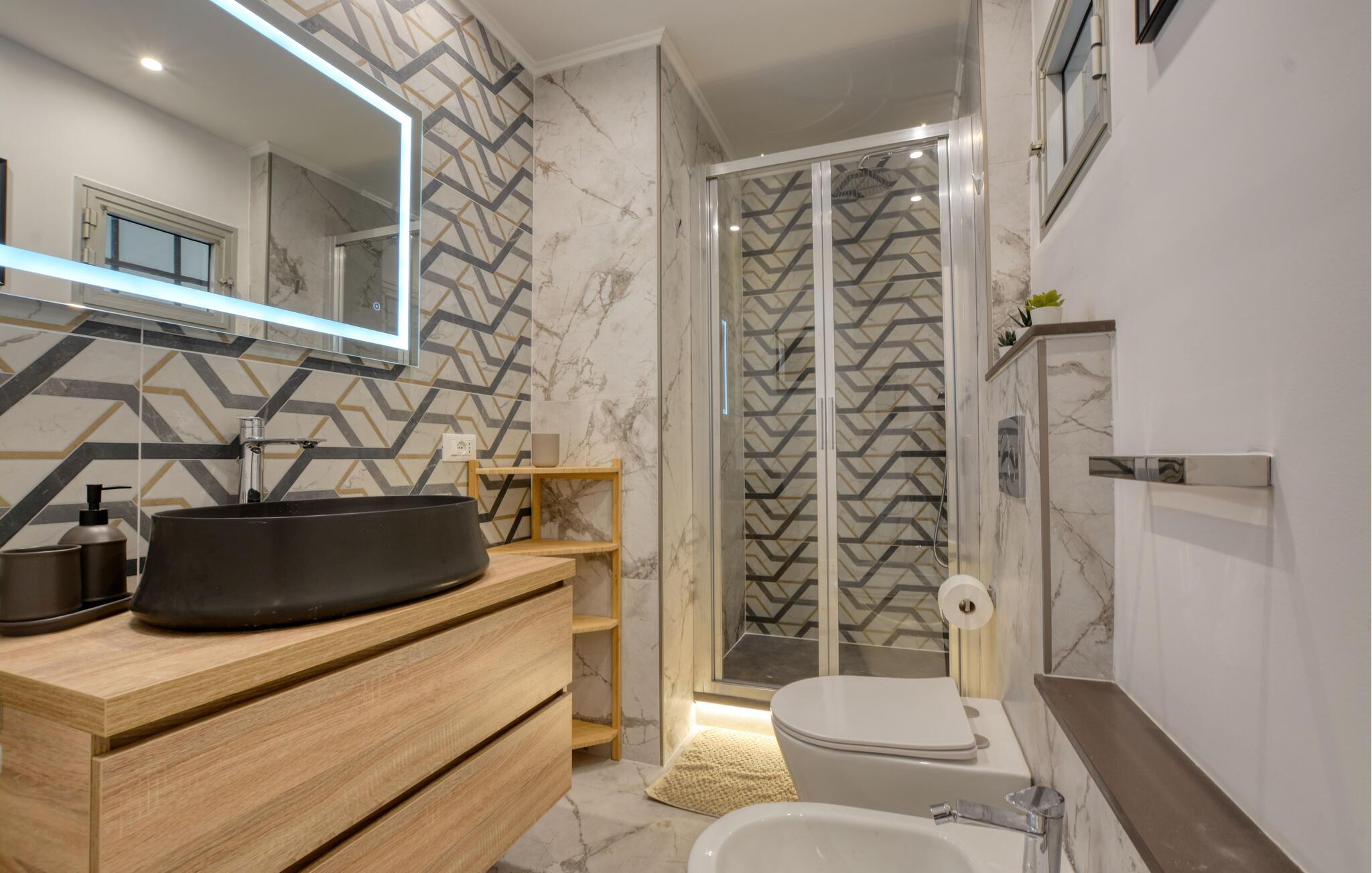 Denne lejlighed forener komfort og enkel elegance på harmonisk vis. Det diskrete trælook, afdæmpede farver og moderne møbler skaber en atmosfære, hvor I hurtigt vil føle jer hjemme. Uanset om I tilbringer en hyggelig filmaften eller tilbereder lækre måltider, mens I lytter til jeres yndlingsmusik – her bestemmer I selv dagens tempo.