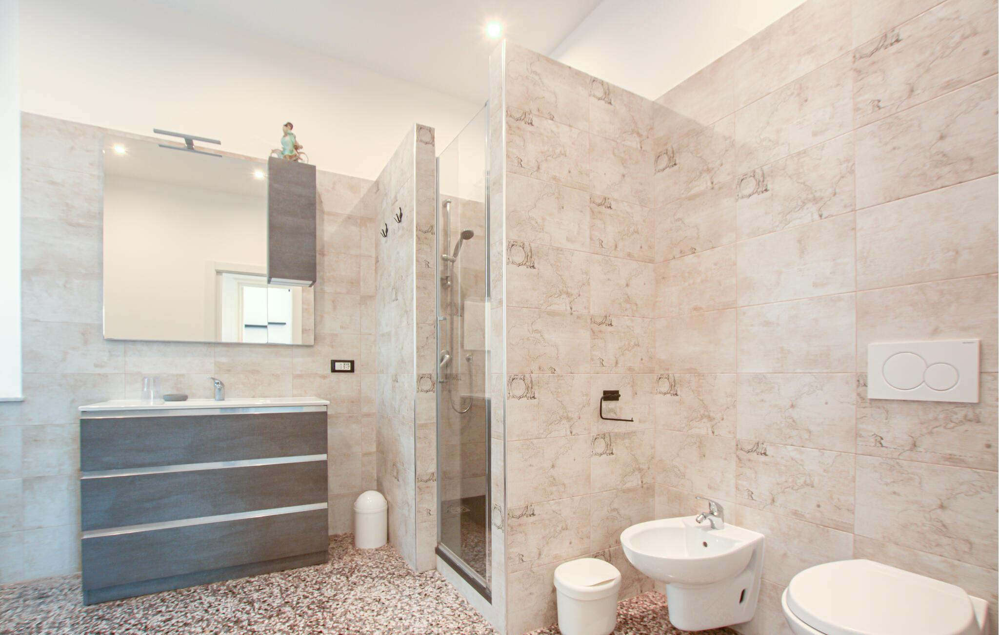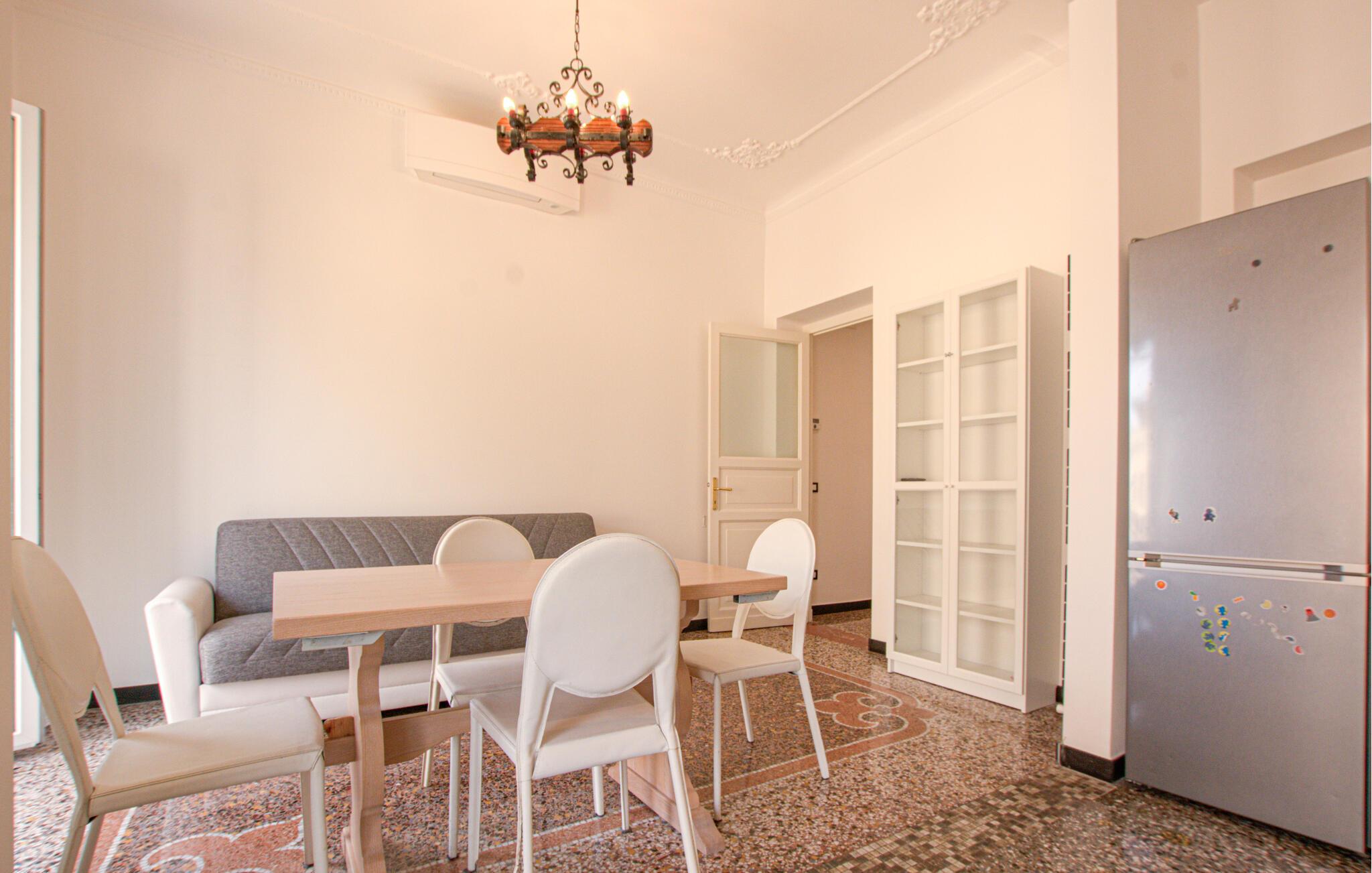 Højt til loftet, store vinduer og dekorative lysekroner giver værelserne et elegant præg. Slap af på sofaen i opholdsstuen eller brug spisebordet til fælles måltider. Det åbne køkken med sine mønstrede flisebelagte vægge giver jer mulighed for selv at tilberede italienske specialiteter. Åbn balkondøren og lad byens lys og lyde komme ind.