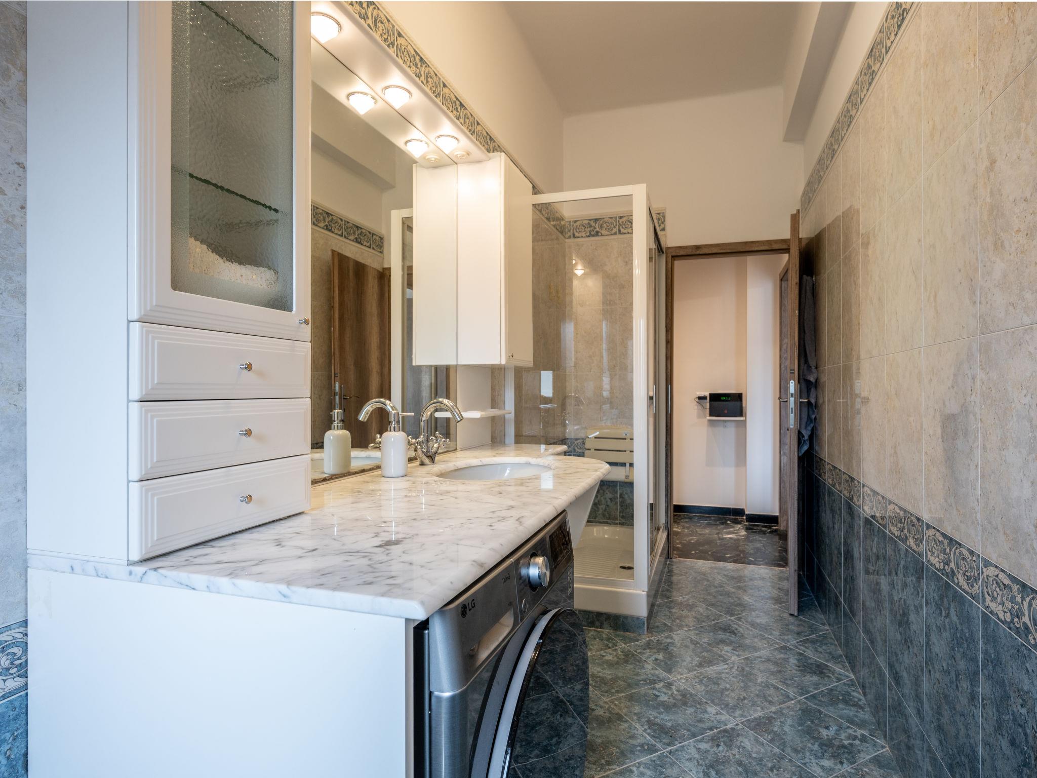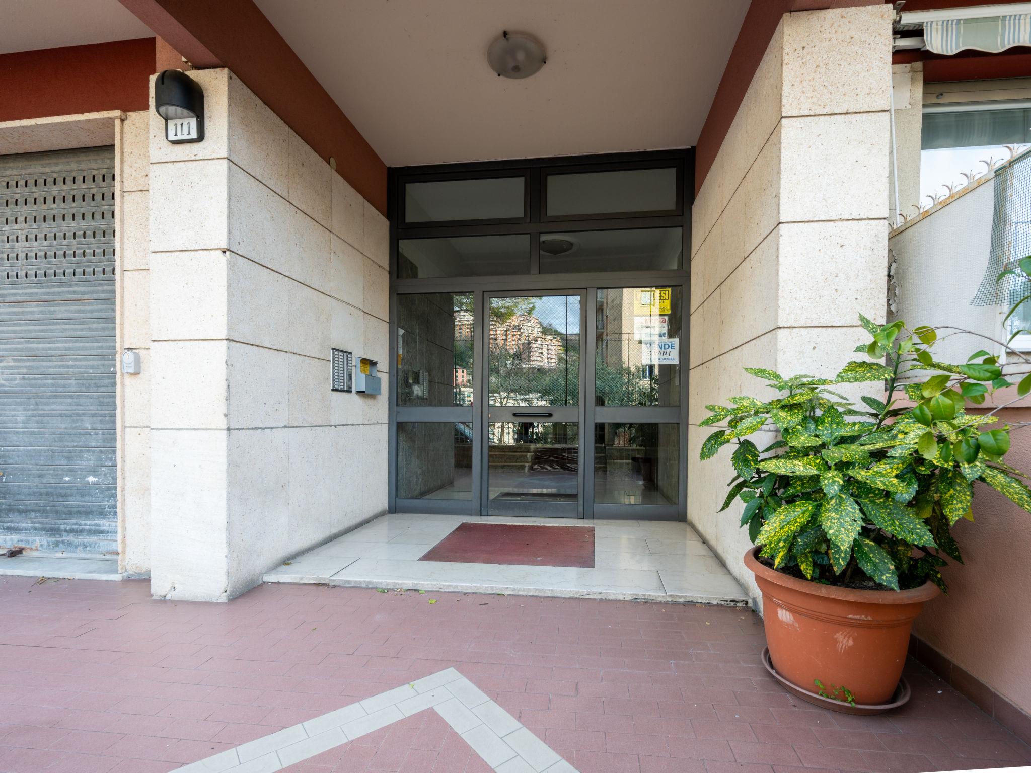 Apartment block. 4.5 km from the centre of Genova, in an elevated position, in a cul-de-sac. Public parking on the road. Supermarket 600 m, shopping centre 2 km, bus stop 500 m, railway station 3 km. Nearby attractions: Acquario di Genova 6.5 km.