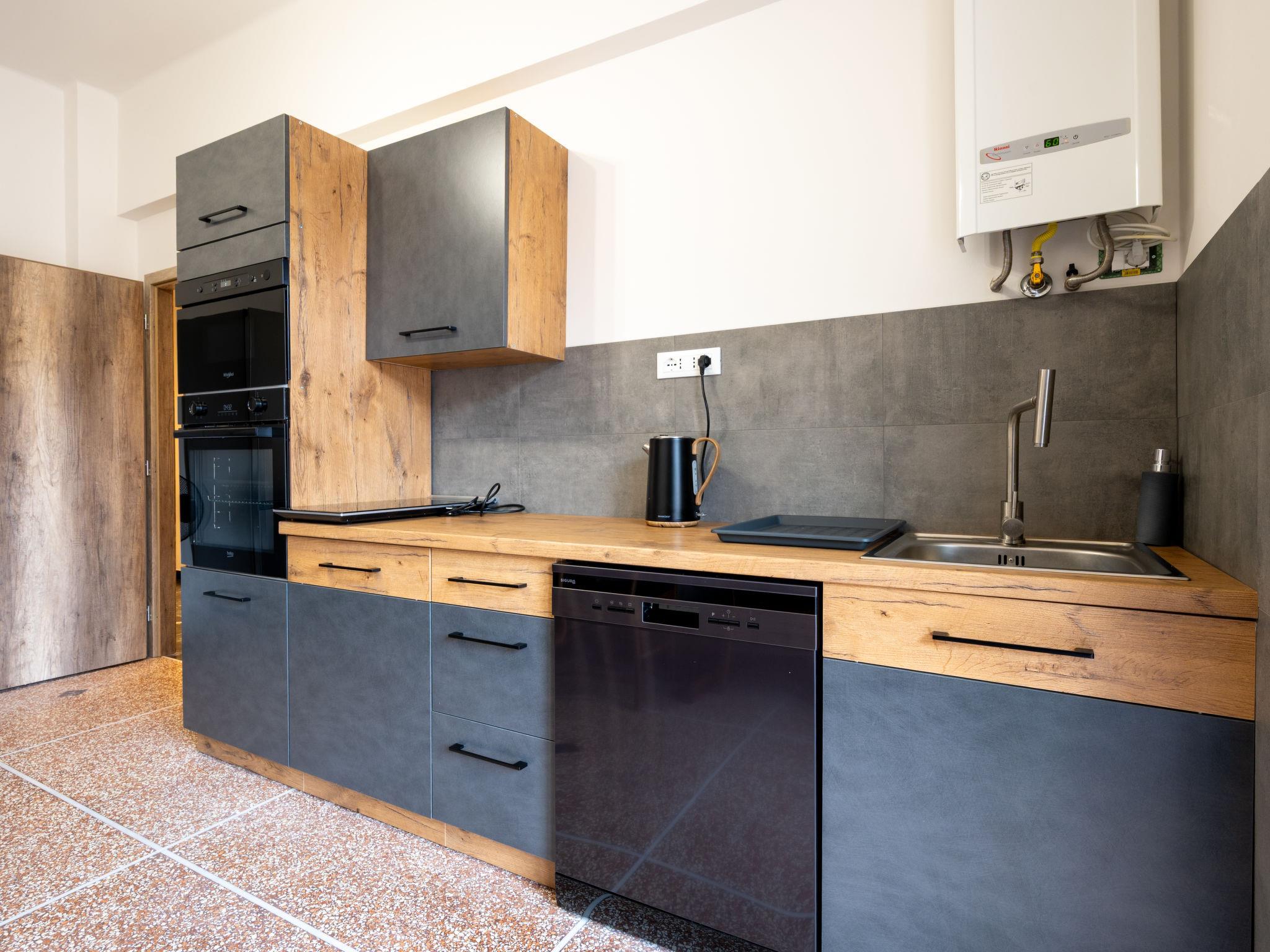 "Jana", 3-room apartment 85 m2 on 5th floor. Spacious, modern and cosy furnishings: 1 room with 1 double bed (160 cm, length 190 cm), TV and air conditioning. Exit to the balcony. 1 room with 1 double bed (160 cm, length 190 cm), air conditioning. Kitchen-/living room (2 hot plates, oven, dishwasher, kettle, microwave) with dining table. Exit to the balcony. Shower/bidet/WC. Heating, gas heating. Balcony. Balcony furniture. Panoramic view of the city. Facilities: washing machine, hair dryer. Internet (WiFi, free). Please note: non-smokers only. Smoke alarm, fire extinguisher. IT010025C25JGBYP7B