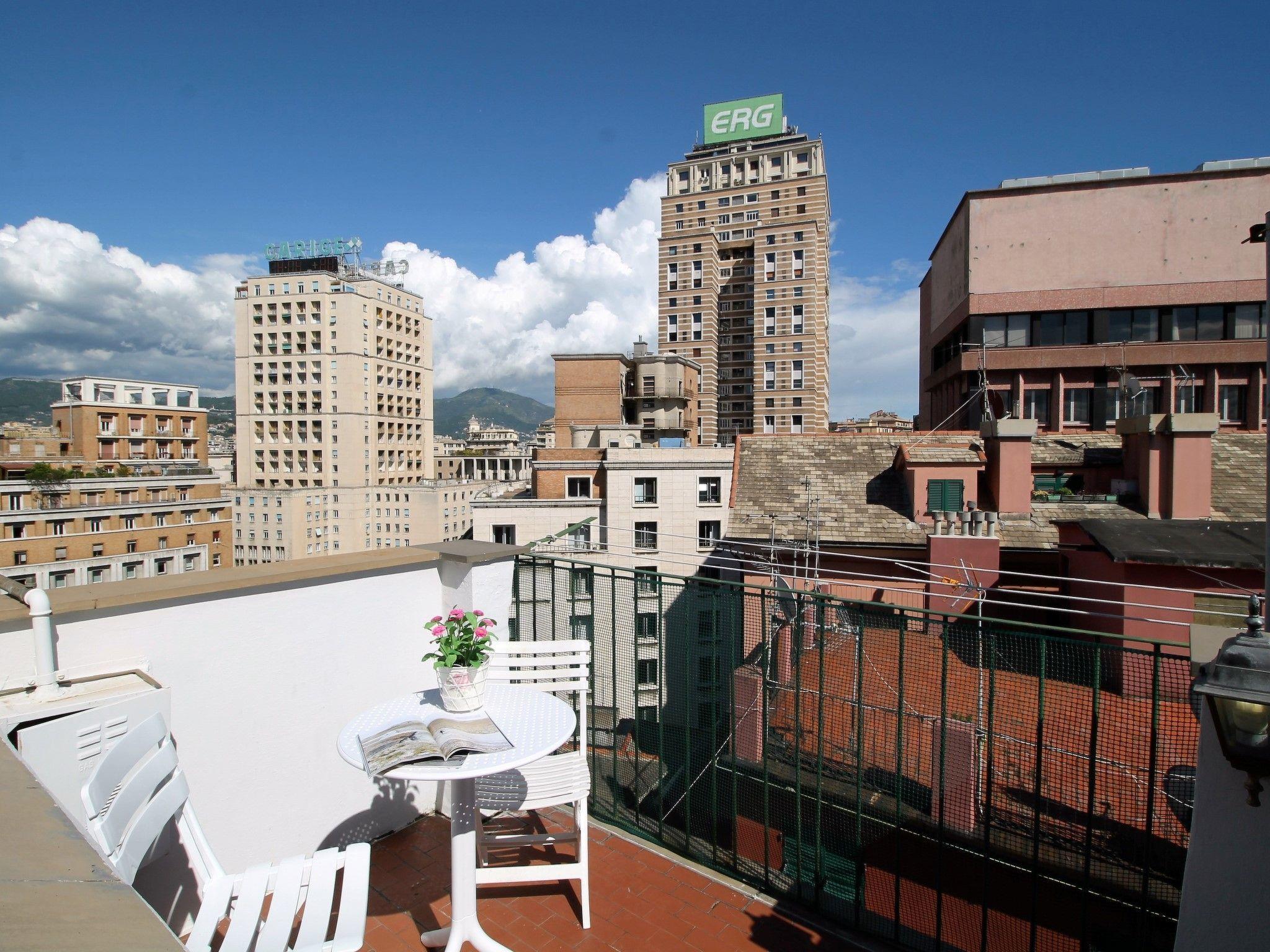 Outside, the small terrace proves to be a valuable addition to the flat, offering a quiet corner above the lively rooftops of Genua. Although barbecue use is not permitted, this outdoor area is ideal for relaxing after a day exploring the city. The terrace provides a small refuge where you can enjoy moments of serenity while admiring the surrounding cityscape.