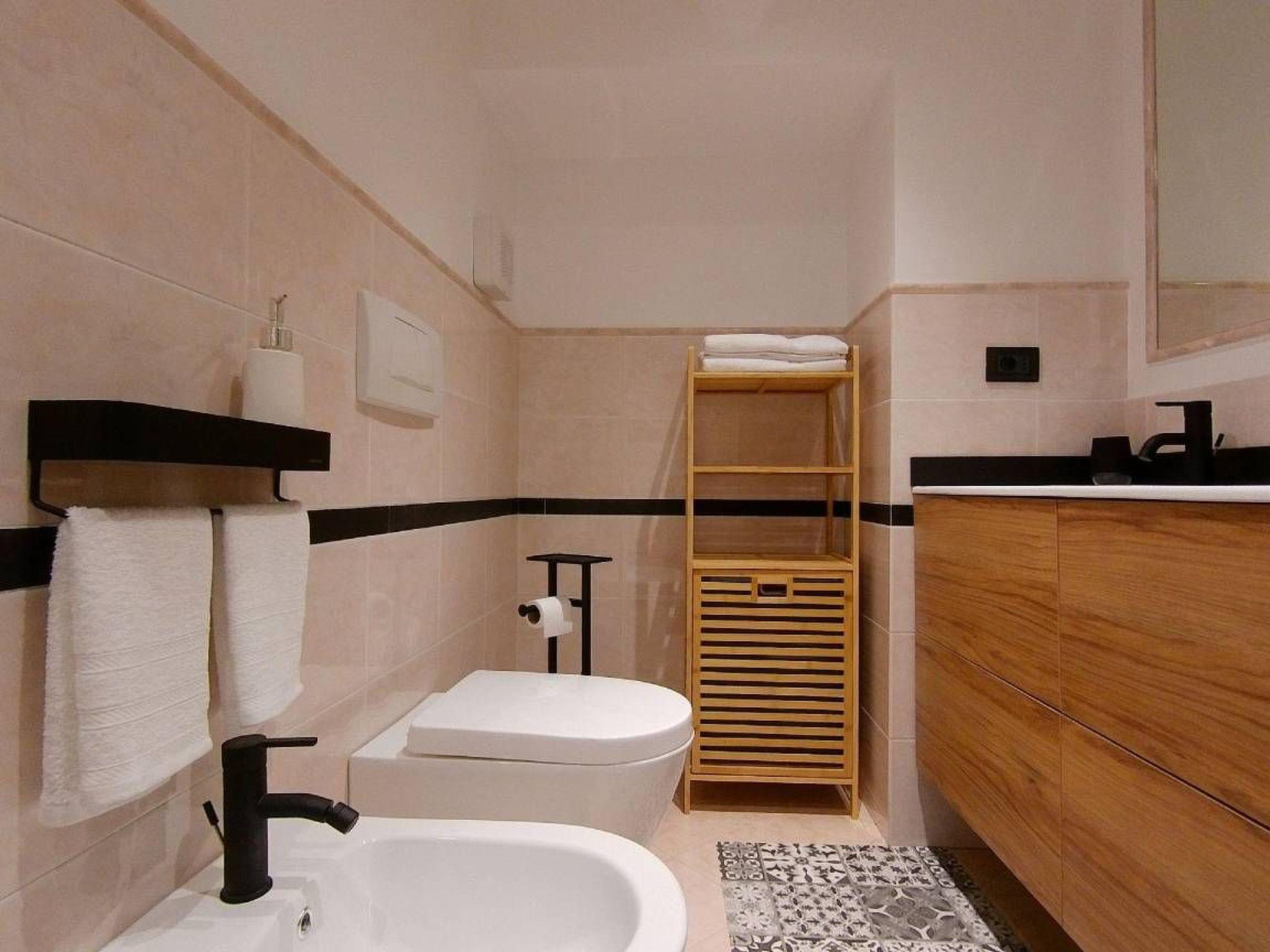 In the historical centre of Genoa, just a three-minute walk from the Porto Antico and close to the main services, is this recently renovated flat, located on the first floor of an elegant period building. It is a comfortable and well-kept solution, designed to offer a pleasant and functional stay. The entrance leads to a cosy living area, with an oil-coloured sofa bed that can easily become a second double bed, bringing the total capacity of the flat to four people. Wood-beamed ceilings and decorative details on the walls lend a warm, modern touch to the room. The long, well-lit kitchen is equipped with everything needed for practical cooking: large worktops, carefully chosen utensils and a wooden table suitable for both quick meals and dinners with friends. The bathroom has a modern design with natural finishes. It has a spacious shower, quality sanitary ware and mosaic floors that recall the traditional Genoese style. Each room is air-conditioned to ensure comfort in all seasons, and Wi-Fi allows you to stay connected at all times. Despite its central location, the flat is quiet and allows for a good night's rest. Whether you are travelling as a couple, with your family or visiting the city, this accommodation is a convenient and well-connected base for discovering Genoa.