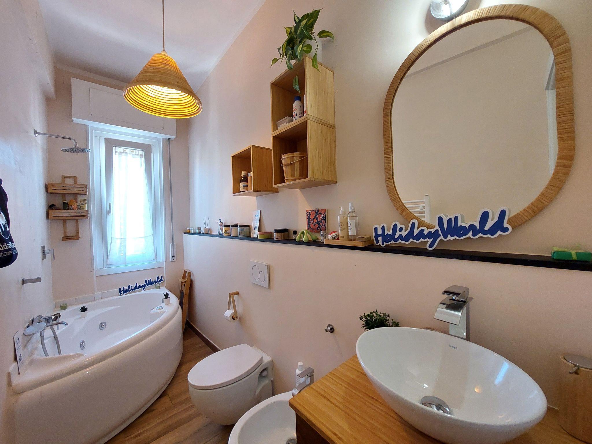 Casa Rossetti is a cosy one-bedroom apartment located in Genoa, in the quiet neighbourhood of Priaruggia, in the eastern part of the city and a few minutes' walk from the beach. The flat is located on the fourth floor of a building in a panoramic and sunny position. It consists of a large living room with an open kitchen, a double bedroom complete with wardrobe and desk, and a modern bathroom with a hydro-massage bathtub used as a shower and bidet. A lovely furnished balcony with a pleasant sea view completes the accommodation. The location is certainly a point in favour of the accommodation. The neighbourhood is residential, well-kept, with all the main services at hand and just a few metres from the train station, so that you can easily reach the centre. A bright, functional house with every comfort, perfect for a relaxing holiday by the sea or for exploring Genoa and the Ligurian Riviera.