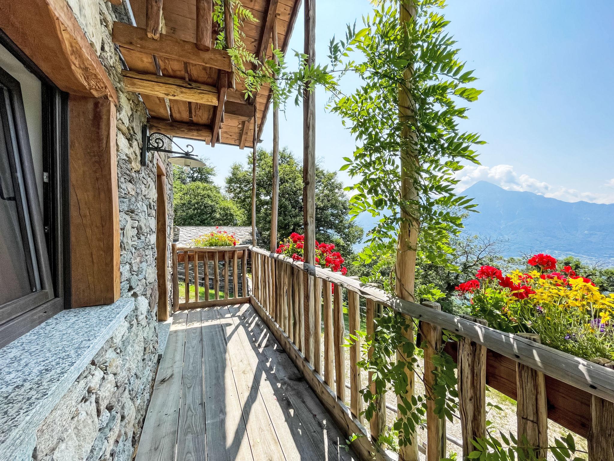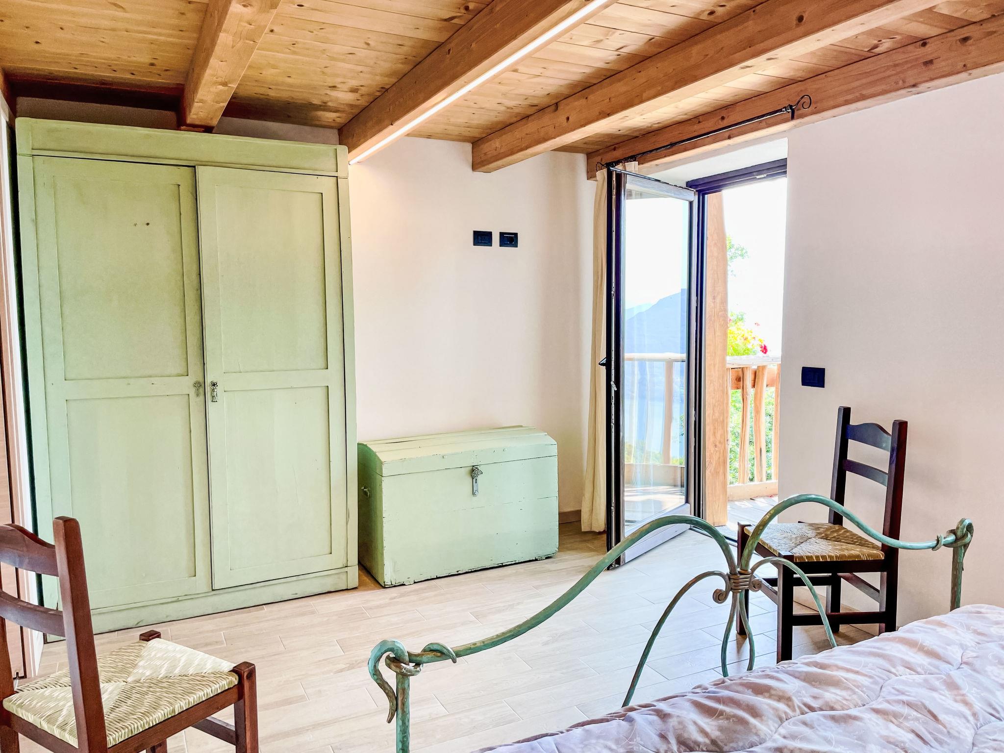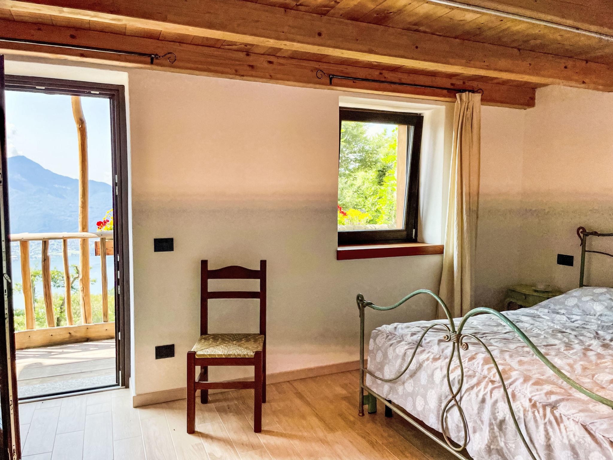 "Baita Mirtillo", 3-room house 85 m2 on 3 levels, south facing position. Comfortable and rustic furnishings: living/dining room with dining table, dining nook and TV. Exit to the garden. Open kitchen (oven, dishwasher, 4 induction hot plates, microwave, freezer, electric coffee machine). Shower/bidet/WC. Upper floor: 1 double bedroom. Exit to the balcony. Shower/bidet/WC. Electric heating. 2nd upper floor: open gallery with 1 double bed. Balcony, patio. Balcony furniture, deck chairs (2). Marvellous, of the lake and the mountains. Facilities: children's high chair, baby cot for up to 2 year olds, hair dryer. Internet (WiFi, free). Parking (1 car). Please note: non-smoking house. Maximum 1 pet/ dog allowed. IT013216C2TCE2J9S9