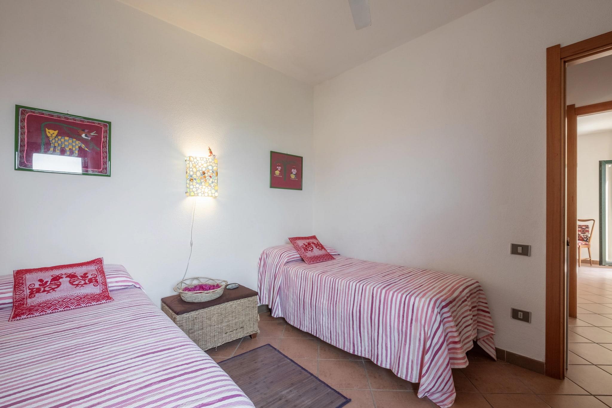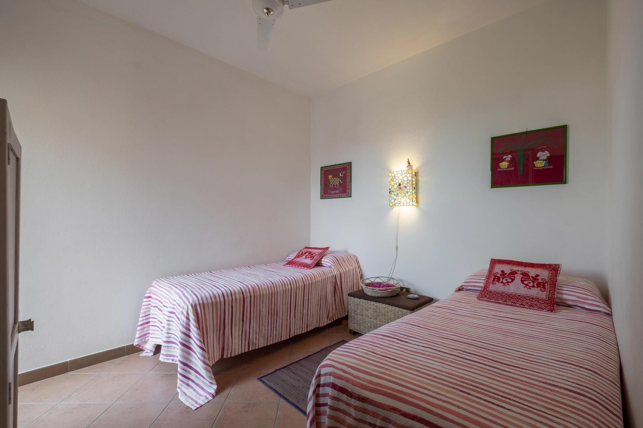 Feriehuset ligger smukt ved Geremeas, med udsigt over Kal"e Moru-stranden. Takket være de 3 soveværelser er der plads nok til en familie. Dit kæledyr er også velkommen. Huset ligger i en strategisk position, hvorfra du kan nyd en smuk udsigt, når du er hjemme. Du kan nemt nå de smukkeste strande på det sydlige Sardinien. Strandene i Villasimius og Costa Rey, kun 15 minutter i bil, kan ikke gå glip af. Sørg for at besøge Cagliari, der er rig på monumenter, butikker og endnu flere strande. Der er mange andre interessante turistattraktioner, der er værd at besøge. Gæster kan medbringe deres hund, men bemærk, at din hund ikke kan få adgang til soveværelserne. Gæsterne skal respektere ejendommen og vil venligst blive bedt om at holde øje med deres hund. I det veludstyrede køkken kan du tilberede hjemmelavede måltider og nyde dem med dine venner i stuen/spisestuen. I den private delvist indhegnede have kan du lukke dagen af med en drink efter eget valg. I tilfælde af sen ind- og udtjekning om natten fra kl. 21.30 til kl. 07.00 vil vi opkræve 35 euro ekstra for det.