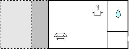 Opholdsstue/køkken - 2 Sovepladser. (Sofa, madras eller lignende).