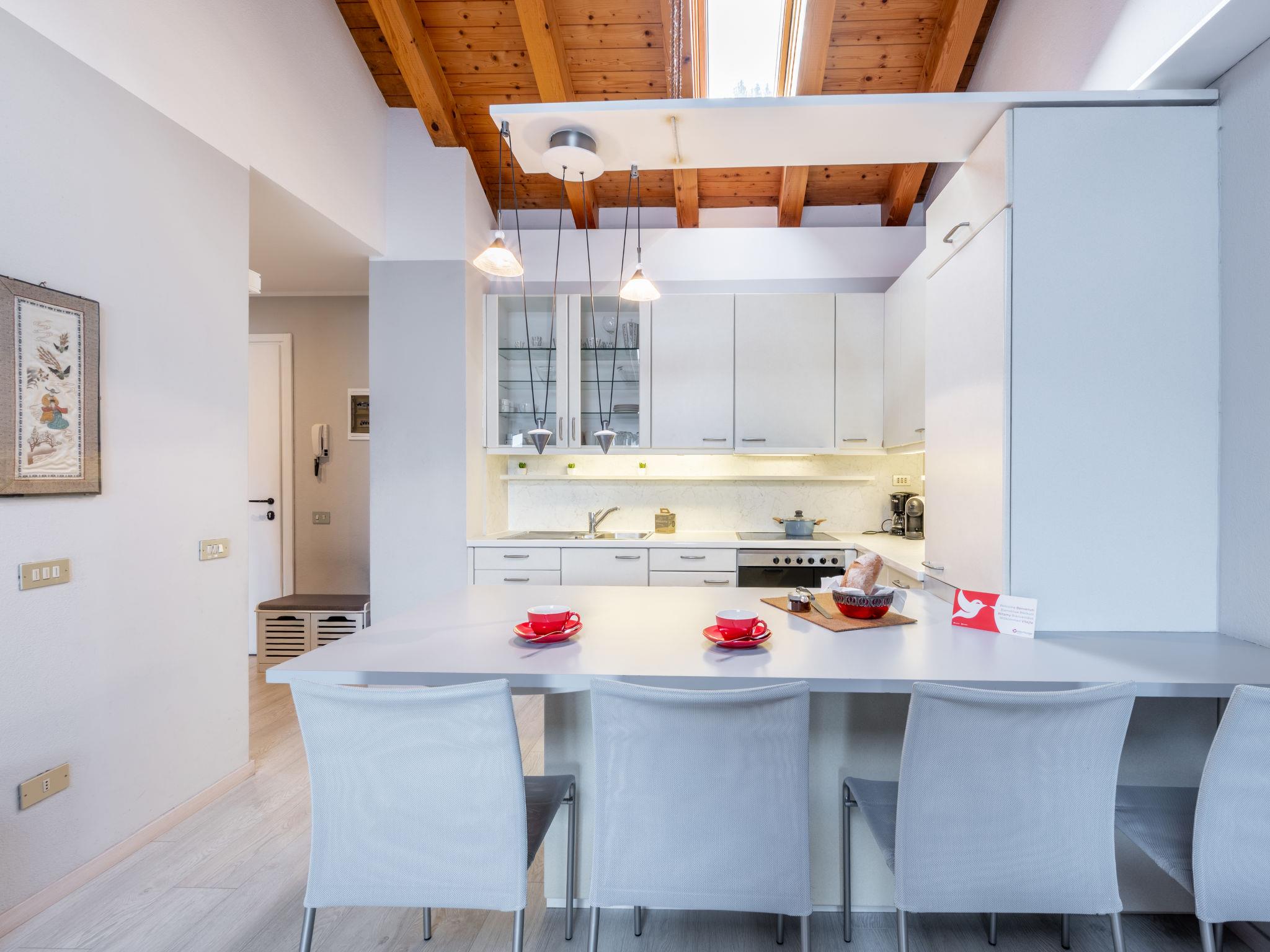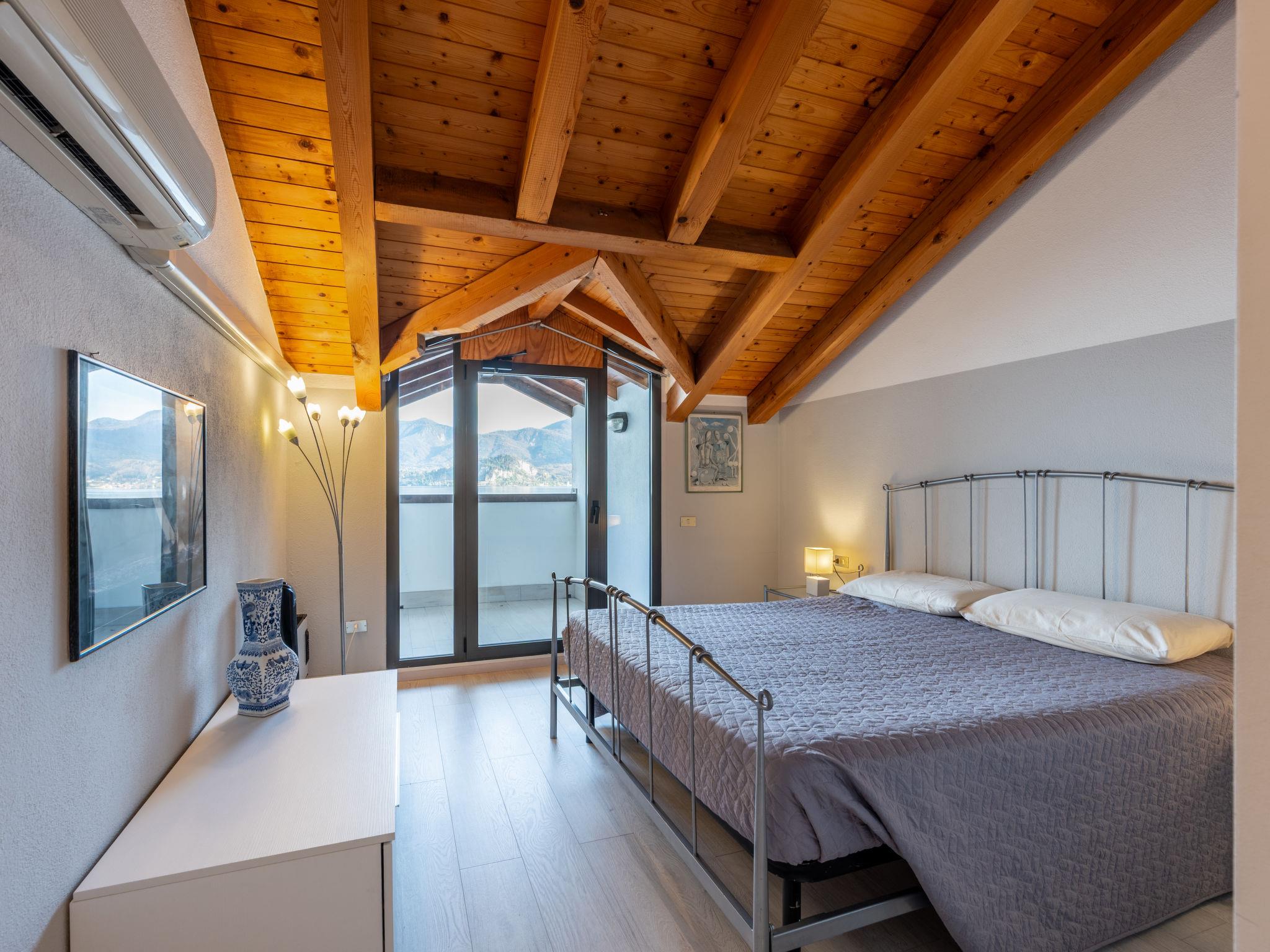 "Blu Lake", 2-room apartment 55 m2 on 3rd floor. With sloping ceilings, comfortable and modern furnishings: living/dining room with 1 double sofabed and TV. Exit to the balcony. 1 double bedroom. Exit to the balcony. Kitchenette (oven, 4 induction hot plates, toaster, electric coffee machine). Shower/bidet/WC. Gas heating, air-conditioning. Heating available only from 01.10. to 30.04. 2 balconies. Balcony furniture. Very beautiful view of the lake. Facilities: hair dryer. Internet (WiFi, free). Parking space n 63 (roofed) at 30 m. Please note: non-smoking house. Smoke alarm, fire extinguisher. IT103033C2ZL39YPPE