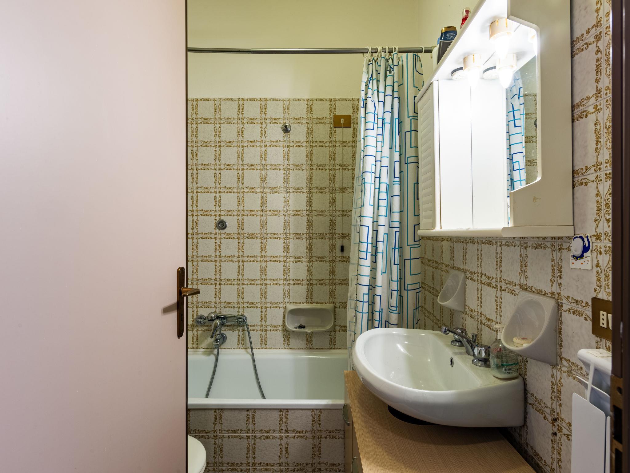 "B116", 1-room studio 40 m2 on 1st floor. Practical furnishings: living/dining room with panoramic window with 1 sofabed, 1 double bed and satellite TV. Exit to the patio. Small, open kitchen (4 hot plates, oven, microwave, freezer). Bath/bidet/WC. Gas heating. Heating available only from 15.10. to 15.04. Patio roofed, garden 50 m2. Terrace furniture. Facilities: washing machine, iron, hair dryer. Internet (WiFi, free). Parking space n B116 (roofed). Two ticket for the pool are available , the third person pay at the entrance 7€. IT103033C2EBCGNQYH