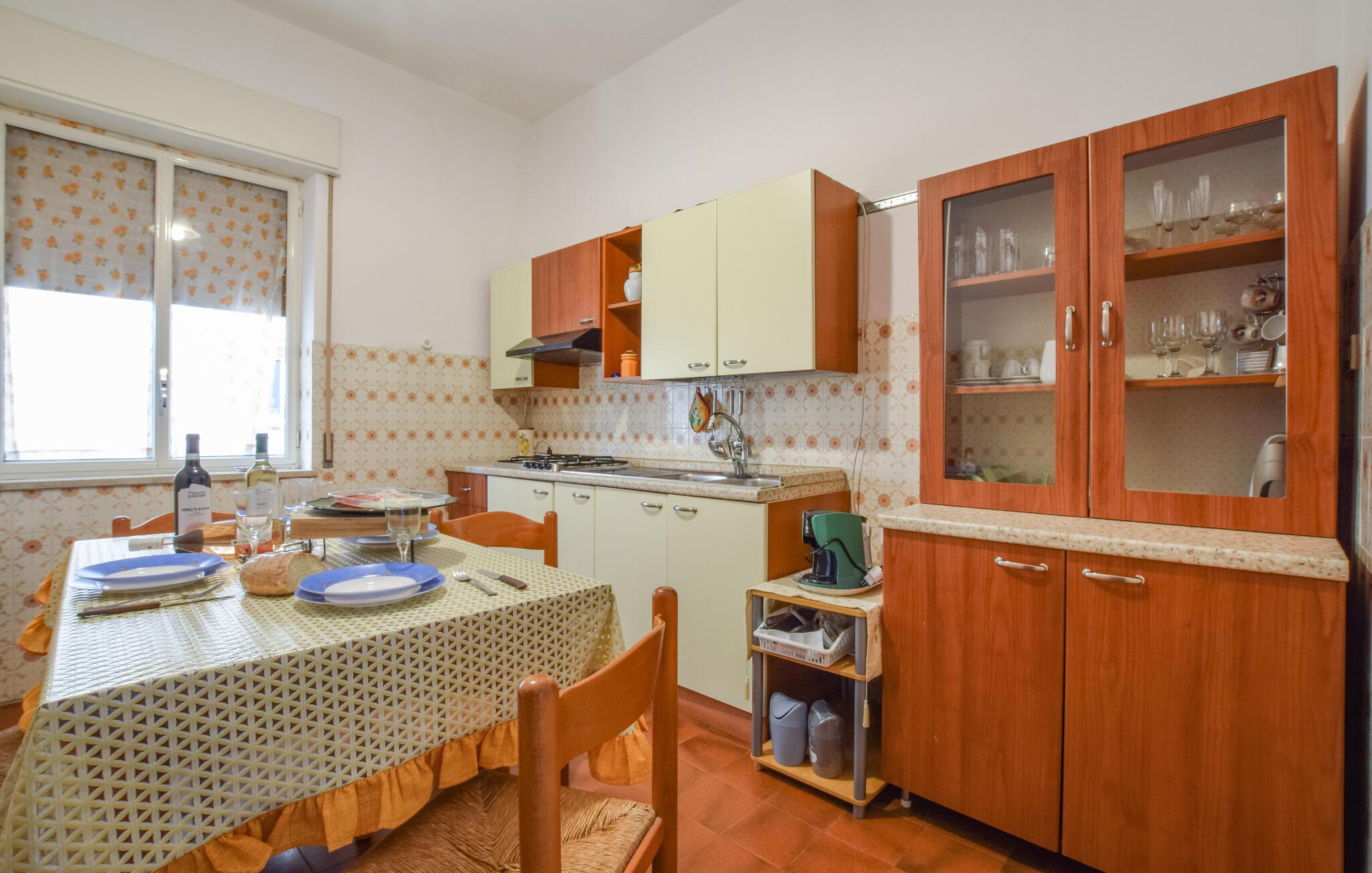 Her finder I alt, hvad I skal bruge til en afslappende ferie med jeres familie. Den lyse og venlige indretning skaber en behagelig stemning, mens det klassiske, veludstyrede køkken giver jer mulighed for selv at tilberede regionale delikatesser. Nyd morgenkaffen på altanen og lad blikket vandre ud over omgivelserne - den perfekte start på dagen fuld af nye oplevelser.