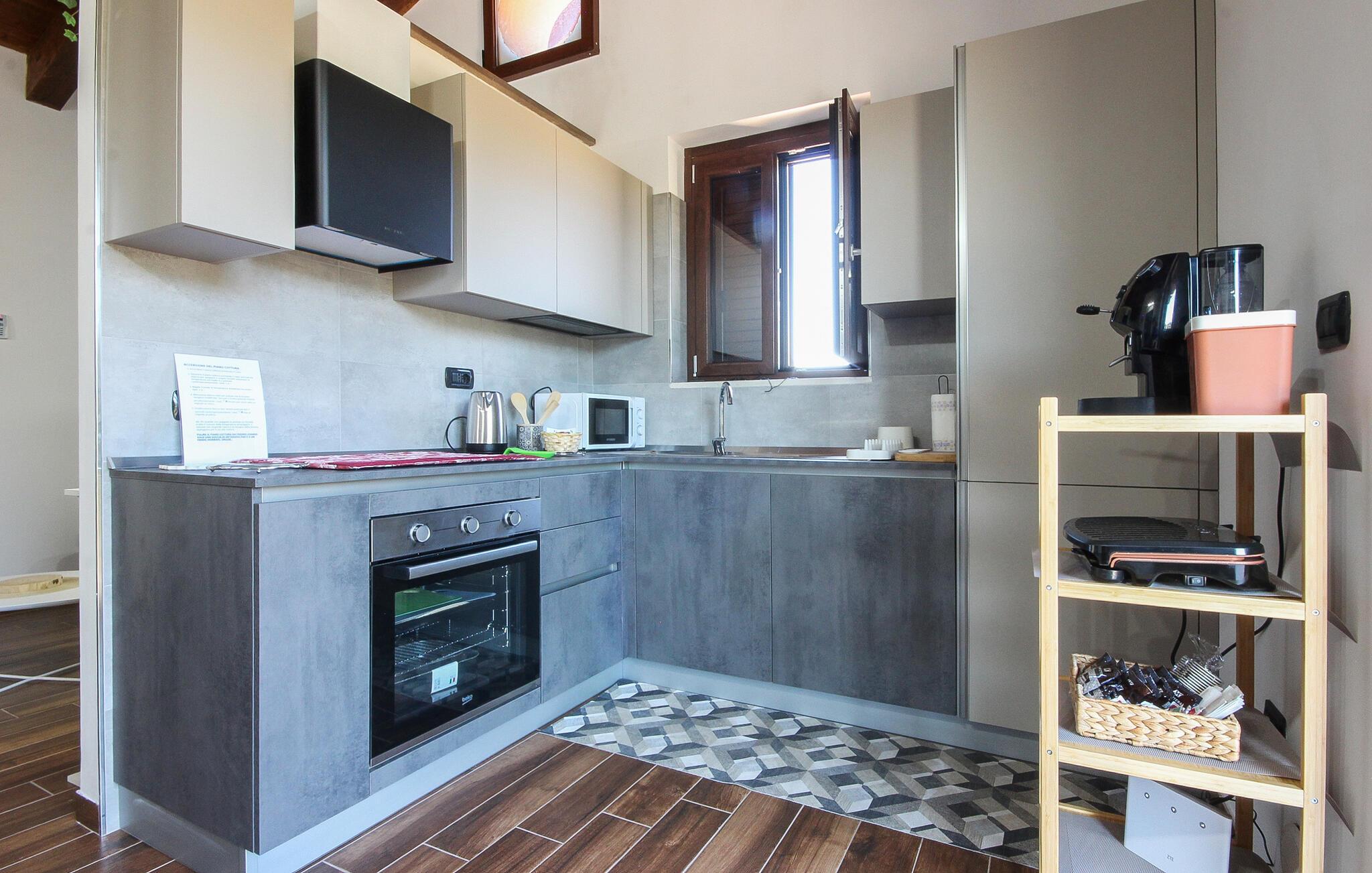 Nyd jeres ferie i dette hyggelige feriehus. Dette feriehus kombinerer modernitet og komfort og tilbyder et afslappende tilflugtssted til jeres feriedage. Rustikke bjælkelofter og diskrete farver kombineret med muntre farvestrejf skaber en behagelig atmosfære til jeres tv-aftener eller samtaler for to. Tilbered lækre måltider i det moderne køkken og forkæl jer selv med et glas vin. Nyd roen i det landlige Syditalien og slap af blandt olivenlunde og bølgende bakker. Tag på udflugter til den nærliggende Cilento Nationalpark eller udforsk Amalfikysten, der ligger kun en kort køretur væk. Nyd regionale specialiteter såsom frisk pasta, bøffelmozzarella eller den berømte Giffoni hasselnøddelikør.