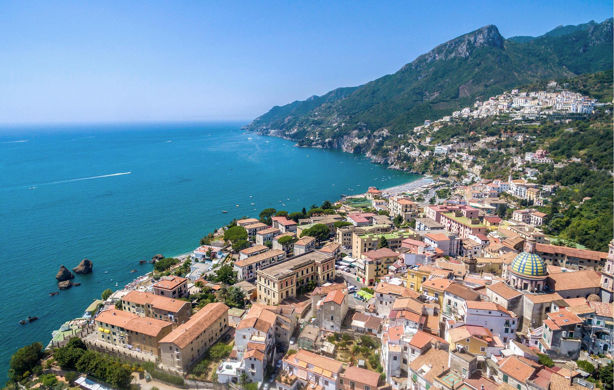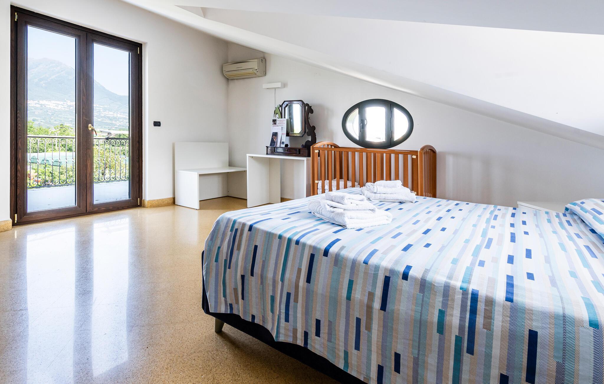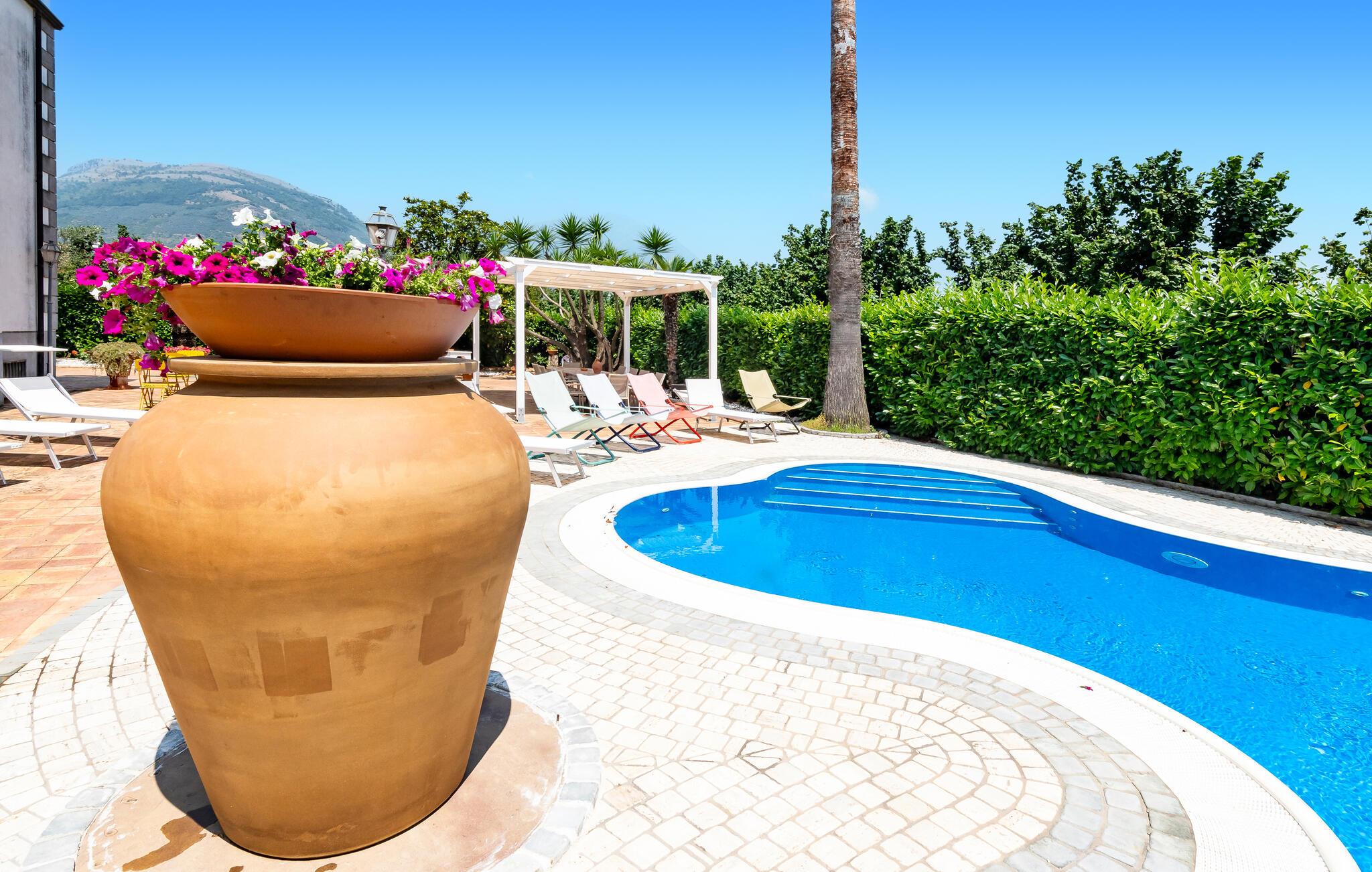 Velkommen til dette flotte og rummelige hus, der ligger kun få kilometer fra Salerno. Her får I som udvidet familie eller flere vennefamilier en herlig base med hyggelige soveværelser, hvor I kan nyde jeres skønhedssøvn, inden I mødes til en lækker morgenmad i køkkenet.
