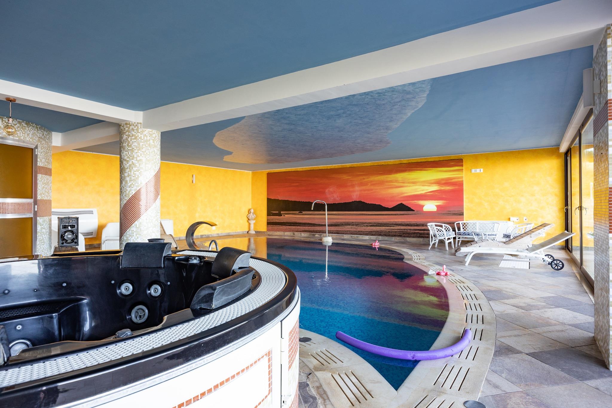 Stueetage: (Stue(Fjernsyn, pejs), køkken-alrum(kogeplade, elkedel, cooker, komfur, emhætte, espressomaskine, ovn, mikrobølgeovn, opvaskemaskine , køle-fryseskab), soveværelse(dobbeltseng, klimaanlæg), soveværelse(køjeseng, halvandenmandsseng, klimaanlæg), badeværelse(Bubble bath, håndvask, toilet, bidet), badeværelse(bruser, håndvask, toilet, bidet), bryggers, varme) På 1. etage: (sofastue, soveværelse(dobbeltseng, klimaanlæg), badeværelse(bruser, håndvask, toilet, bidet), varme) Kælderetage: (køkken-alrum(kogeplade, cooker, komfur, emhætte, ovn, køle-fryseskab), stue / spisestue(dobbeltsovesofa, Fjernsyn, varme), soveværelse(dobbeltseng, varme), soveværelse(dobbeltseng, varme), badeværelse(bruser, håndvask, toilet, bidet), varme) loungerum(bordfodbold), Bubble bath(privat, indendørs, varmelegeme, 6 personer), terrasse, grill, swimmingpool(privat, opvarmes, indendørs), Pladegrill