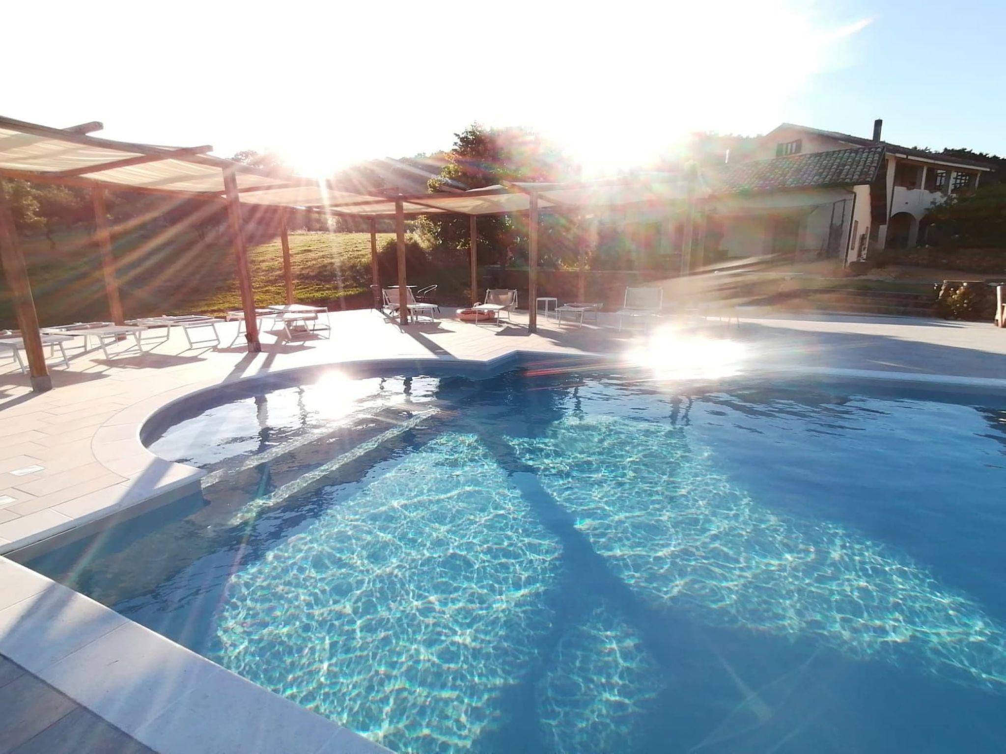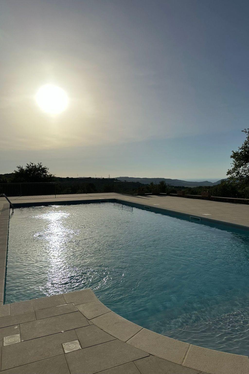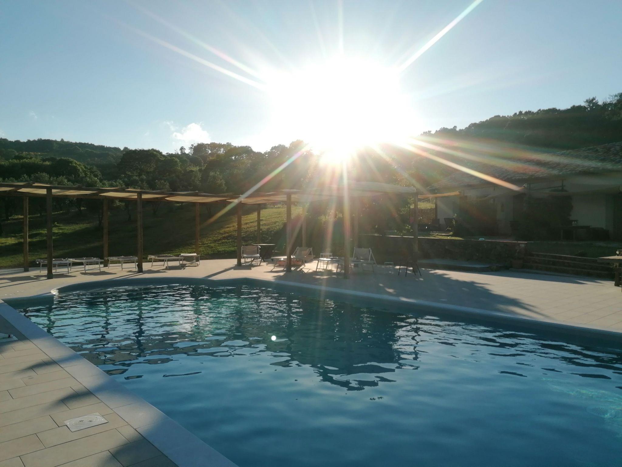 Ground floor: Separate living room with 2 additional beds on request, kitchen (4 gas fires, fridge) with dining table, shower/WC. Upper floor: Two bedrooms, each with a double or two single beds. Barbecue area, swimming pool 6x12m, outdoor shower, pergola with sun loungers and lots of nature all around for communal use.