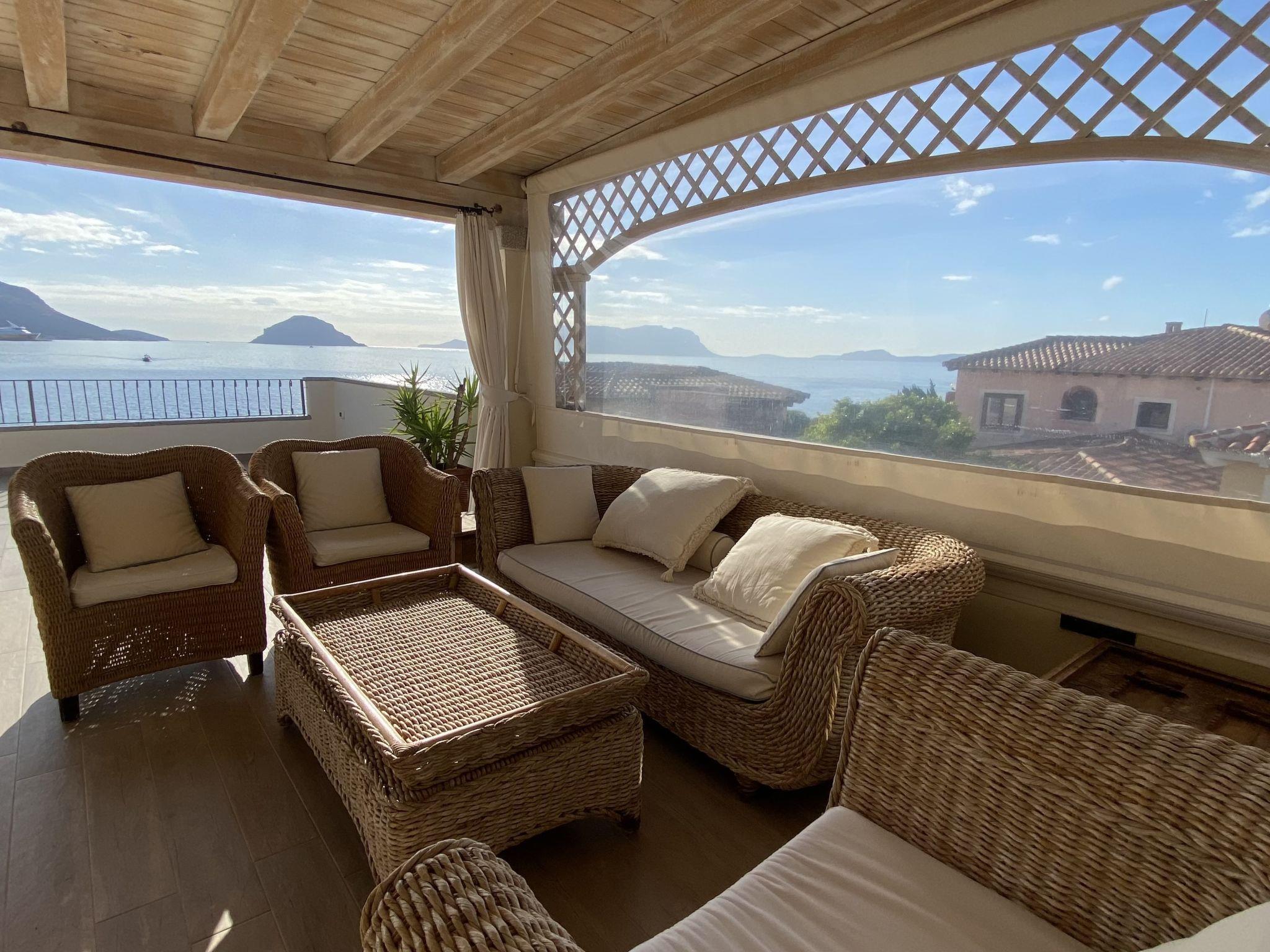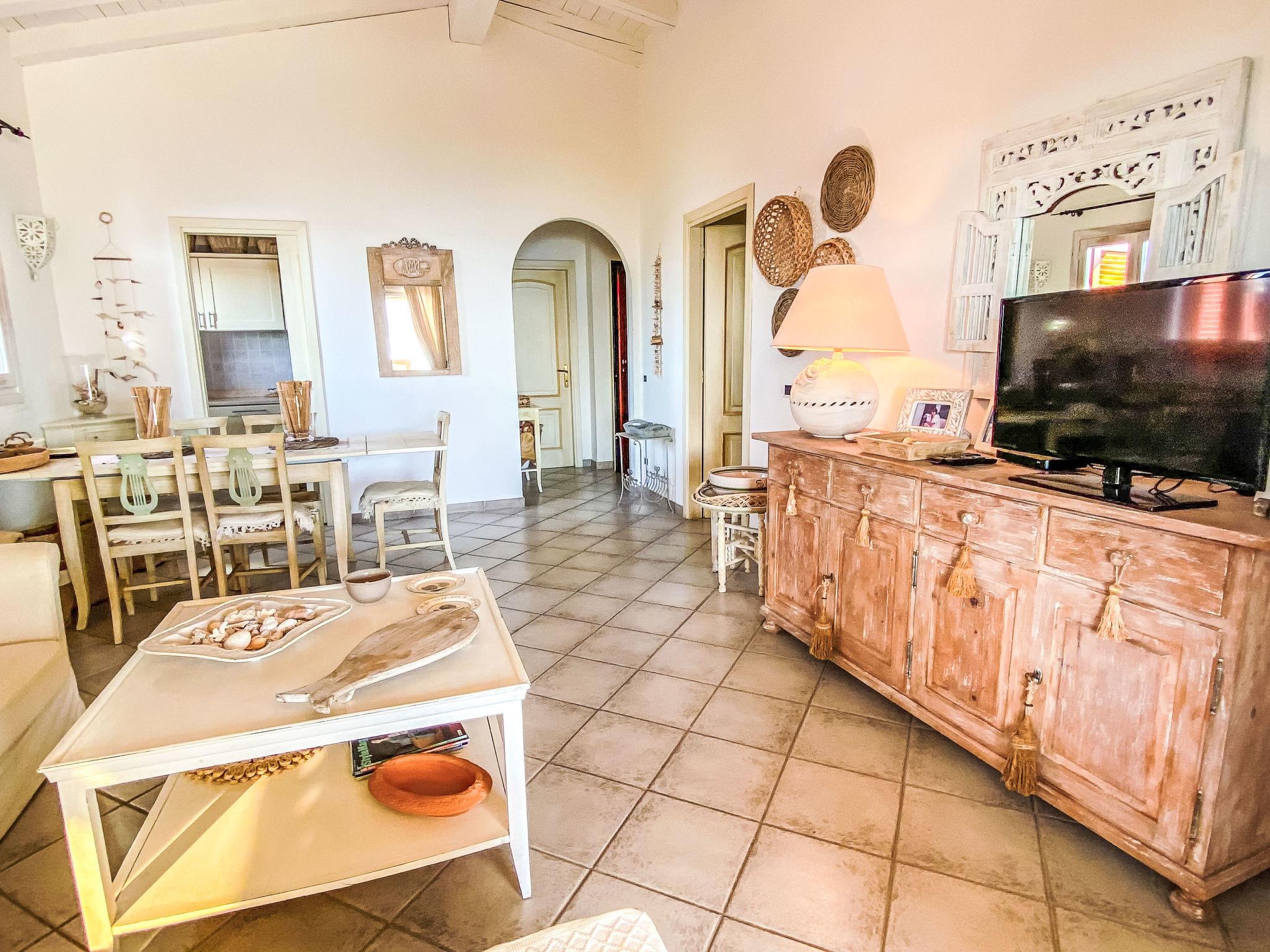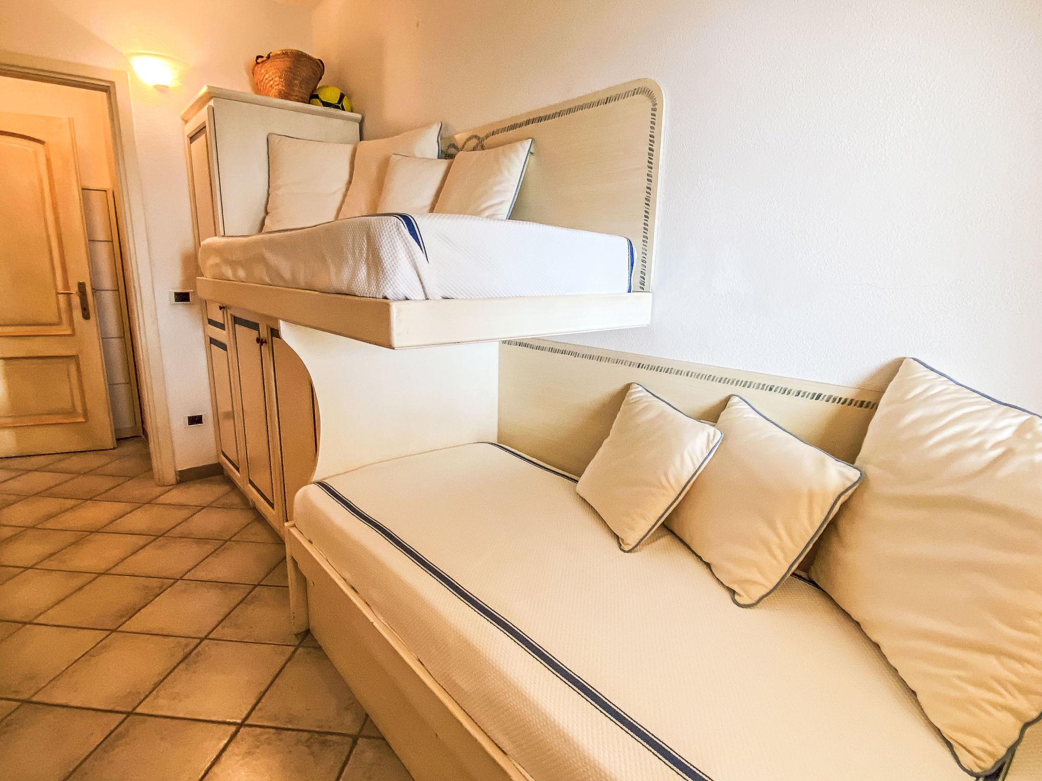 "Castagno", 3-room apartment 85 m2 on 1st floor. Bright, beautiful and tasteful furnishings: living/dining room with 1 sofabed, dining table, satellite TV and air conditioning. Exit to the terrace with 1 double bed. 1 room with 1 x 2 bunk beds. Open kitchen (4 hot plates, oven, dishwasher, 4 gas rings). 2 showers/WC. Air-conditioning, forced-air heating (extra). Heating not available in all rooms. Large terrace 120 m2. Terrace furniture. Marvellous view of the sea and Tavolara. Facilities: washing machine, iron, children's high chair, baby cot (extra), hair dryer. Parking (roofed). IUN:E2141