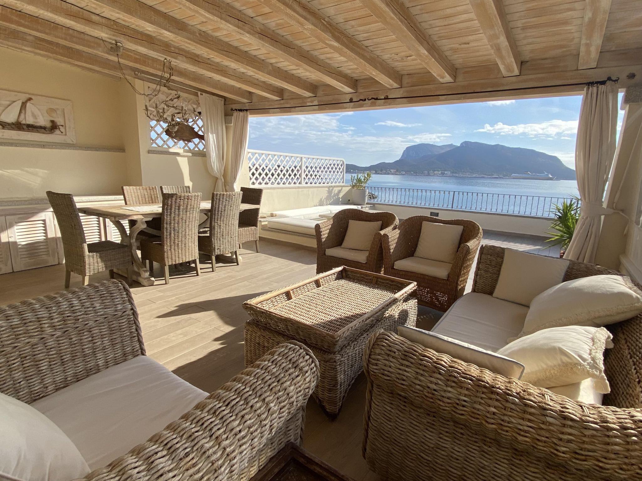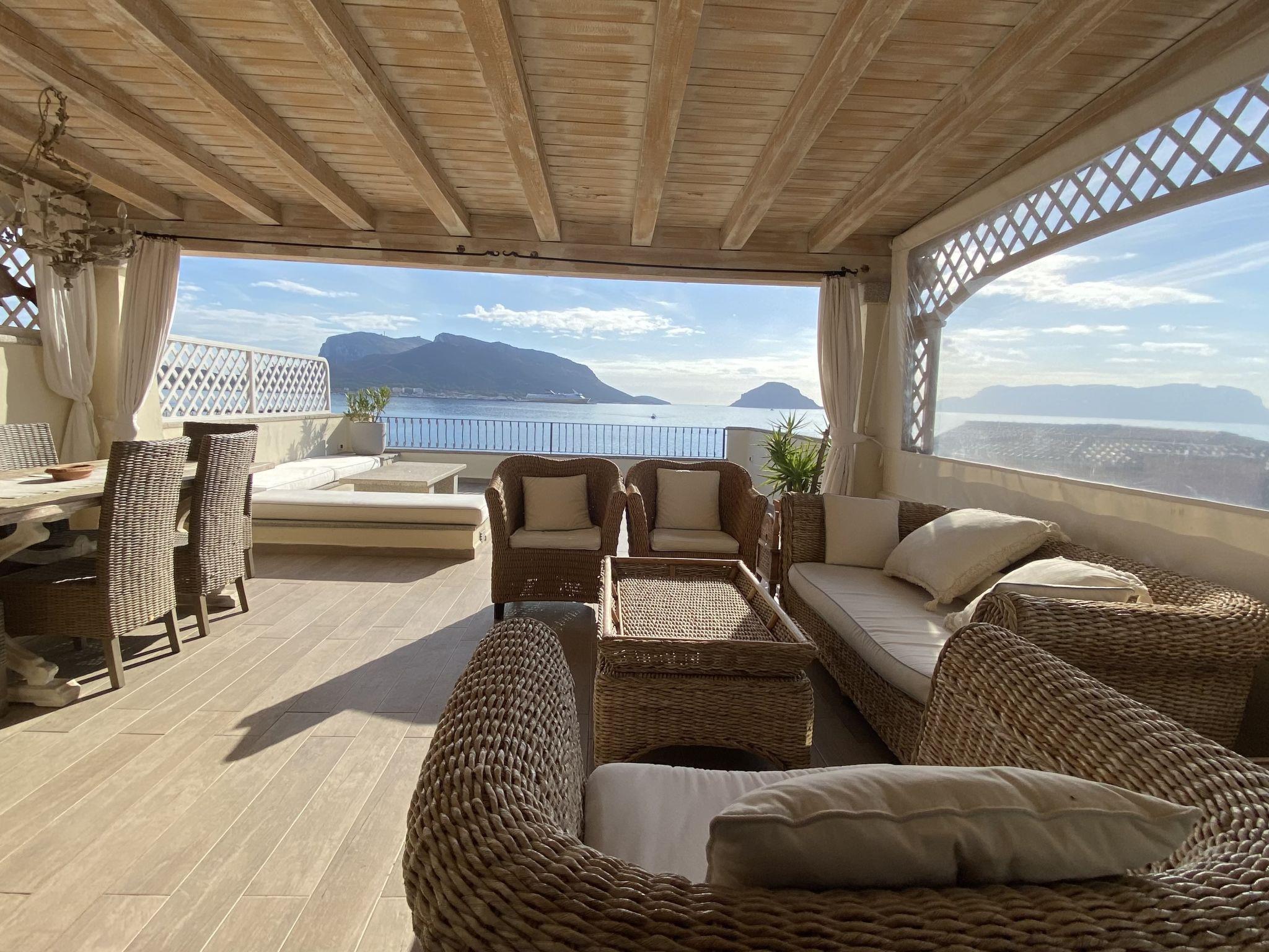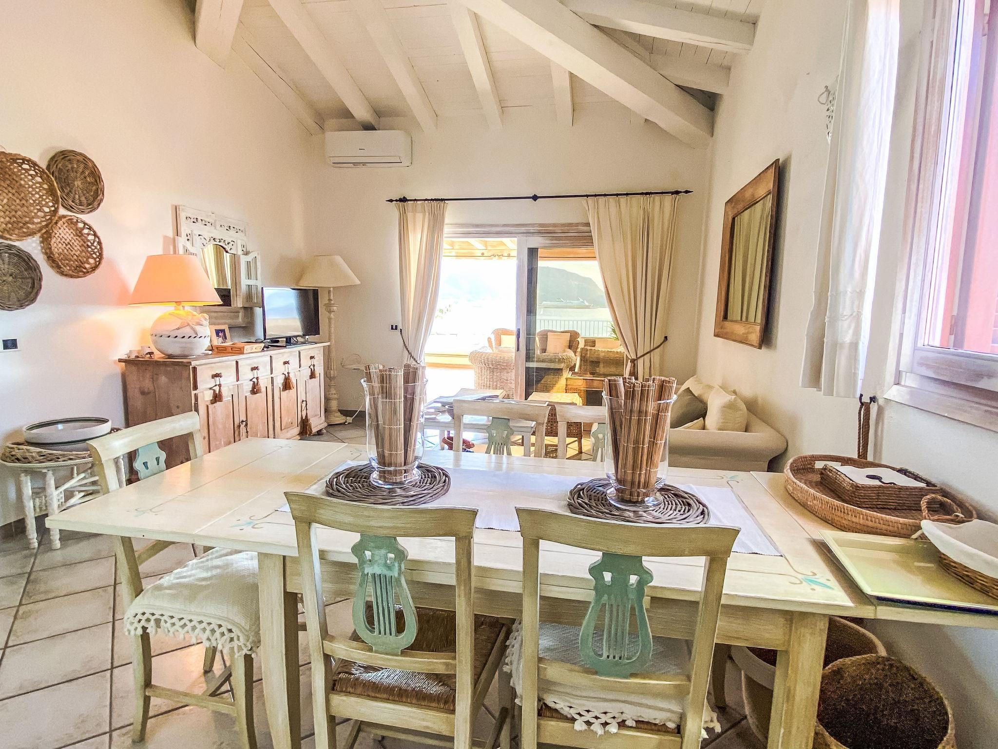 "Castagno", 3-room apartment 85 m2 on 1st floor. Bright, beautiful and tasteful furnishings: living/dining room with 1 sofabed, dining table, satellite TV and air conditioning. Exit to the terrace with 1 double bed. 1 room with 1 x 2 bunk beds. Open kitchen (4 hot plates, oven, dishwasher, 4 gas rings). 2 showers/WC. Air-conditioning, forced-air heating (extra). Heating not available in all rooms. Large terrace 120 m2. Terrace furniture. Marvellous view of the sea and Tavolara. Facilities: washing machine, iron, children's high chair, baby cot (extra), hair dryer. Parking (roofed). IUN:E2141
