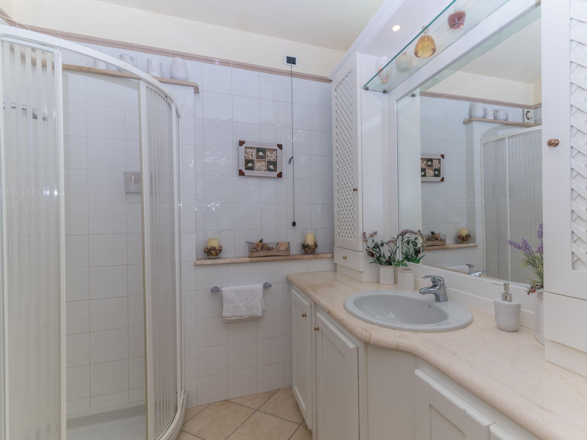 "Acacia", 3-room apartment 80 m2, on the ground floor. Bright, tasteful and cosy furnishings: large living/dining room with 1 bed and satellite TV. Exit to the terrace. 1 double bedroom. 1 room with 2 beds. Kitchen (oven, dishwasher, 4 gas rings, microwave, freezer). 2 showers/bidet/WC. Electric heating, air-conditioning (extra). Large terrace partly roofed, small garden, lawn. Terrace furniture. View of the sea and the countryside. Facilities: washing machine, iron, children's high chair, baby cot (extra), hair dryer. Maximum 1 pet/ dog allowed. IT090083B4000E2141