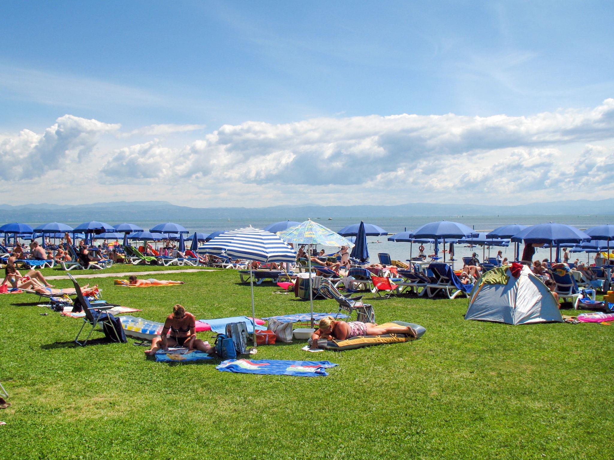 Grado: Very large, child friendly holiday village "Camping Europa 4*". 5 km from the centre of Grado, 50 km from the centre of Trieste, 130 km from the centre of Venezia, 20 m from the sea, direct access to the beach. For shared use: property 22 ha (fenced) with plants and trees, swimming pool (1'500 m2, seasonal availability: 23.Apr. - 27.Sep.). WC in the pool area, children's pool, slide, outdoor shower, tennis (1 x hard court), floodlit (extra), table tennis, beach volleyball, children's playground. In the complex: restaurant, bar, bistro, internet access, WiFi, shopping facilities, kiosk, washing machine, tumble dryer (for shared use, extra). Bus stop 500 m, railway station "Airport Station Trieste" 20 km. Nearby attractions: Castello di Duino 25 km, Riserva Naturale della Foce dell'Isonzo 14 km, Aquileia 16 km, Castello Miramare 40 km, Redipuglia 20 km, Collio 35 km. Please note: entertainment. Suitable for families. The electronic watch (included in the rental price) is the resort's exclusive means of payment and can be loaded online or in cash/by credit card during checkout hours. Beach service included (1 umbrella + 2 sunbeds per unit, for the whole season). Animation (whole season).