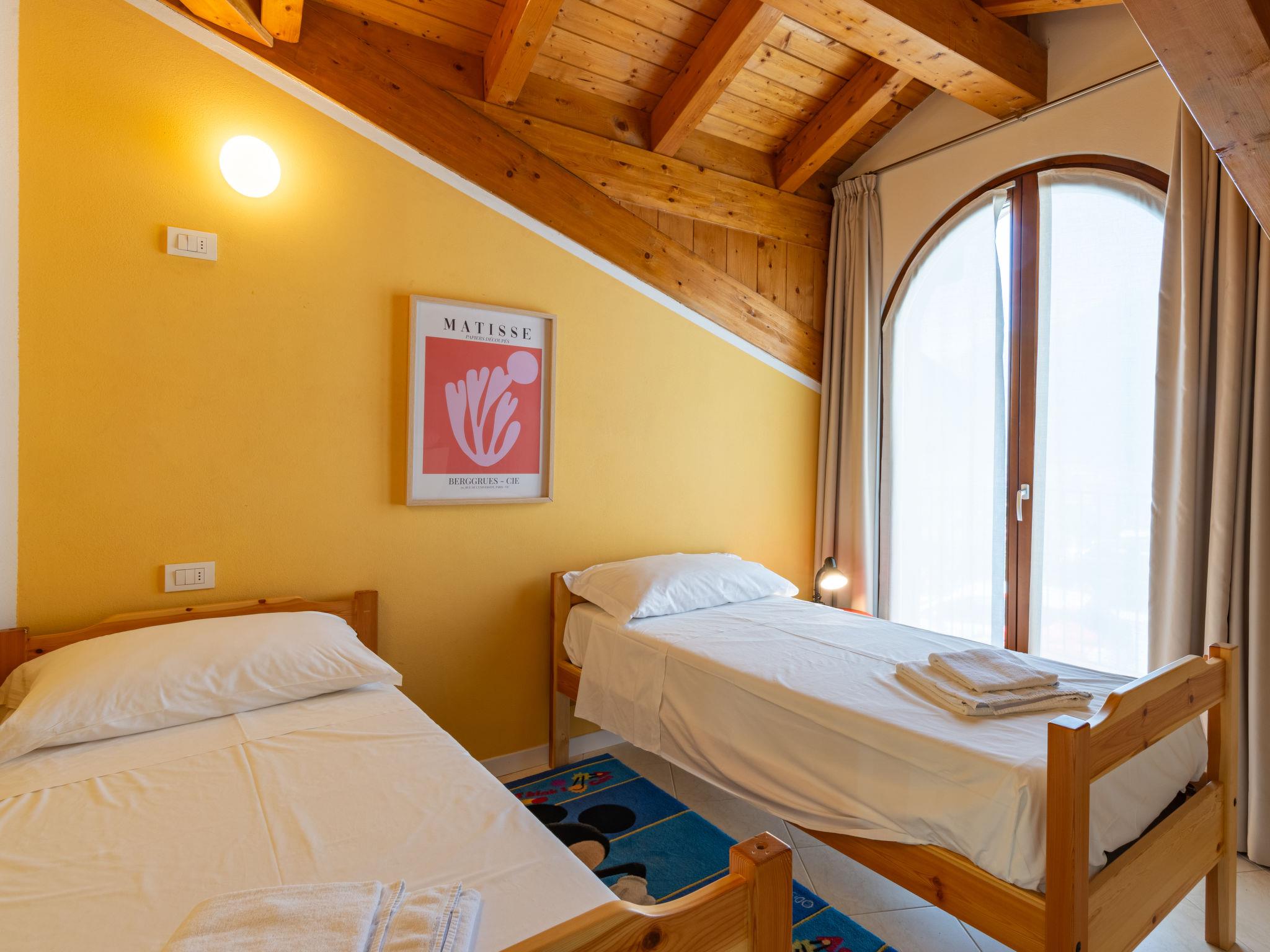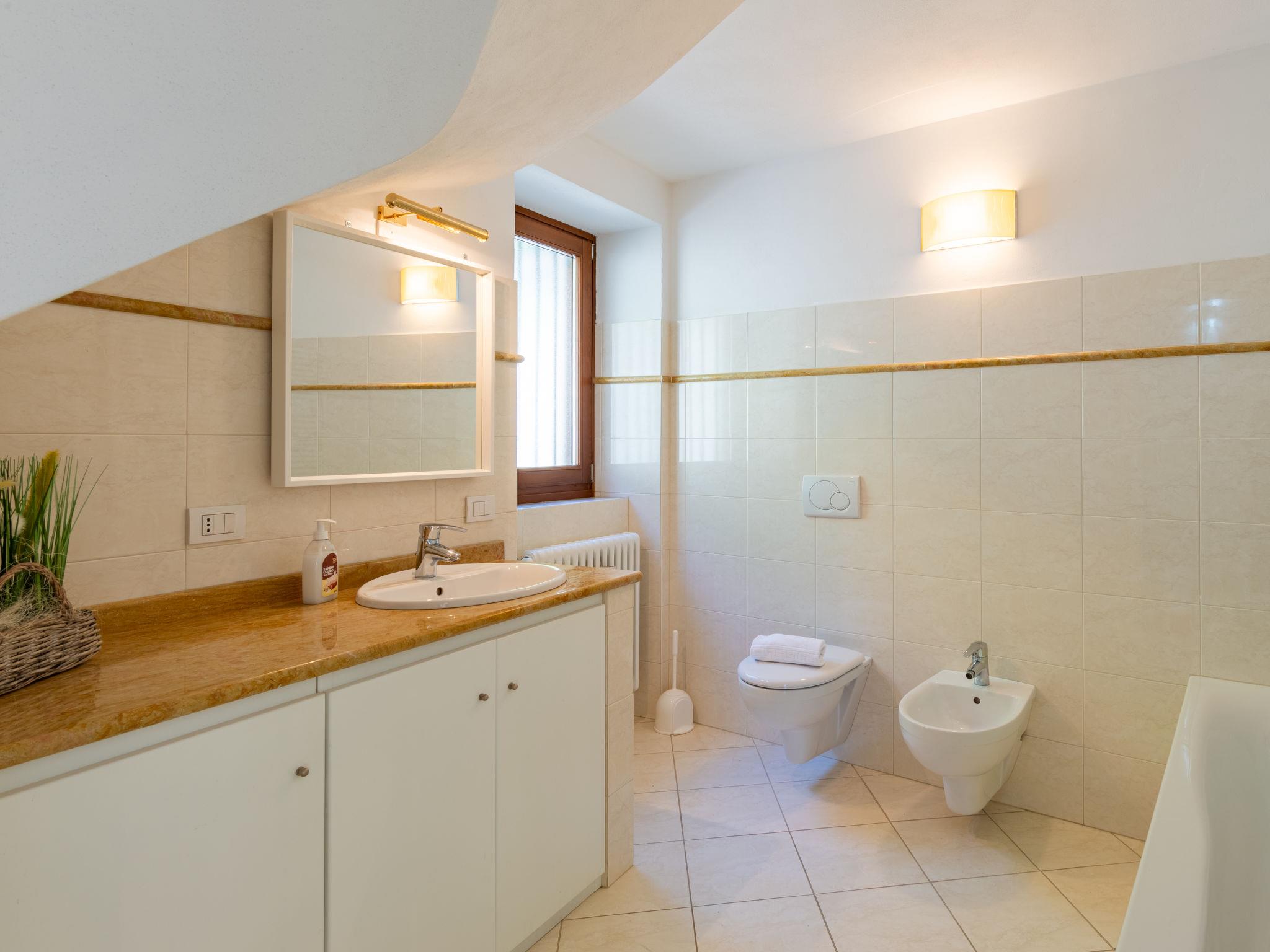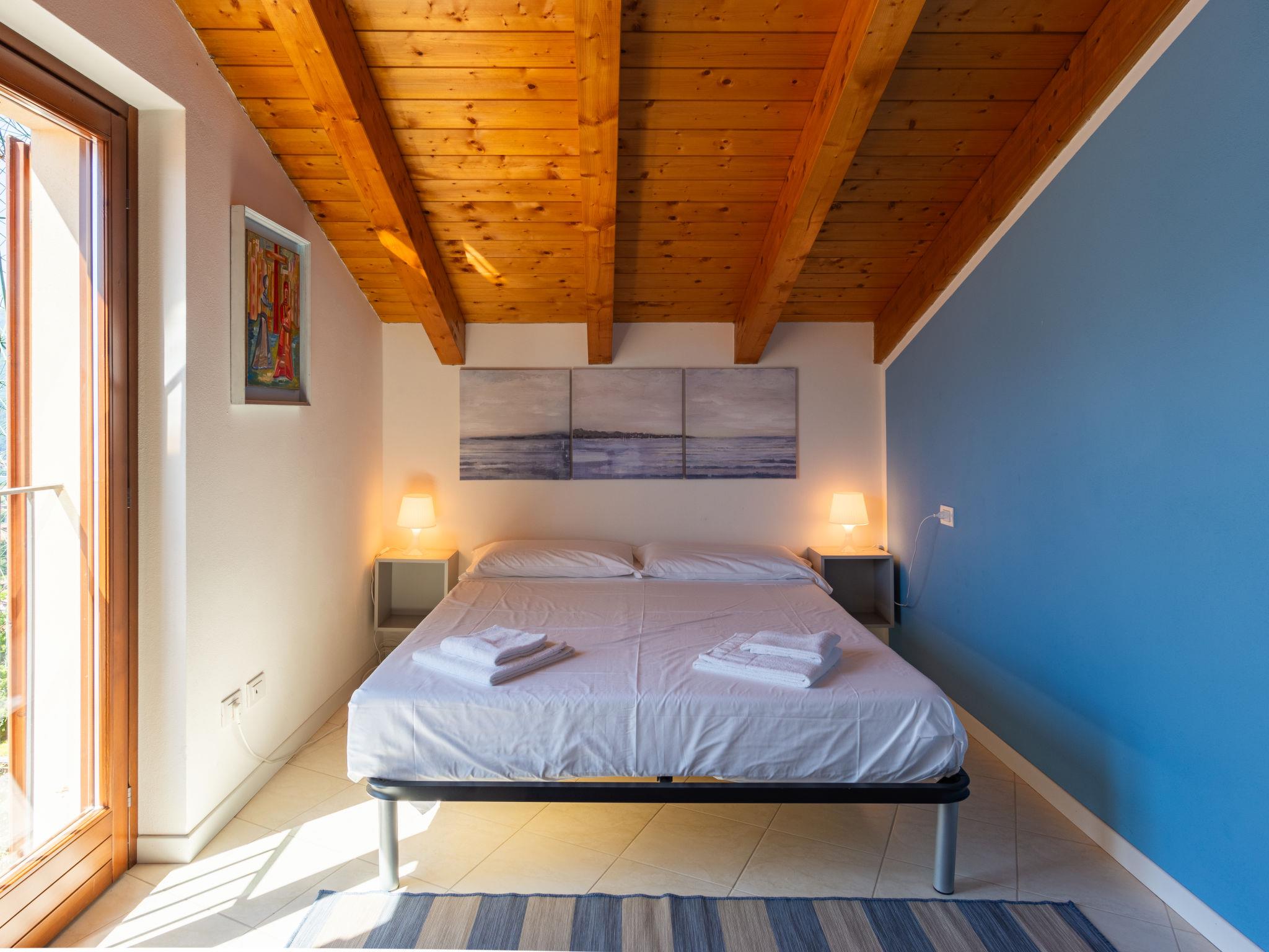 4-room apartment 90 m2 on 2 levels, on the ground floor. Renovated, comfortable furnishings: living/sleeping room with 1 double sofabed, dining table and TV. Exit to the terrace. Open kitchen (oven, dishwasher, 4 gas rings, toaster, electric coffee machine). Bath/WC. Upper floor: with sloping ceilings, 1 double bedroom. With sloping ceilings, 1 room with 2 beds. 1 small room with 1 x 2 bunk beds. Shower/WC. Gas heating. Terrace. Terrace furniture, deck chairs (2). Panoramic view of the lake and the mountains. Facilities: baby cot for up to 2 year olds, hair dryer. Parking (1 car). Please note: non-smokers only. Maximum 1 pet/ dog allowed. Private entrance. IT013249C2S7KHSX54