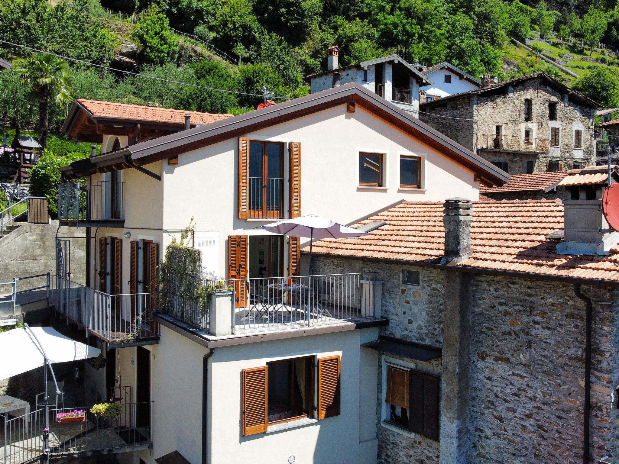 Apartment house "Casa degli Angeli", 350 m a.s.l., 3 storeys, semi-detached. Above Gravedona, in the hamlet San Carlo 1.9 km from the centre of Gravedona, 50 km from the centre of Como, 54 km from the centre of Lecco, on a slope, 1.9 km from the lake, south-east facing position. Parking at the house, public parking 50 m. Shop 1.9 km, supermarket 2.5 km, bus stop "Gravedona" 1.9 km, railway station "Como" 50 km, pebble beach 2.2 km, outdoor swimming pool 2.2 km. Marina 1.9 km, golf course (18 hole) 25 km. Nearby attractions: Chiesa Santa Maria del Tiglio, Pallazzo Gallio, Lake Como Adventure Park. Well-known ski regions can easily be reached: Madesimo, Livigno, Sankt Moritz, Santa Caterina. Well-known lakes can easily be reached: Lago di Mezzola, Lago di Lugano. Hiking paths: Parco Valle Albano, cycle path Sentiero Valtellina. Part of the house is closed and unoccupied.