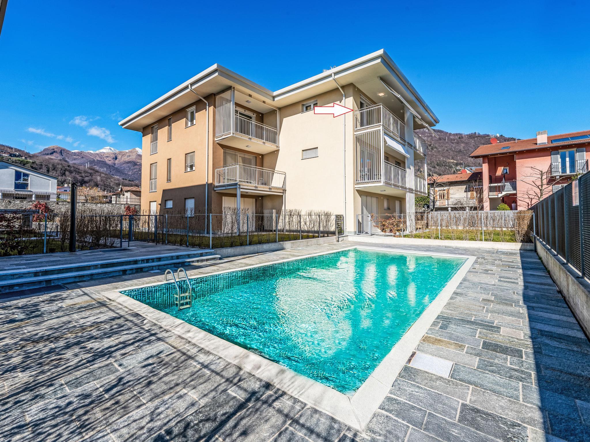 Modern, comfortable residence "Laricola", built in 2023. 2 houses in the residence. 11 apartments in the residence. In the centre of Gravedona 2.5 km from the centre of Domaso, 52 km from the centre of Como, in a sunny position in the residential district, 200 m from the lake, road to cross. For shared use: swimming pool angular fenced (9 x 4 m, depth 140 cm, seasonal availability: 01.Jun. - 30.Sep.). Outdoor shower, pool maintenance by the owner/gardener. In the house: lift, air conditioning, heating available only from 15.Oct. - 15.Apr.. Public parking 10 m on the road. Supermarket 400 m, restaurant 100 m, bar, bakery 100 m, pedestrian zone 100 m, bus stop "C10 Como-Menaggio-Colico" 800 m, railway station "Colico" 17 km, ferry "Menaggio" 18 km, sandy beach "Serenella", pebble beach 650 m, outdoor swimming pool. Marina 600 m, golf course (18 hole) 21 km, sailing school 350 m, tennis 350 m, sports centre 350 m, children's playground 400 m. Nearby attractions: Chiesa Santa Maria del Tiglio-Gravedona, Palazzo Gallio-Gravedona, Villa Carlotta-Tremezzo, Bellagio, Menaggio, Varenna. Well-known lakes can easily be reached: Lago di Mezzola. Hiking paths: Monte Duria, Valle del Livo. Please note: Hydronic cooling system with fan-coil, powered by a heat pump. To respect the environment, the temperature does not drop below 24 degrees.