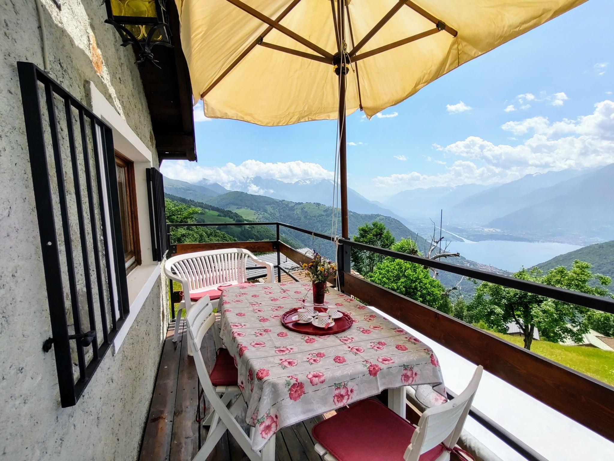 Rustic 3-family house "Mia e Giulia", 1'115 m a.s.l.. Above Peglio, in the hamlet Bodone 12 km from the centre of Gravedona, 60 km from the centre of Como, 64 km from the centre of Lecco, in an elevated position on a slope, 12 km from the lake, in the countryside. For shared use: property (fenced) with meadow. 5 km long narrow motor access (mountain road). Stepped path to the house. Parking at the house. Shop 5 km, supermarket 13 km, bus stop 5 km, railway station "Como" 60 km, pebble beach "Lido di Gravedona" 12 km, outdoor swimming pool 12 km. Marina 12 km, golf course (18 hole) 39 km. Nearby attractions: Chiesa Santa Maria del Tiglio Gravedona, Agriturismo Zertin, Palazzo Gallio-Gravedona, Parco Valle Albano, Lake Como Adventure Park, Gravedona. Well-known lakes can easily be reached: Lago di Mezzola, Lago di Lugano. Hiking paths: Monte la Motta, Monte Duria, Alpe Paregna.