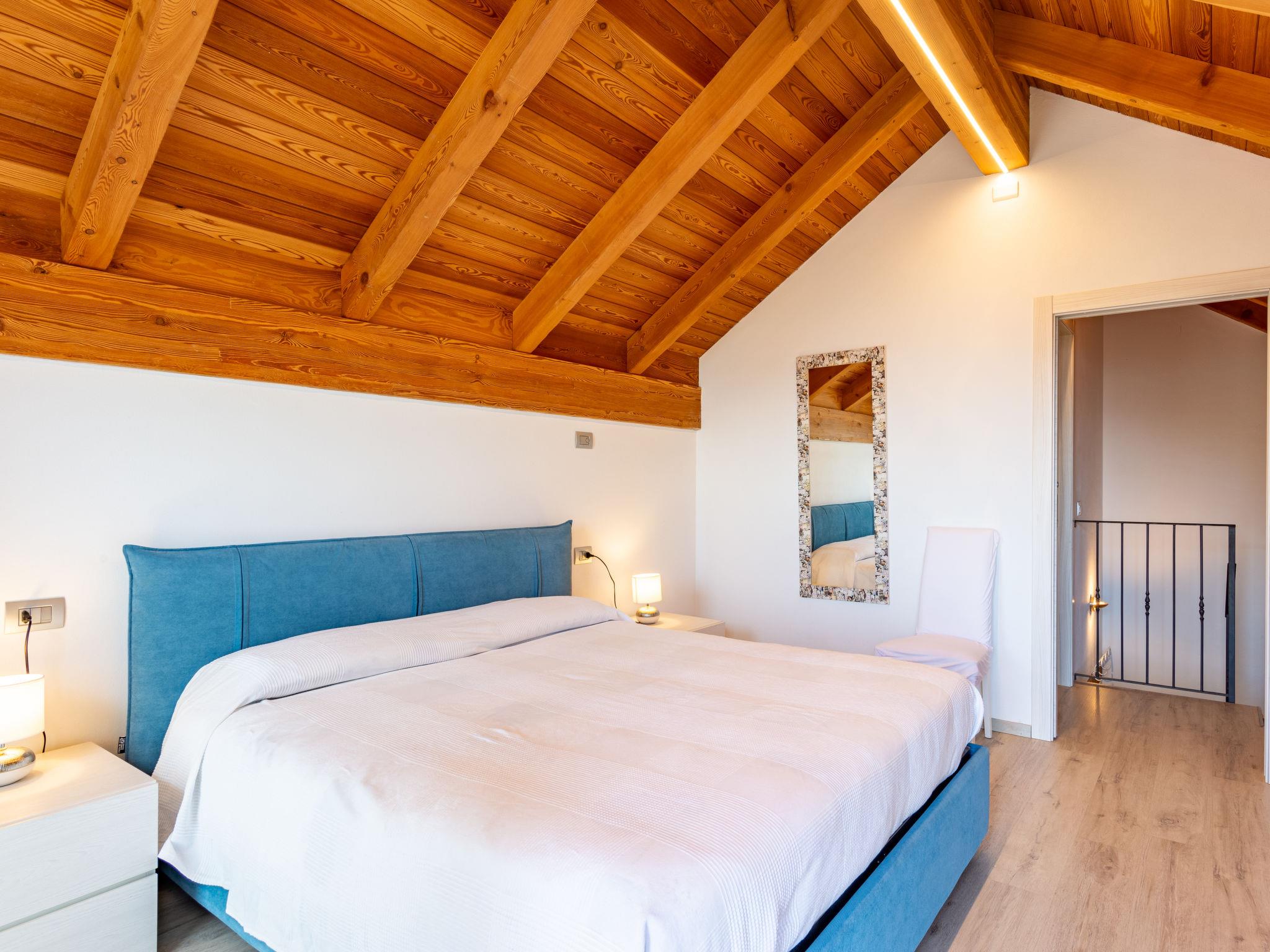 3-room house 90 m2 on 3 levels. Tasteful furnishings: living/dining room with (160 cm), dining table and satellite TV. Exit to the garden. Open kitchen (oven, dishwasher, 4 gas rings, toaster, kettle, microwave, electric coffee machine). On the lower ground floor: 1 double bedroom. Exit to the garden. Shower/WC. Upper floor: 1 double bedroom with sloping ceilings. Exit to the balcony. Shower/WC. Gas heating. Parquet floors. 2 balconies, terrace roofed. Terrace furniture, balcony furniture, barbecue, deck chairs (2). Panoramic view of the lake. Facilities: washing machine, children's high chair, baby cot for up to 2 year olds. Internet (WiFi, free). Please note: non-smokers only, no parking. Maximum 1 pet/ dog allowed. IT013178C2TOZ5544O