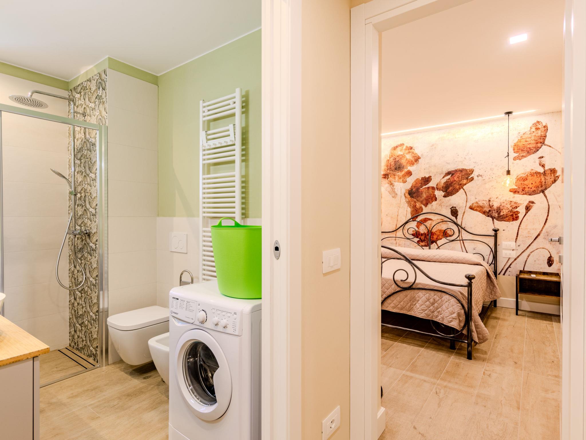 "Riflesso del lago", 3-room apartment 80 m2, on the ground floor. Fully renovated in 2024, comfortable and beautiful furnishings: living/sleeping room with 1 double sofabed and dining table. Exit to the terrace, to the swimming pool. 1 double bedroom with 1 double bed (160 cm, length 195 cm). 1 room with 2 beds (90 cm, length 195 cm). Open kitchen (oven, dishwasher, 4 induction hot plates, toaster, kettle, microwave, freezer). Shower/bidet/WC. Air-conditioning, underfloor heating. Heating available only from 15.10. to 30.04. Natural stone floors. Large terrace roofed. Terrace furniture, deck chairs (4). Marvellous panoramic view of the lake and the mountains. Facilities: washing machine, iron, children's high chair, hair dryer. Internet (WiFi, free). Parking. E-charging station. Please note: non-smokers only. Private entrance, smoke alarm, fire extinguisher. IT013249C2WAD68GIU