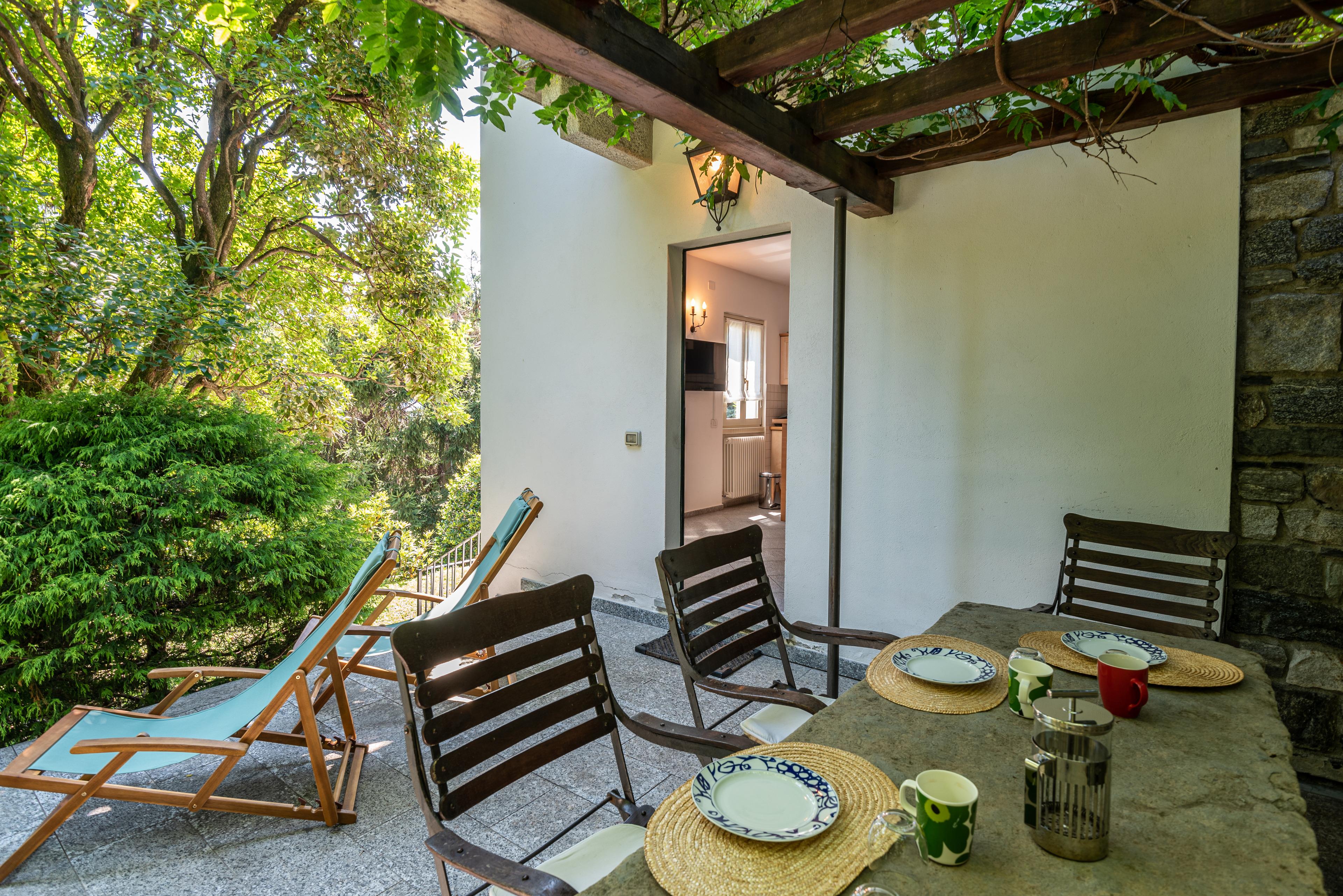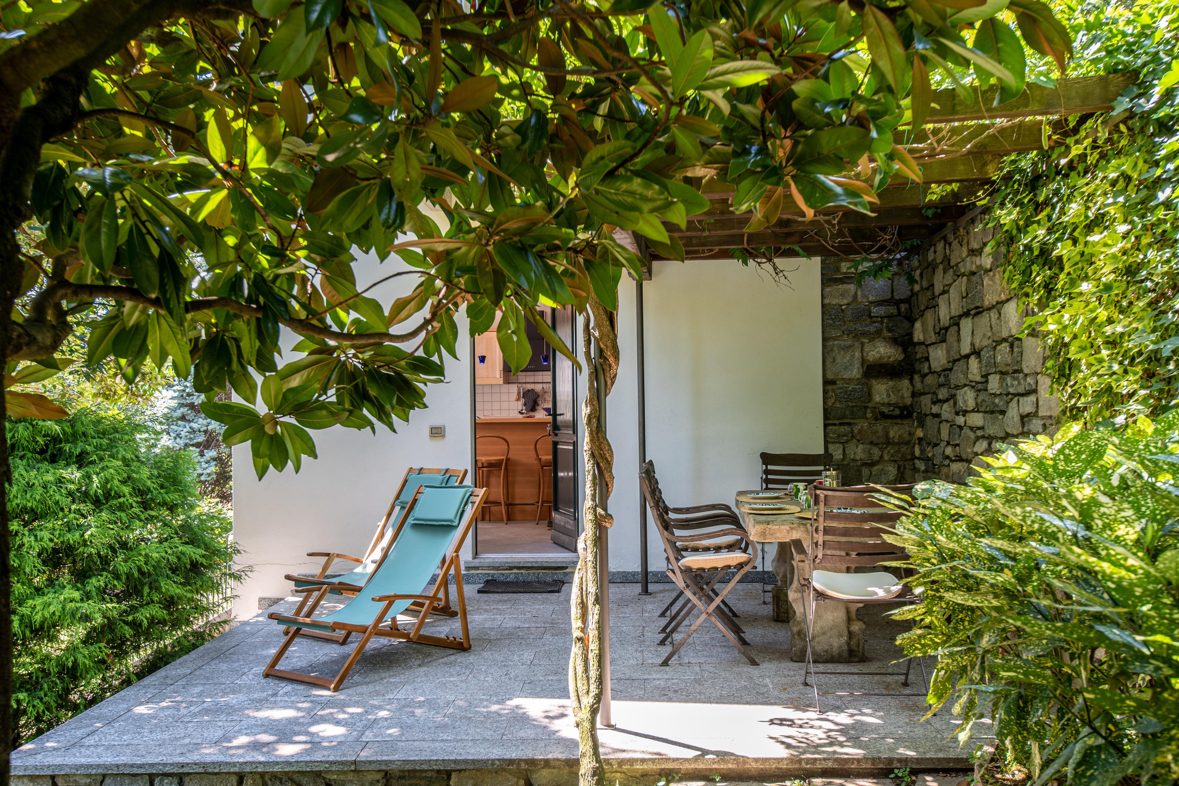 Charmantes Ferienhaus mit mediterranem See-Flair für Individualurlauber, die etwas Besonderes wünschen in außergewöhnlicher Lage. Kultur, Natur, Sport und Ruhe & Entspannung In einer paradiesischen Grüninsel über dem historischen Ortskern von Gravedona, am Westufer des oberen Sees. Mit drei Wohnebenen:rnDen Haupteingang im Erdgeschoss erreichen Sie über die von altem Baumbestand umgebene Natursteinterrasse mit eingewachsener Pergola und hochwertigen Gartenmöbeln.rnIm EG befindet sich die moderne Wohnküche mit Esstheke und Couchbereich mit Schlafmöglichkeit für 2 Personen. rnEine Wendeltreppe führt nach oben in den stilvollen Doppelbett-Schlafbereich mit Balkon seitlich zur Seeseite, der einen herrlichen Blick über die Wipfel zu See und Bergen bietet.rnDas geräumige, helle Bad befindet sich im Souterrain mit Tageslicht. Eine vorgelagerte Garderobe bietet reichlich Ablageplatz, mit Eingang über die eigene Außentreppe ins Souterrain.