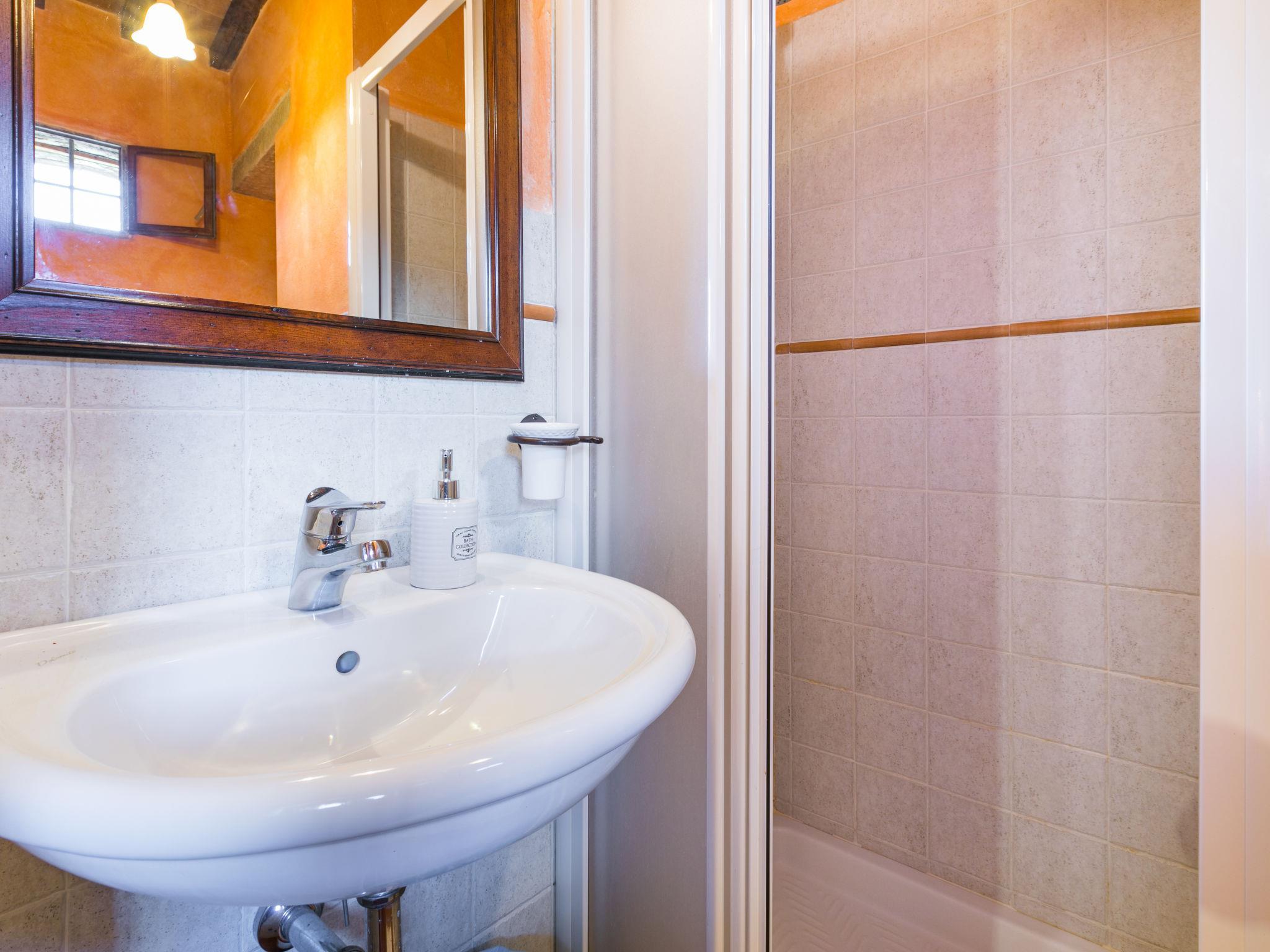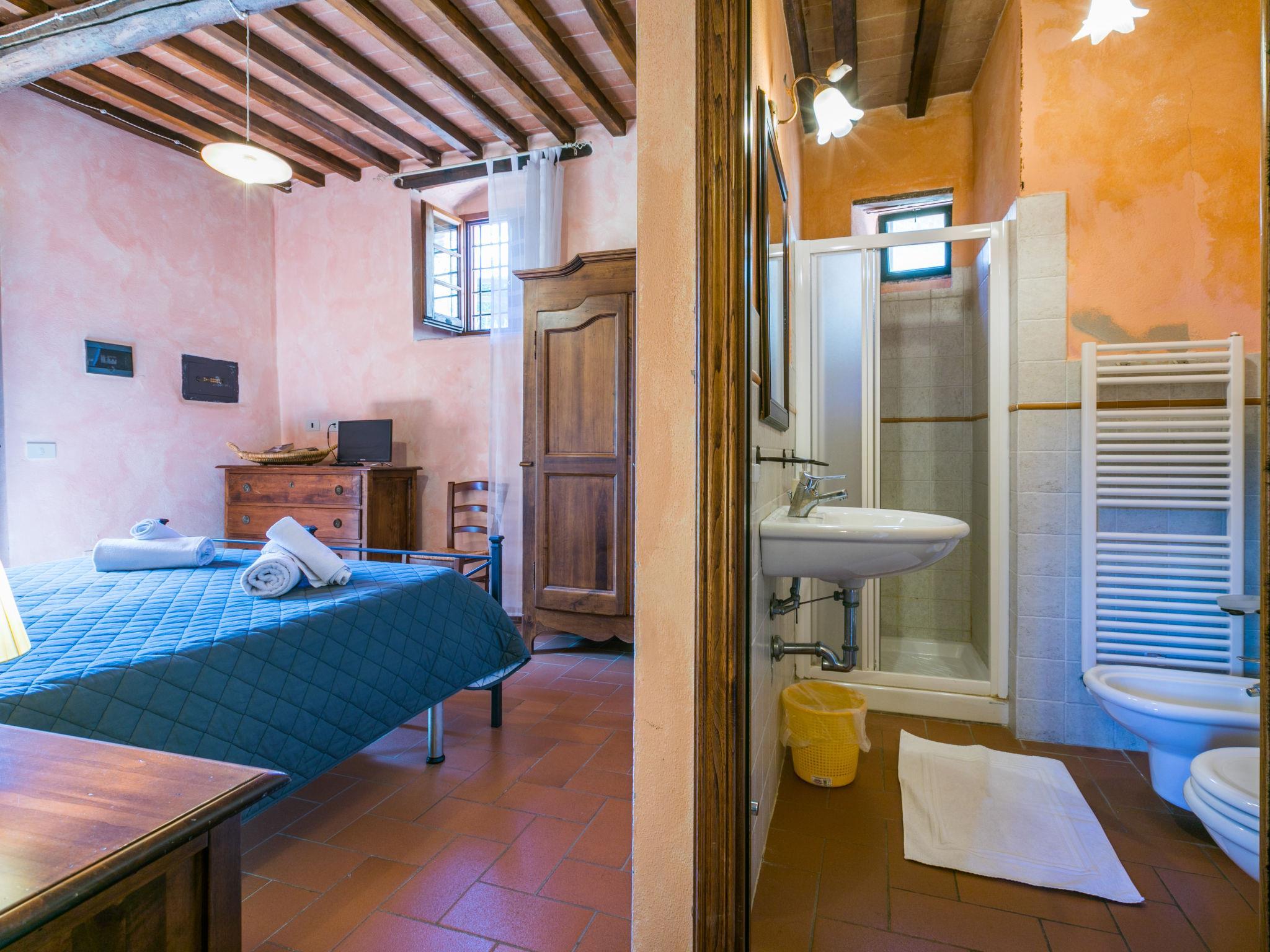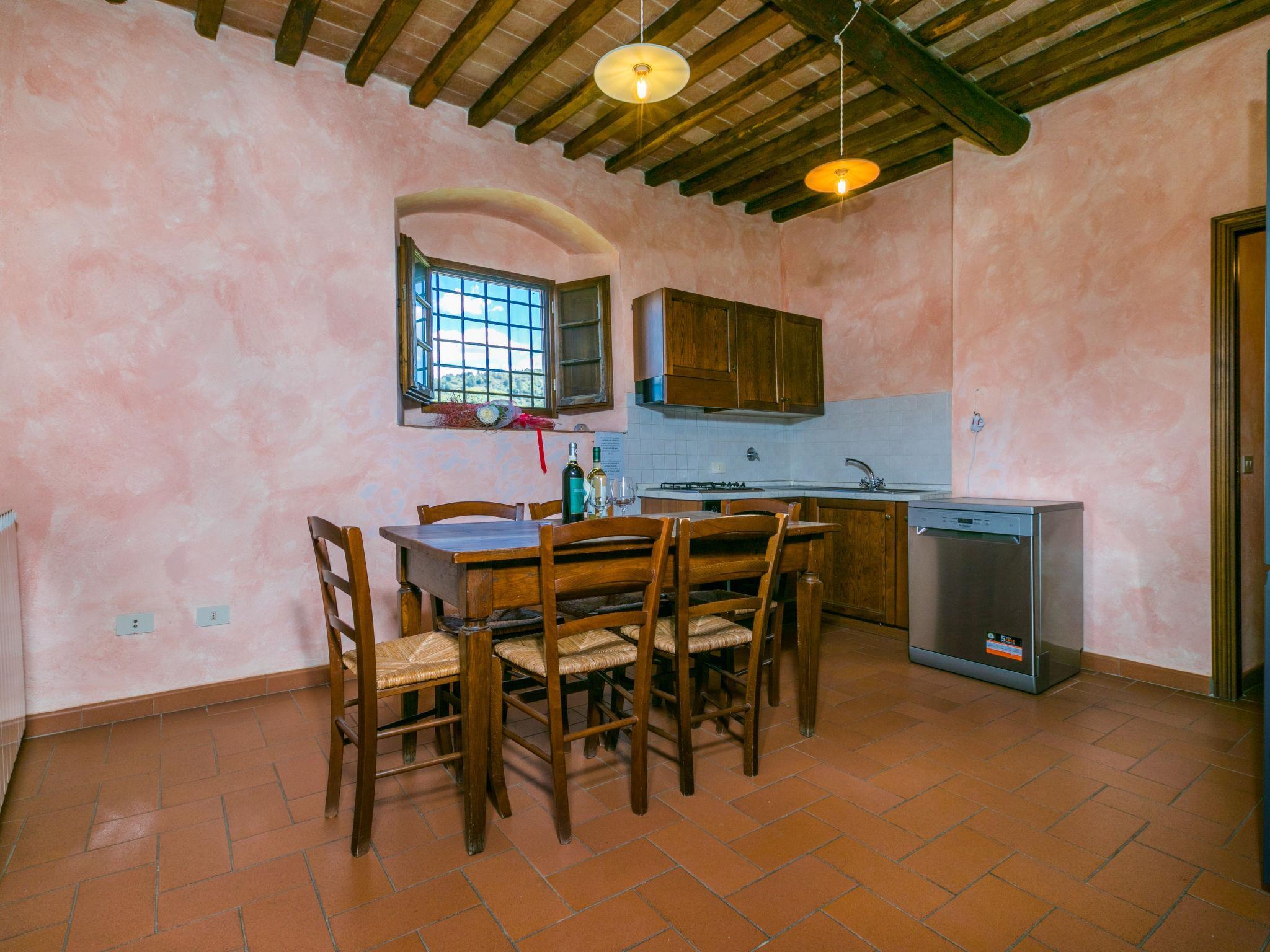 Large, rustic on a vinyard country house "Fattoria l'Ottavo", 400 m a.s.l., from the 18th century, renovated, surrounded by meadows and vineyards. 3 houses in the residence. 9 apartments in the residence. In the district of Lucolena in Chianti 12 km from the centre of Greve in Chianti, 13 m from the centre of Figline Valdarno, in a secluded, sunny, elevated position, in the countryside. For shared use: property 40 ha, natural garden, meadow, swimming pool fenced (8 x 4 m, seasonal availability: 01.May. - 15.Oct. pool opening hours: 08:00-20:00). Outdoor shower, terrace, garden furniture, barbecue, pool maintenance by the owner/gardener. In the house: reception, restaurant, breakfast room, WiFi, washing machine (for shared use). Linen change weekly. Breakfast possible on request (extra). 200 m long narrow motor access to the grounds. Parking on the premises. Shop 700 m, grocery 700 m, supermarket 12 km, shopping centre 13 km, restaurant 1 km, bar 700 m, bakery 700 m, bicycle rental 12 km, bus stop "Lucolena" 700 m, railway station "Figline Valdarno" 13 km, sandy beach "Calambrone" 110 km, indoor swimming pool 13 km, lake Trasimeno 114 km. Golf course (18 hole) 20 km, tennis 12 km, riding stable 2 km, walking paths from the house 100 m. Nearby attractions: Firenze 37 km, Siena 50 km, Arezzo 54 km, San Gimignano 65 km. Please note: car recommended. Reception open 10:00-17:00 hrs. Suitable for families, baby equipment (included). Suitable for events. Local sale of farm products. Please note: the owner lives on the same property. All houses/apartments are individually designed/furnished.