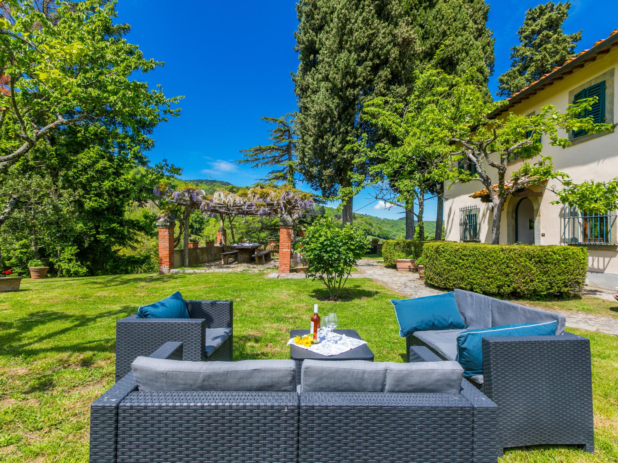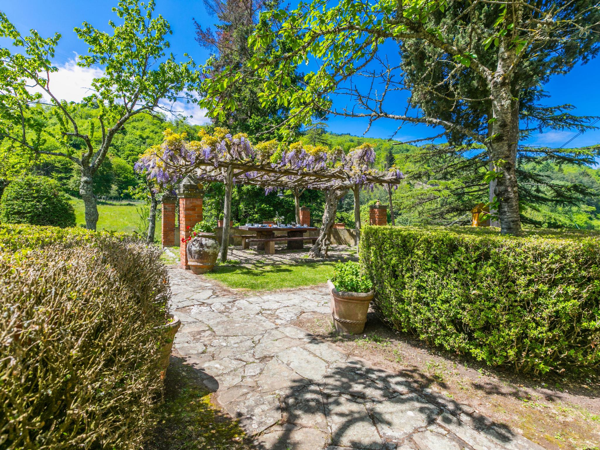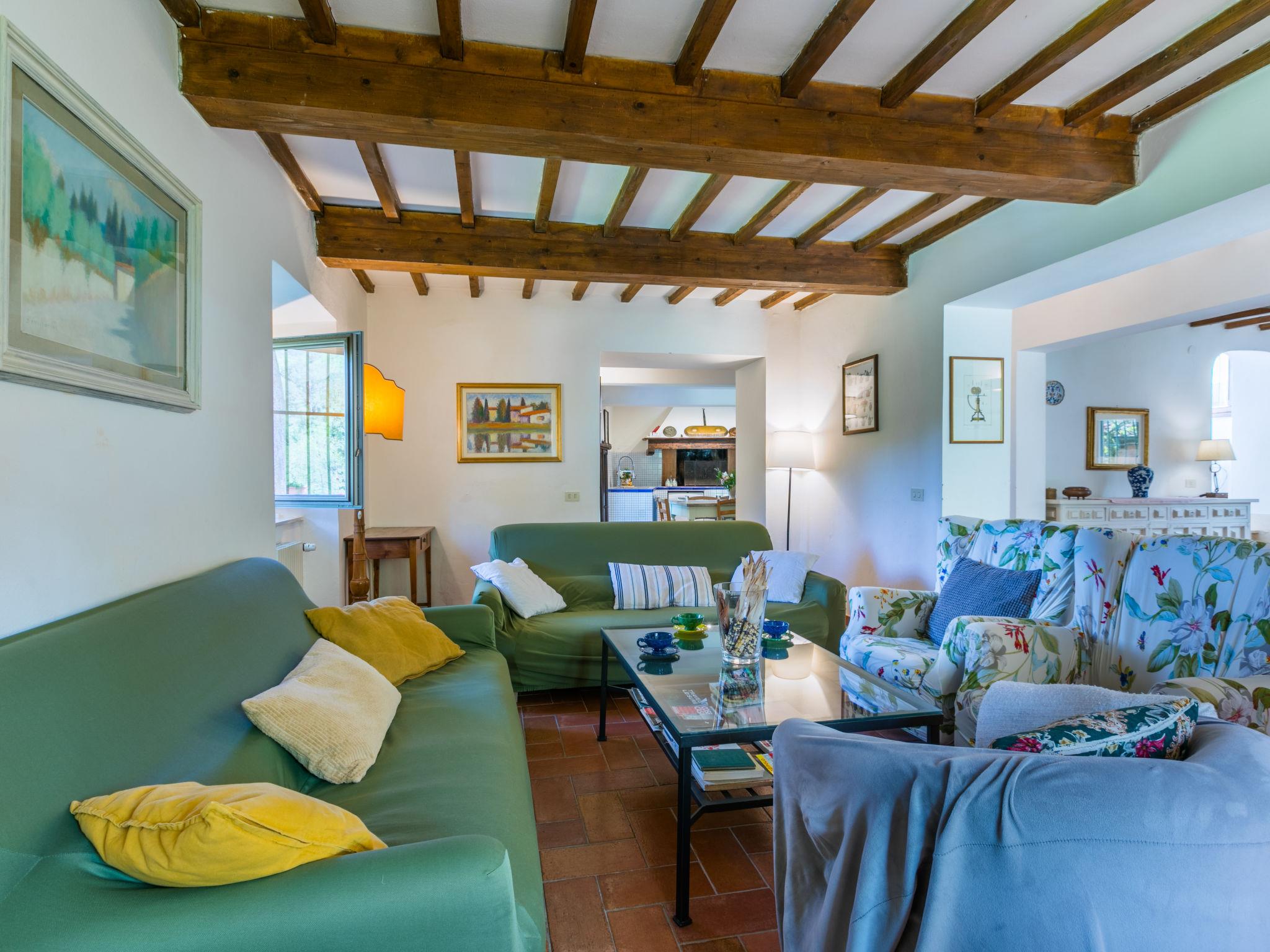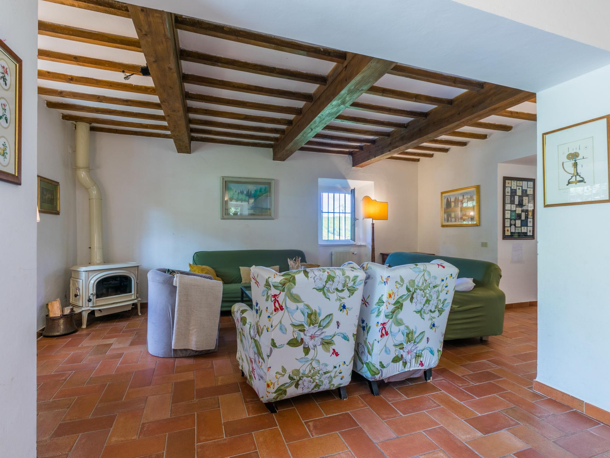 "Villa Castagnoli", 7-room villa 250 m2 on 2 levels. Comfortable and wooden furniture furnishings: living/dining room with open-hearth fireplace, dining table and satellite TV (flat screen). Exit to the garden. Open kitchen (oven, dishwasher, 5 gas rings, freezer, electric coffee machine) with open-hearth fireplace. Sep. WC. Upper floor: 3 rooms, each room with 1 french bed (160 cm). 2 rooms, each room with 2 beds (80 cm). Bath/WC, 2 showers/WC. Gas heating. Parquet floors. Terrace roofed. View of the valley and the garden. Facilities: washing machine, iron, baby cot for up to 2 year olds. Internet (WiFi, free). Parking (4 cars) at the house. Please note: non-smokers only. Maximum 1 pet/ dog allowed. No mandatory extra charges to be paid on-site except for local tax. IT048021B49F5V68X8