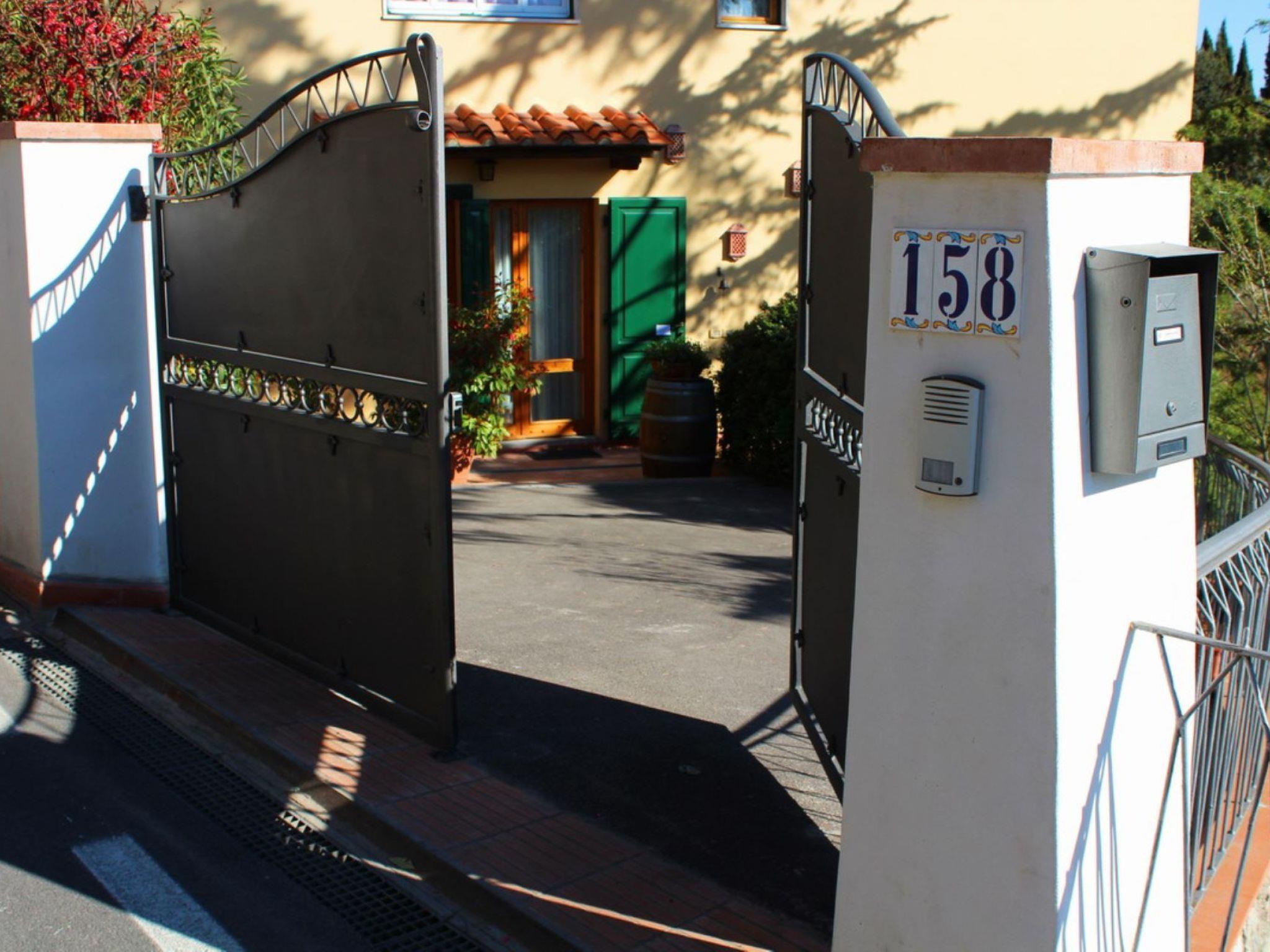 Panzano in Chianti is a lovely little hilltop town, located just above Greve, midway between Florence and Siena. On its slopes, a mere 20 metres from its centre, is a residential area in which lies our apartment - in fact, this is Casa Conca d’Oro’s great strength - the fact that guests can easily walk into the centre of Panzano’s shops, bars and restaurants, without having to get the car out. A comfortable apartment, its other great advantage is the naturally shaded, fenced-in garden, terraced, with views down over the atmospheric hills of Chianti - a wonderful well-kept area in which to relax, dine, with the use of the barbeque area, or just for drinks while the sun goes down. Panzano possesses the essential shops, banks and chemist, and is noted for a particular butcher shop called Cecchini - this is the famous ’butcher of Panzano’, who will greet customers with a glass of wine and maybe sing an aria or two while you select your cuts of meat. Our apartment is on one of the roads that leads into the town’s centre. Private off-road parking. Twelve steps lead down to the furnished garden and barbeque area. No children are allowed up to 10 years.Outside eating area with barbecueGround Floor: Sitting/dining room with TV SAT, wifi and open fireplace for which the owner will provide free firewoodSmall kitchen with electric oven, 4 stoves, microwave, fridge/freezer, coffee machine and kettleSmall utility room with washing machineTwo double bedded rooms, one with en suite shower room, WC etc.Bathroom with WC etc.Panzano in Chianti (Shops and restaurants) 0,1 KmGreve in Chianti 6 KmFirenze 33 KmSiena 36 KmSan Gimignano 41 KmArezzo 77 Km