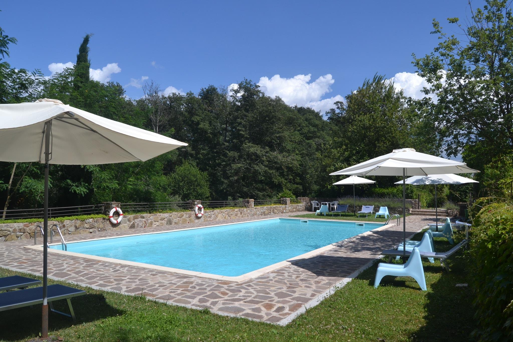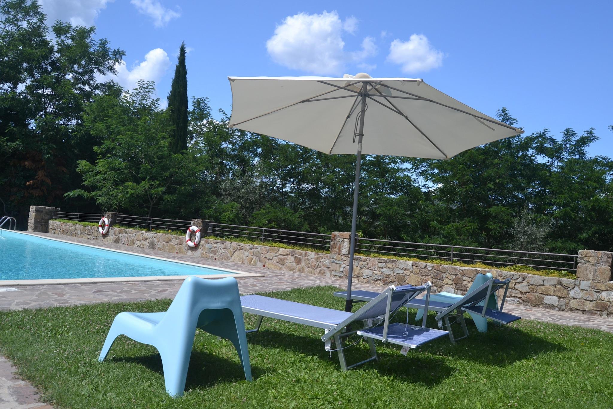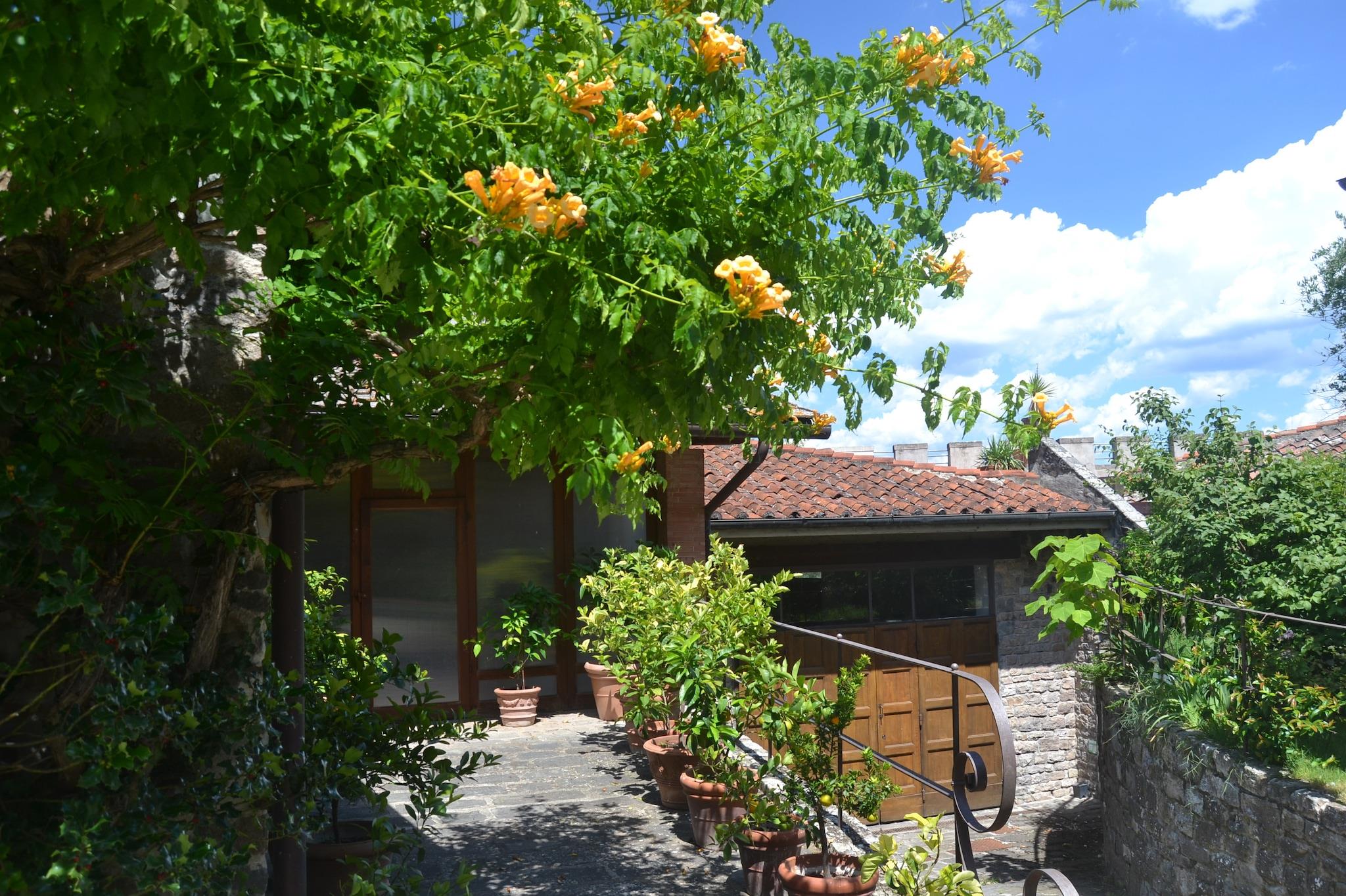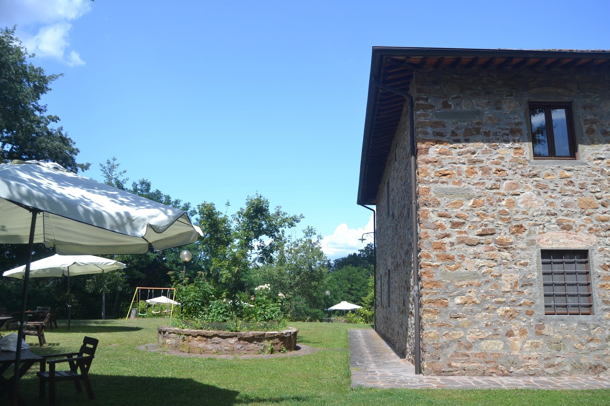 I bakkerne i Toscana finder du denne charmerende lejlighed beliggende på en historisk vin Chianti Classico, lavet af den røde signaturdrue fra Toscana, dens ejendom ligger nær Greve in Chianti - hjertet af Chianti Classico-regionen. Beliggende i et traditionelt toscansk bondehus, blander det rustik charme med fredfyldte udsigter over landskabet, og tilbyder et fredeligt tilflugtssted perfekt for familier eller par, der ønsker at slappe af blandt vinmarker, olivenlunde og kulturrige byer. Træd udenfor i den smukt vedligeholdte fælles have, hvor børn kan nyde legeredskaber, mens du slapper af under solen. Køl af i den store fælles swimmingpool (åben maj til september) eller samles til en grill efter en dag med vinsmagning. Den stenbyggede lejlighed har en indbydende stue/spisestue med pejs og et fuldt udstyret køkken, ideelt til afslappede toscanske middage. En høj stol og børneseng er til rådighed for unge rejsende. Kun 7 km væk ligger den fortryllende by Greve in Chianti, kendt for sit charmerende hovedtorv, lokale håndværksbutikker og den berømte Chianti Classico vinfestival, der afholdes hver september. De nærliggende Panzano, Radda og Castellina byder på postkortværdige landskaber og vine i topklasse. For en dagstur er Siena og Firenze - rig på kunst, arkitektur og historie - inden for en times kørsel. Madelskere vil nyde nærliggende trattoriaer, der serverer regionale favoritter som florentinsk bøf og ribollita. En hyggelig landsbybar kun 1,5 km væk er perfekt til din morgen-espresso eller til at hente lokale råvarer. Til ridesportssjov ligger et ridecenter kun 5 km derfra, og golfspillere kan spille afsted kun 20 km fra ejendommen.