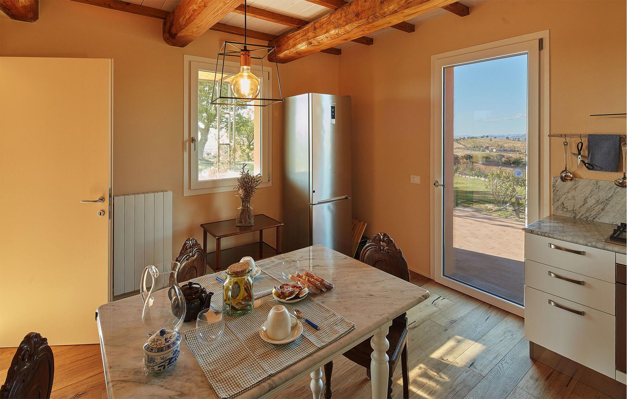 Nyd det gode liv i dette rummelige og smagfuldt indrettede feriehus, beliggende i det smukke toscanske landskab. Her finder I rigelig plads til hyggelige aftener med madlavning, dejlige måltider og hyggelige spilleaftener med familien. Snak om svundne tider i den komfortable stue, stream en film eller kig på biblioteket efter en interessant bog.