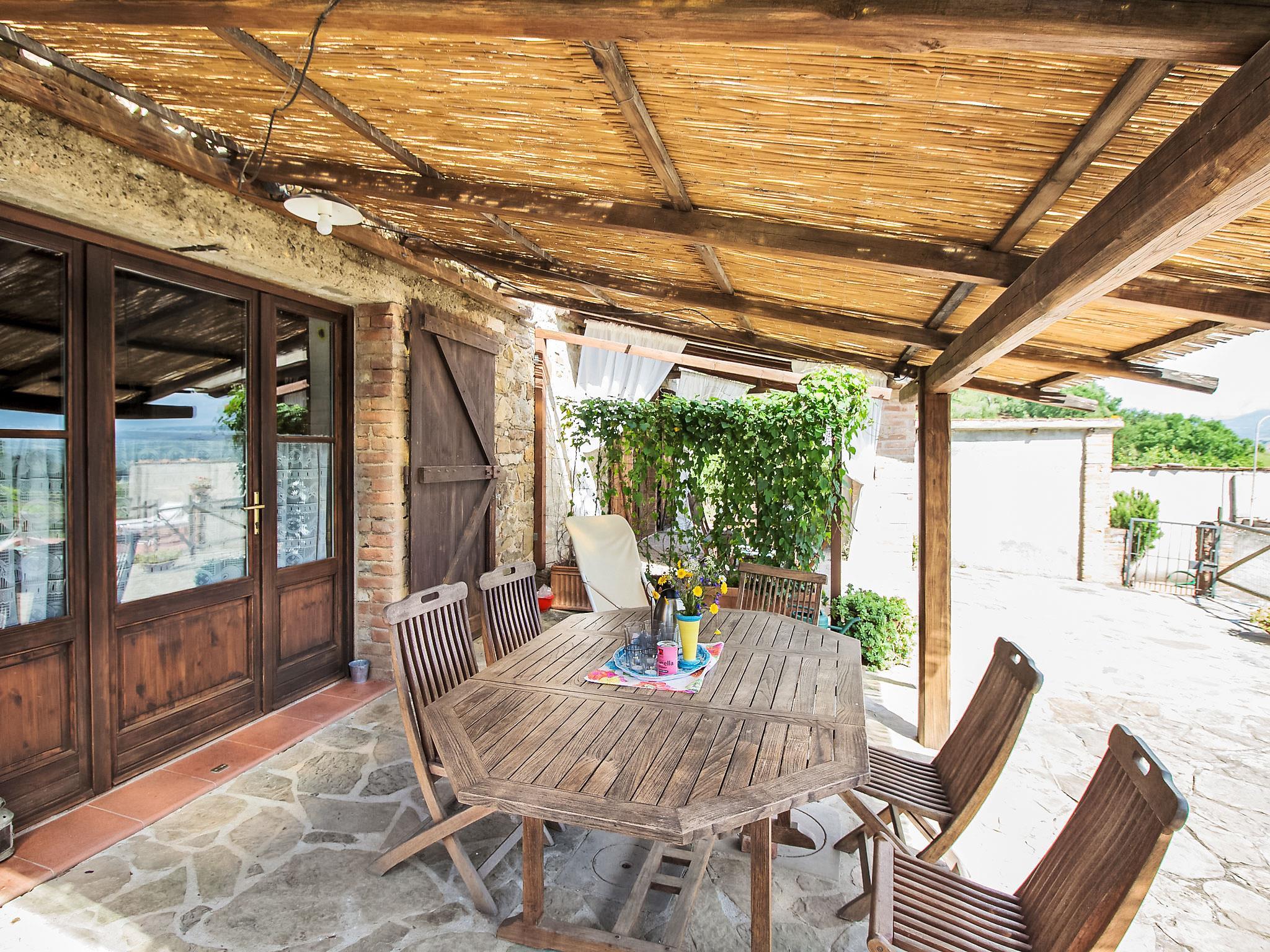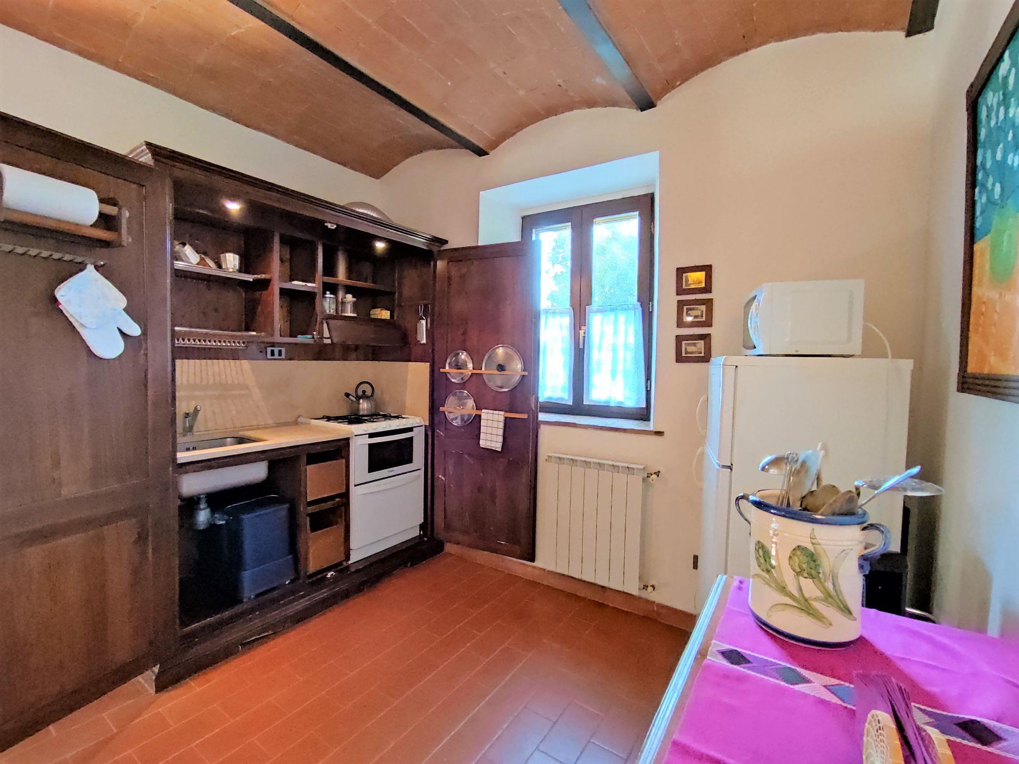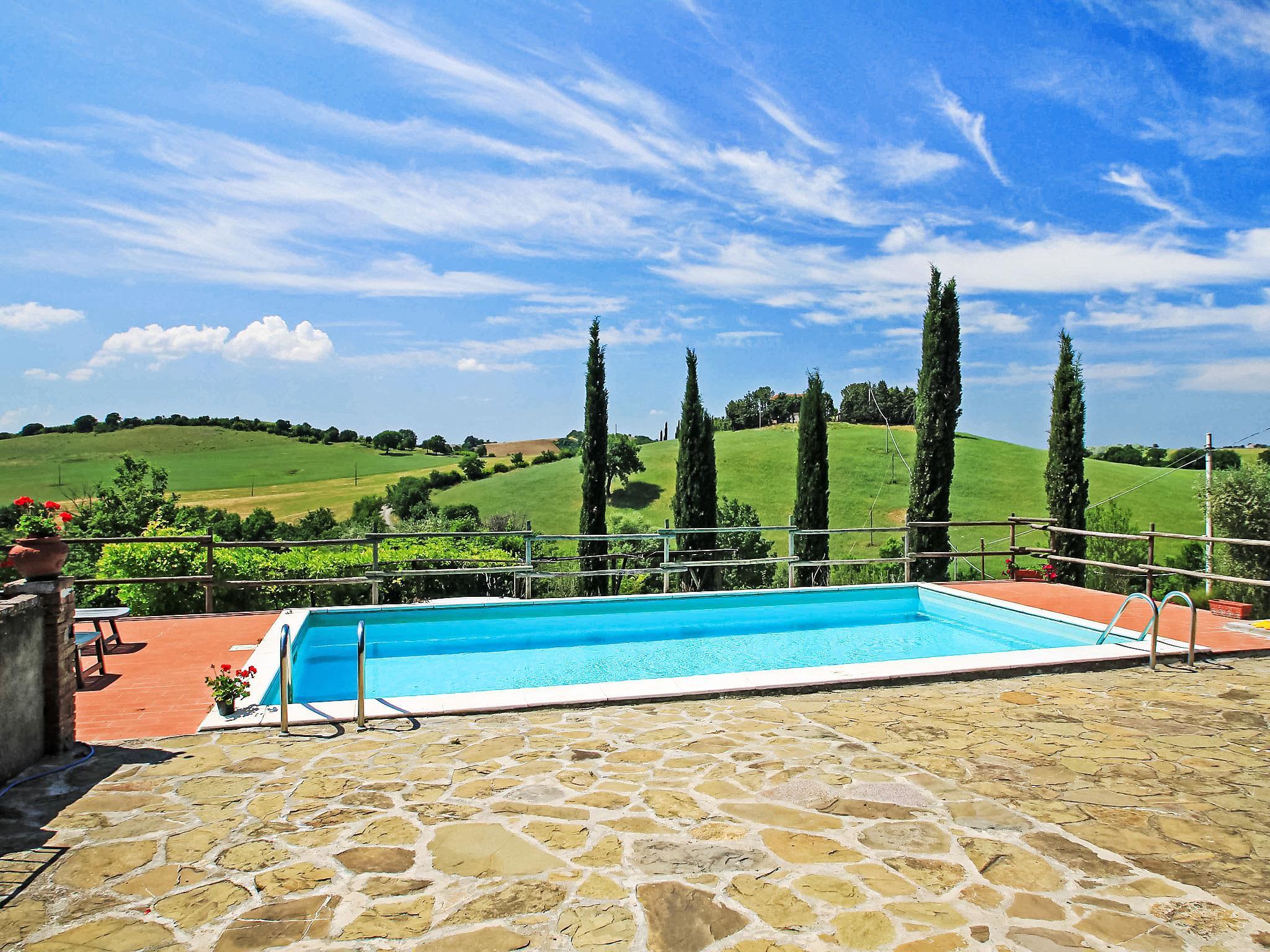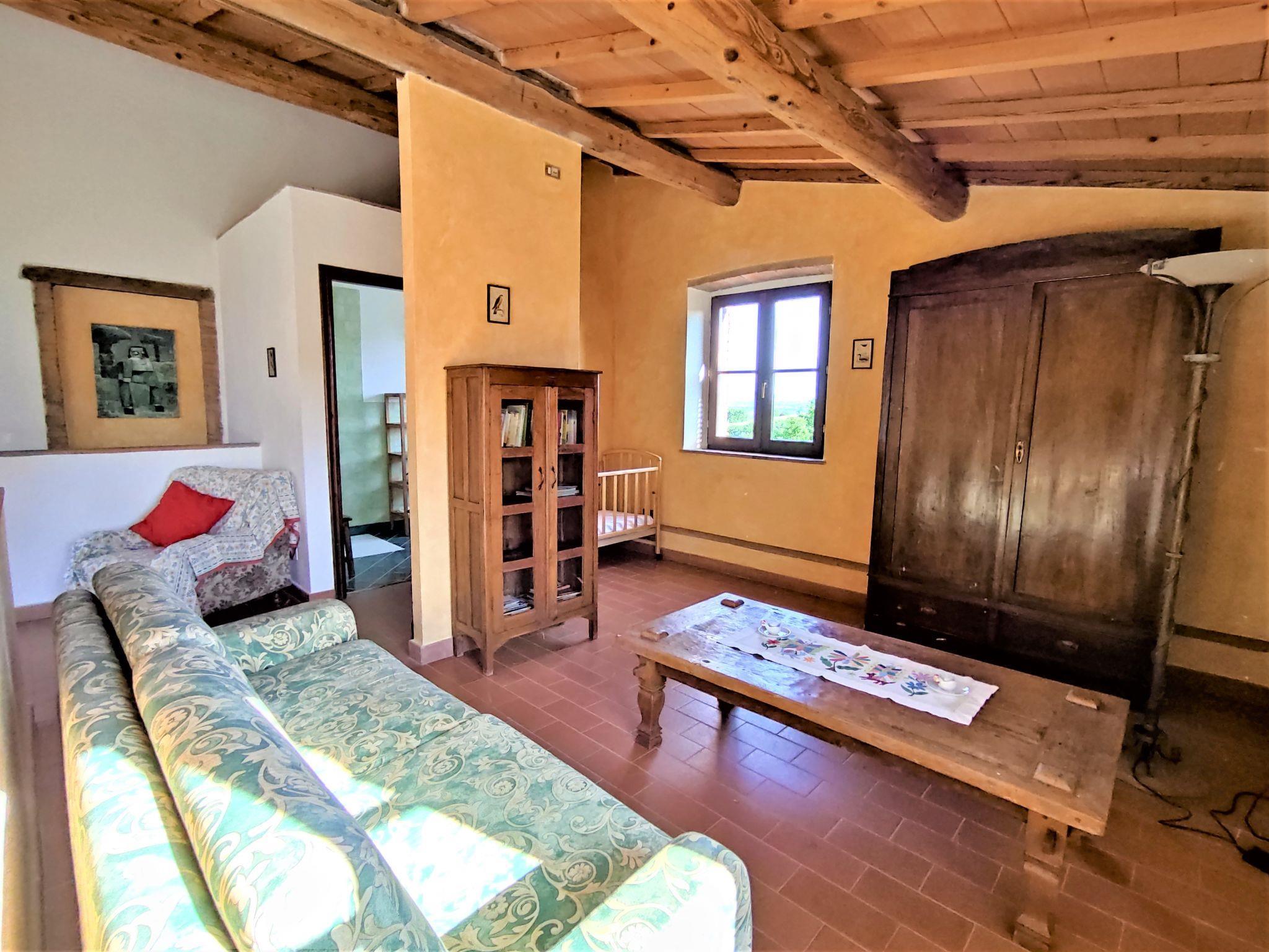 "Cipresso", 5-room semi-detached house 100 m2 on 2 levels, on the ground floor. Fully renovated, tasteful furnishings: 1 double bedroom. Living/dining room with dining table. Exit to the terrace, to the swimming pool. 1 room with 2 beds. Kitchenette (oven, dishwasher, freezer, electric coffee machine). Shower/bidet/WC. Upper floor: living room with panoramic window with 1 sofabed. 1 open double bedroom. Shower/bidet/WC. Heating (extra). Large terrace, porch. Terrace furniture, barbecue (portable), deck chairs. Very beautiful panoramic view of the countryside. Facilities: washing machine, baby cot. Internet (WiFi, free). Maximum 1 pet/ dog allowed. First floor is a large open space which consists of a suite bedroom with a sofa bed and a private bathroom. Private outside space which can be reached from the ground and first floors. IT053002B5S6IC7I49