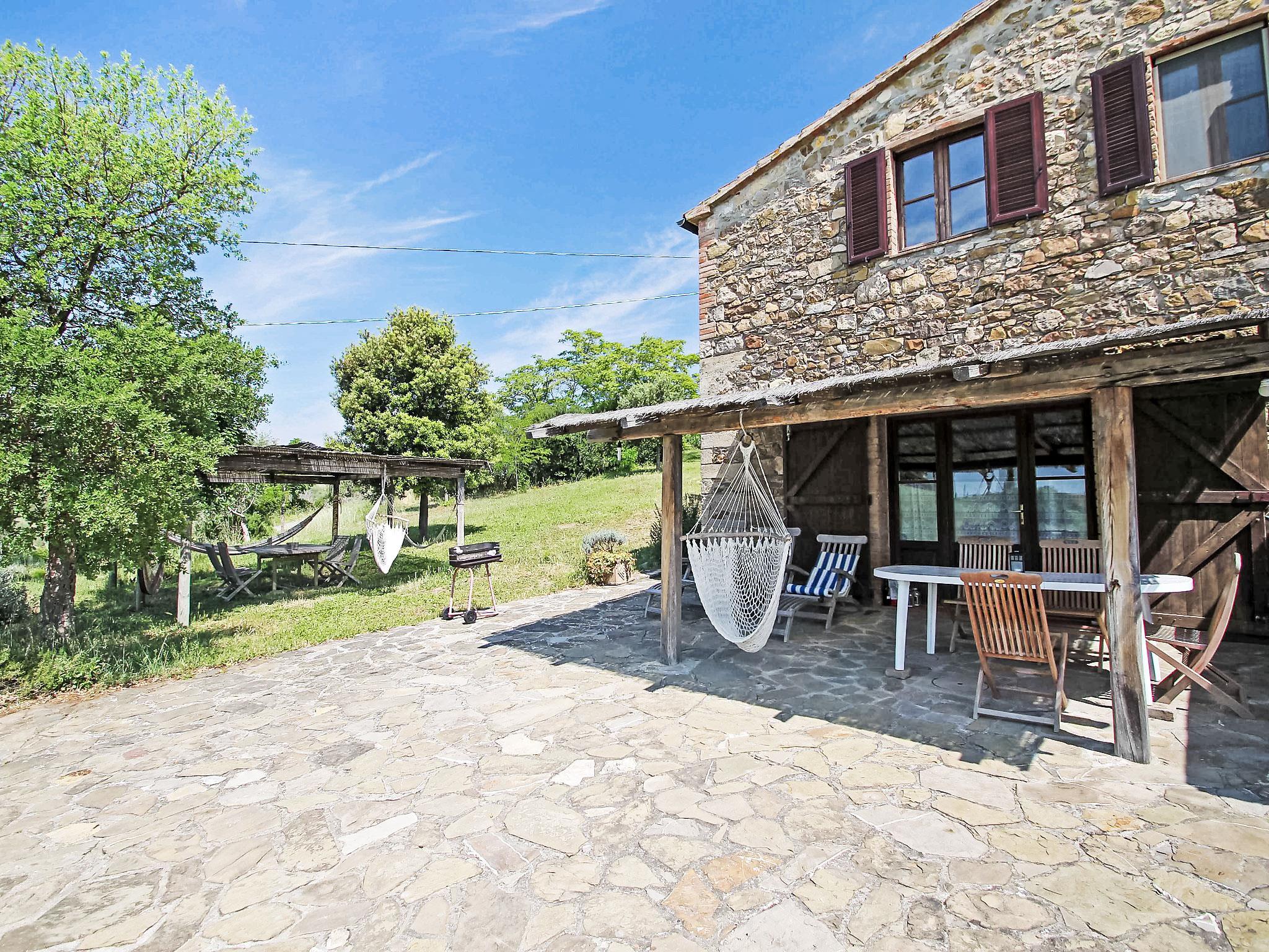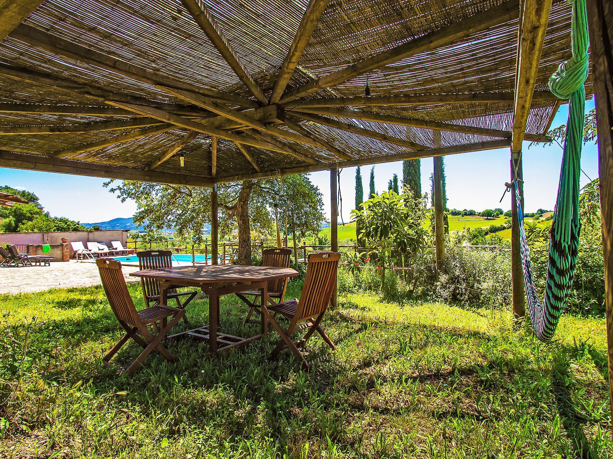 Siuated in the heart of the Tuscan maremma, surrounded by olive trees and vineyards, 35 km from Castiglion della Pescaia and 70 km from the Monte Amiata. The farm has a semidetached house which has been renovated keeping the original features and country style. 2 lovely private terraces and gazebos with hammocks are ideal for people looking for a relaxing holiday. Oven for pizza and bread. The swimming pool is few meters away, in front of the house, ideal for checking on the children. There is also a pretty private chapel still in use. The sorroundings are rich in archeological sites and lovely landscapes. Roselle 15 km, Saturnia Spa centre 60 km, Florence 130 km, Siena 60 km, Roma 180 km. Cosy, rustic country house, 2 storeys, renovated, surrounded by vineyards. 12 km from the centre of Grosseto, 12 km from the centre of Campagnatico, 18 km from the centre of Roccastrada, in a quiet, sunny position on top of a hill, 25 km from the sea, in the countryside. For shared use: property 5 ha, garden, orchard, swimming pool (4 x 8 m, depth 140 cm, seasonal availability: 30.Apr. - 30.Oct.). Barbecue. Private: pergola, terrace, garden furniture. In the house: internet access, sun terrace, central heating system, air conditioning, heating available only from 01.Nov. - 15.Apr.. Motor access (1 km via unmade road). Roofed, parking (for 4 cars) at the house. E-charging station. Shop 6 km, restaurant 3 km, sandy beach 25 km. Golf course (18 hole) 45 km, tennis 12 km, riding stable 6 km.
