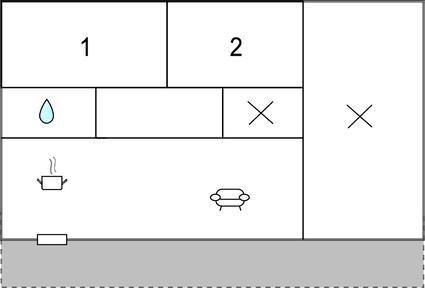Opholdsstue/køkken - 2 Sovepladser. (Sofa, madras eller lignende).