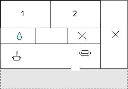 Opholdsstue/køkken - 2 Sovepladser. (Sofa, madras eller lignende).