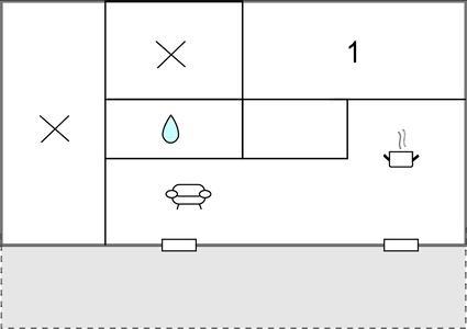 Opholdsstue/køkken - 2 Sovepladser. (Sofa, madras eller lignende).