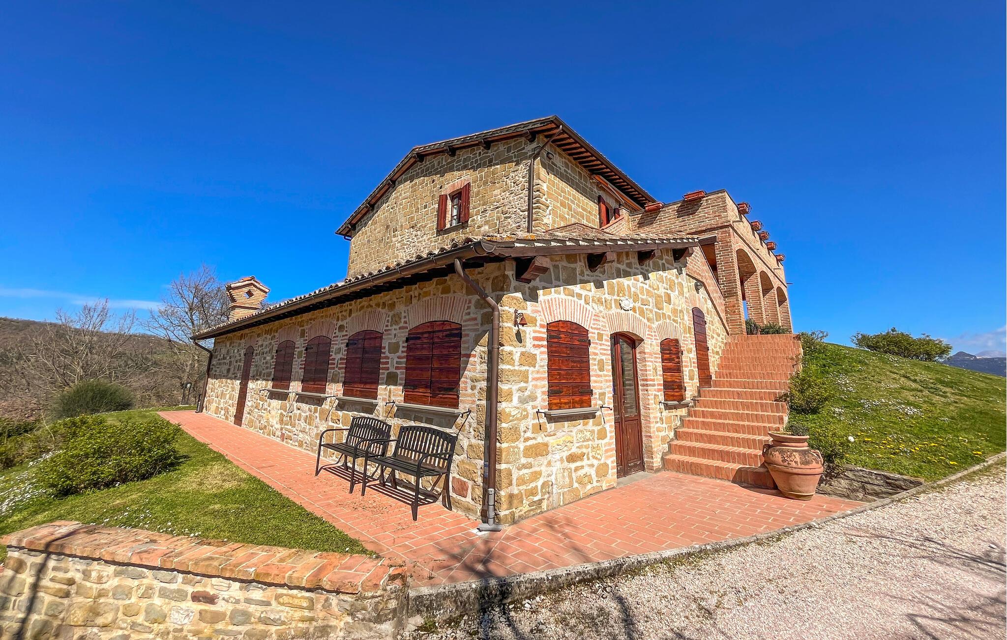 Velkommen til denne komfortable lejlighed, der har en virkelig fremragende beliggenhed i en yderst flot, renoveret bondegård. Med sin lyse, luftige indretning, rustikke træmøbler og moderne faciliteter får I her alt, I behøver, til årets bedste uger med familien. Prikken over i'et er og bliver udsigten over Gubbio, som er en attraktion i sig selv og kan nydes fra morgen til aften.