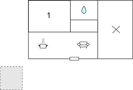 Opholdsstue/køkken - 2 Sovepladser. (Sofa, madras eller lignende).