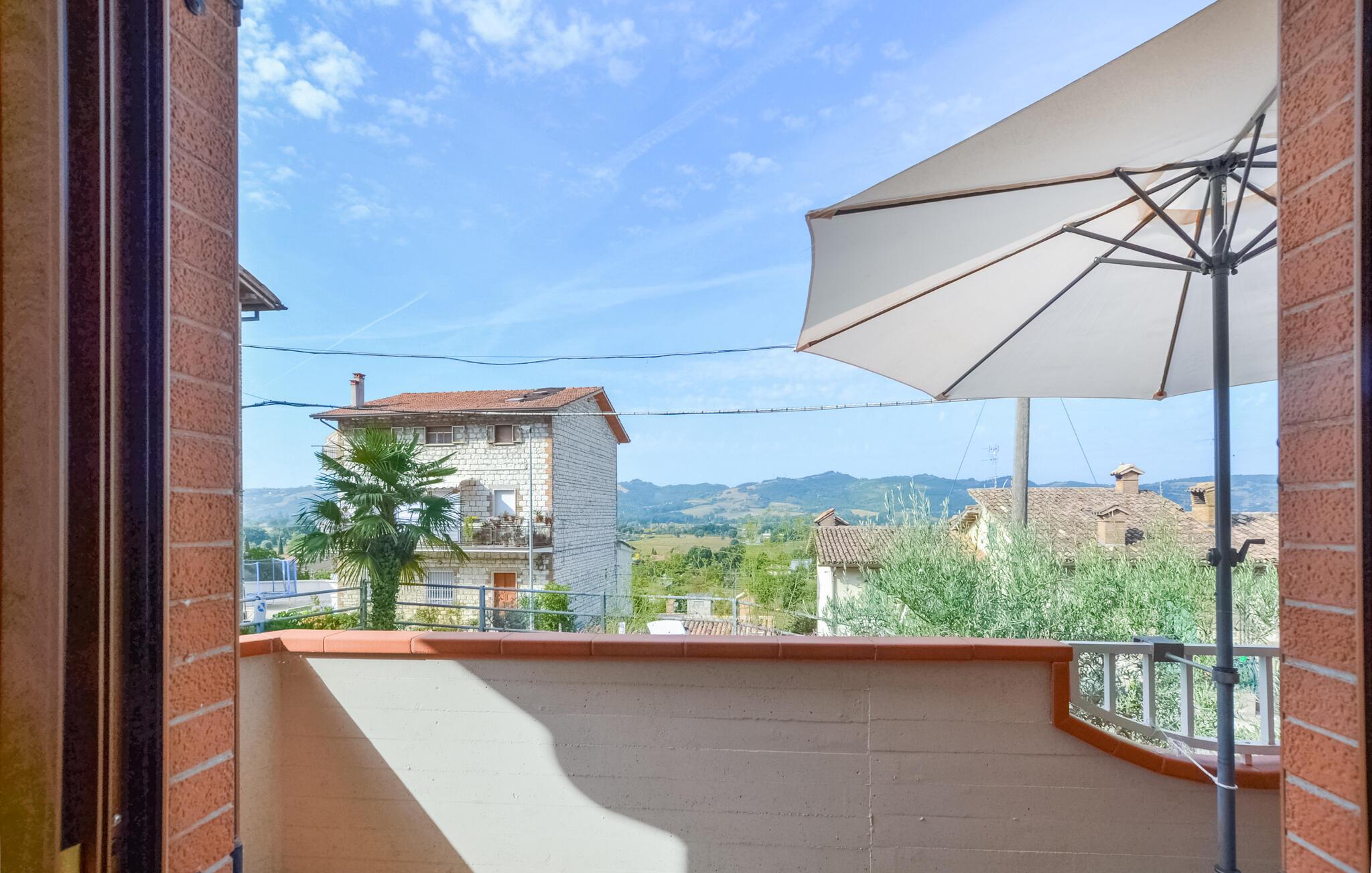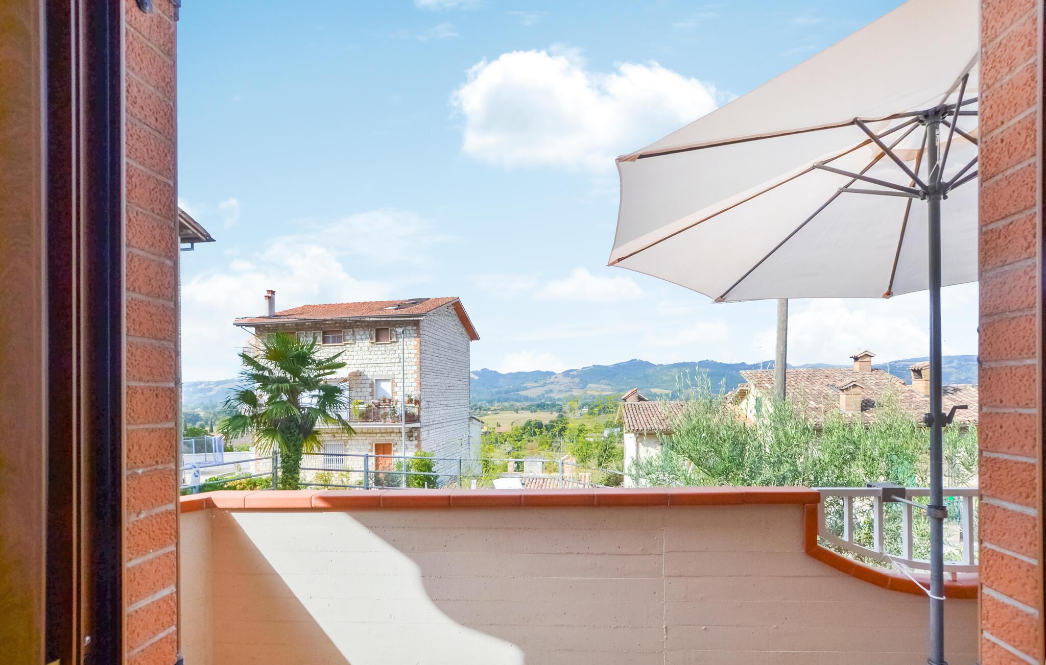 Tilbring jeres ferie i denne lyse og indbydende ferielejlighed i Gubbio, som ligger i et charmerende hus med en anden ferielejlighed. Her kan I nyde en harmonisk blanding af moderne komfort og traditionel italiensk atmosfære. Store vinduer oversvømmer rummene med naturligt lys og skaber en venlig atmosfære for jer. Det stilfulde interiør og de varme farver inviterer jer til at slappe af og lægge hverdagens stress bag jer. Det veludstyrede køkken er perfekt til at lave mad sammen og nyde hyggelige aftener.