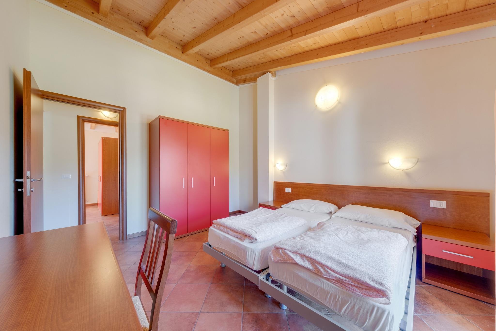 En smuk lejlighed omgivet af bjerge, direkte ved søen Idro. Sammen med 21 andre lejligheder udgør dette hus Vico Residence. Lejligheden er pæne og farverigt dekoreret. Der er et lille, delt fitnessrum med sauna og dampbad. Der er også en fælles vaskemaskine og tørretumbler til rådighed. Fra din balkon eller terrasse har du en fantastisk udsigt over søen og Dolomitterne. Børnene vil have det sjovt i den fælles pool, når de er trætte af at lege i vandet, kan de have det sjovt på de forskellige legepladser og den store græsplæne. Husene ligger i udkanten af landsbyen Crone, dette landlige område er ideel til vandrere og mountainbikere, der er smalle bjergstier, der byder fra landsby til landsby. Jo højere du går jo mere smuk udsigt over søen Idro. Om aftenen efter aftensmaden kan du tage en god tur til landsbyen for en lækker italiensk is eller en dejlig kølig drink. Hvis du gerne vil udforske det omkringliggende område lidt mere, er byen Brescia på 50 kilometer absolut et besøg værd. For golfentusiasterne blandt os er der en smuk golfbane ca. 35 km væk.