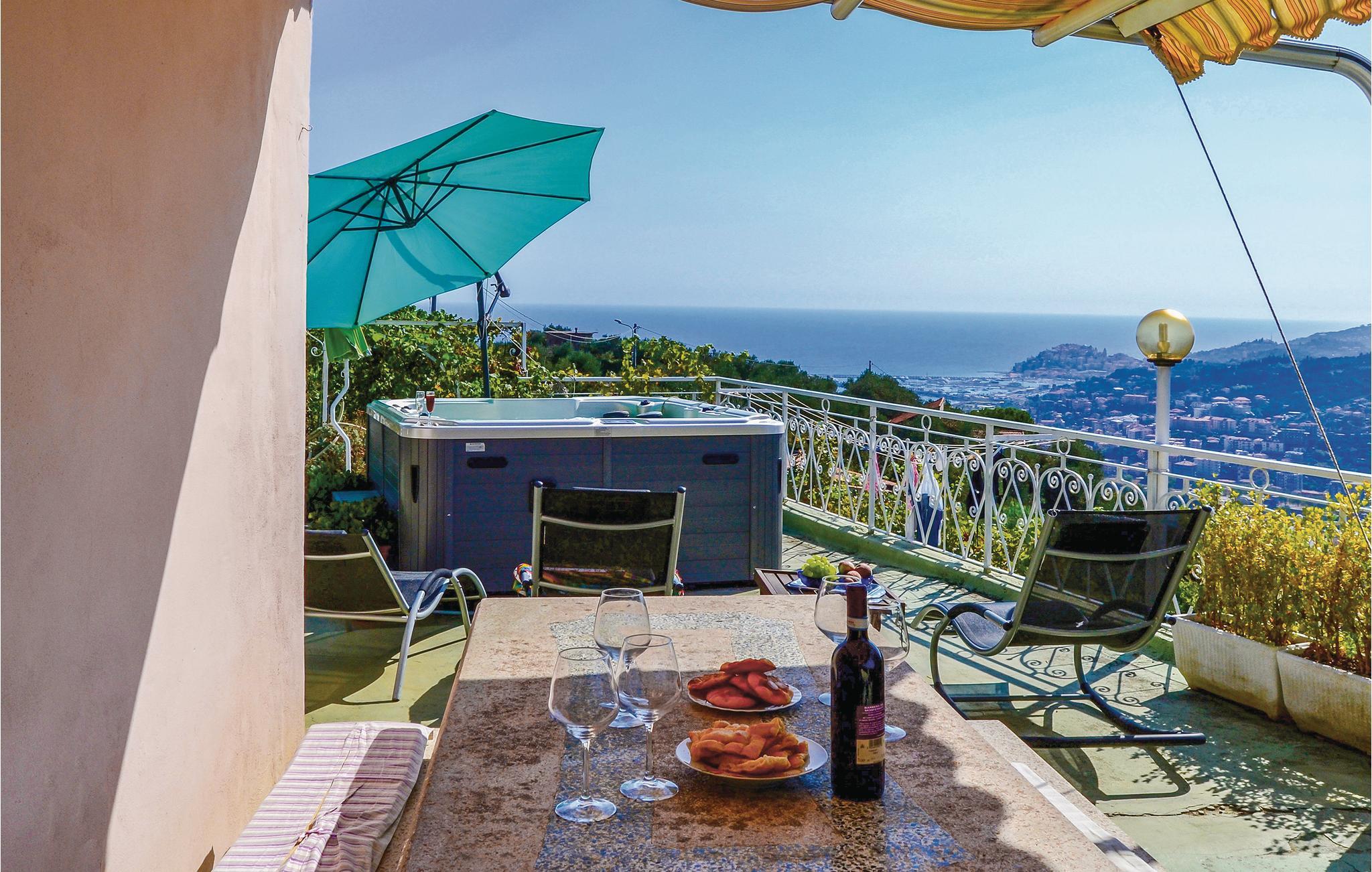 Dejligt feriehus med udsigt over havet, kun få kilometer fra strandene og få minutter fra den berømte Villa Grock. Huset er smagfuldt indrettet og har en stor terrasse med bekvemme havemøbler og i haven er der både bocciabane og en gynge. Ca. 4 km væk er Imperias centrum, berømt for sine strande med fint gyldent sand og vigtige seværdigheder fra Vele d’Epoca, de historiske både, regatta, auktioner og ture med guide. Takket være den gode beliggenhed er det hurtigt og nemt at komme til landsbyerne og baglandets borge, den botaniske have Hanbury, kurbadene i Pigna og den berømte blomsterby Sanremo. Pas på: vejen op til huset er stejl, smal og med modkørende trafik.