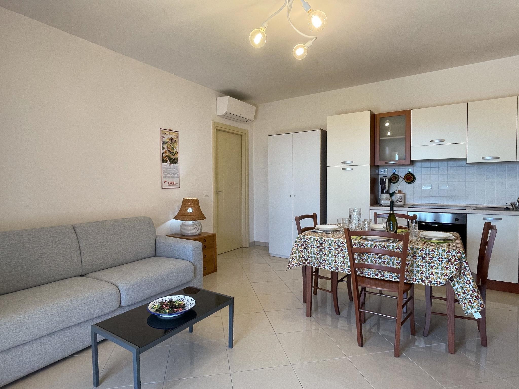 "Casa Damiano", 2-room apartment 45 m2, on the ground floor, south facing position. Bright, beautiful and cosy furnishings: 1 room with 1 double bed (1 x 160 cm). Exit to the terrace. Kitchen-/living room (oven, 4 induction hot plates, toaster, kettle, freezer, electric coffee machine) with dining table, 1 double sofabed (1 x 160 cm). Exit to the terrace. Shower/bidet/WC. Air-conditioning, forced-air heating (extra). Heating available only from 15.10. to 15.04. Beautiful panoramic view of the sea and the resort. Facilities: washing machine, mosquito net, baby cot. Internet (WiFi, free). Parking space n 12. IT008031C266BVBWRY