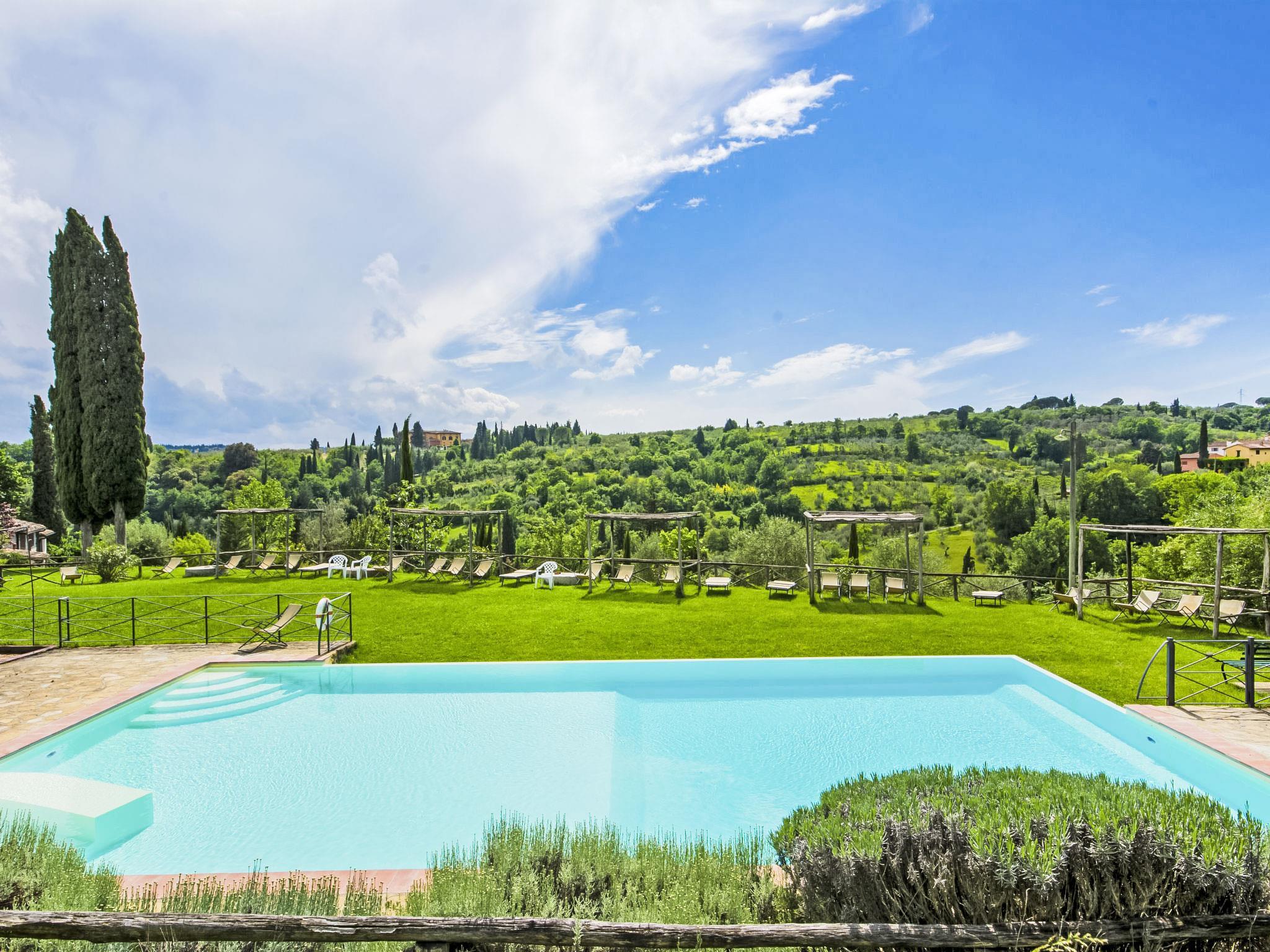 10 km from Firenze: Holiday development "Il Borgo", renovated in 2009. 15 apartments in the property. 10 km from the centre of Firenze, 19 km from the centre of Greve in Chianti, 70 km from the centre of Siena, in an elevated position on top of a hill, in the countryside. For shared use: garden (fenced), swimming pool (14 x 7 m, depth 140 cm, seasonal availability: 03.May. - 27.Sep.). Outdoor shower, garden furniture, children's playground. In the complex: reception, WiFi, central heating system, washing machine (for shared use), heating to be paid on the spot, heating available only from 01.Nov. - 07.Apr.. Motor access to the house (200 m via unmade road). Parking at the house. Shop 1 km, grocery 1 km, supermarket 1 km, restaurant 1 km, bar 1 km, bus stop "Grassina 31 - 32" 1 km, sandy beach "Versilia" 120 km. Golf course (18 hole) 4 km, indoor tennis centre 7 km. Nearby attractions: Fiesole 14 km, San Casciano in Val di Pesa 20 km, Panzano 27 km, Outlet The Mall 30 km, Pisa 95 km. The holiday farm Borgo is a old village dated back to the 16 century situated on the hill surrounding Toscana and hugging Florence. The farm is set on a landscape with olive trees, vineyards and cypresses. It has been completely renovated with care to the original features of the typical tuscan country houses. Borgo has 15 apartments, all independant, tastefully furnished. There is a large private car park and the whole area is monitored by video surveillance. The apartments are set in a large garden ideal to relax and walk around. The wonderful panoramic swimming pool with hydromassage and sun deck is situated just a few yards from the apartments. wi-fi service only in the outside area.