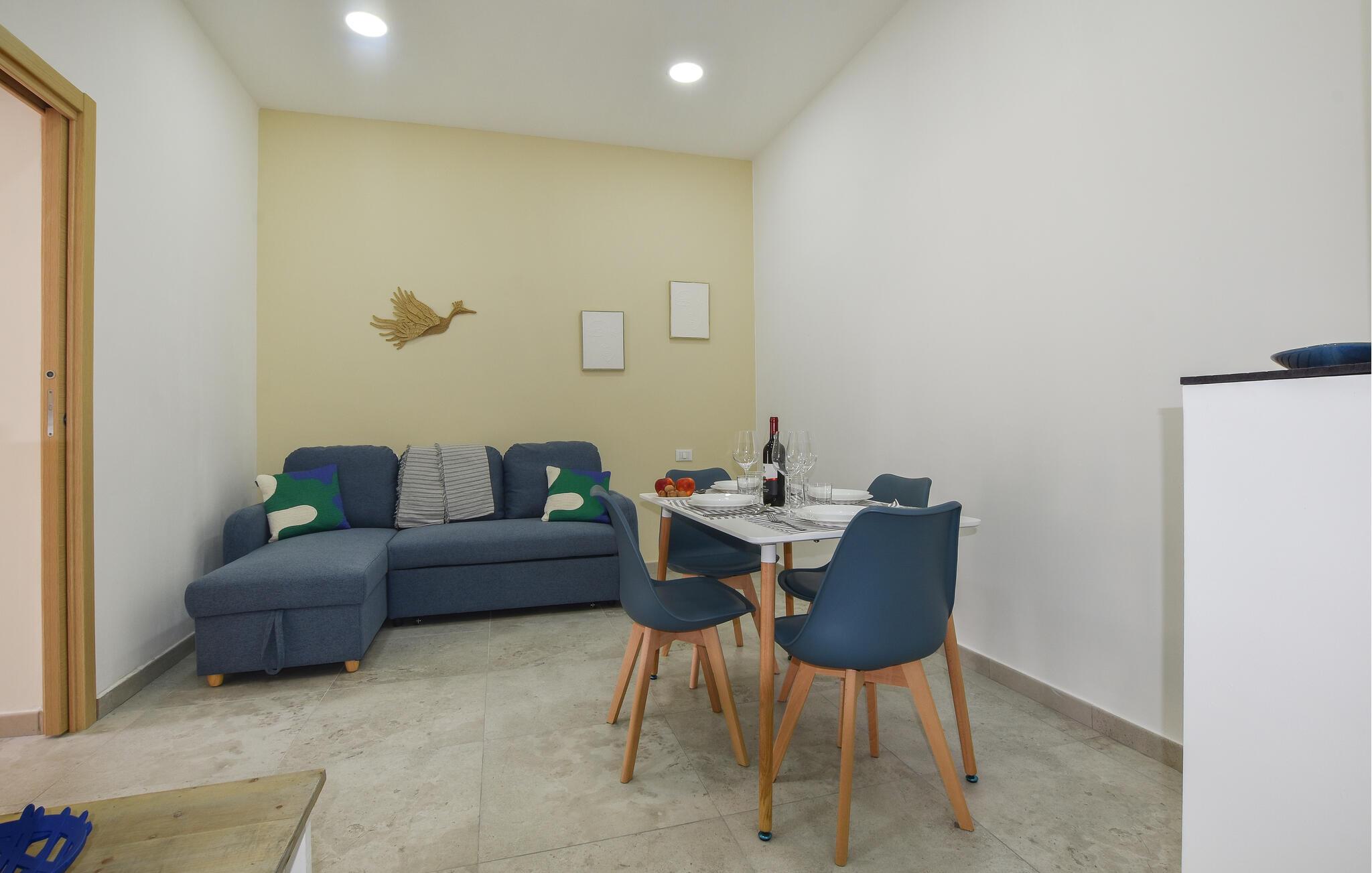 Dette indbydende dobbelthus ligger kun en kort gåtur fra den fine sandstrand og tilbyder jer et velholdt midlertidigt hjem, mens I opdager Siciliens kultur, natur og gastronomi. Planlæg jeres aktiviteter over afslappede måltider og slap af efter en begivenhedsrig dag på sofaen eller nyd et brætspil.