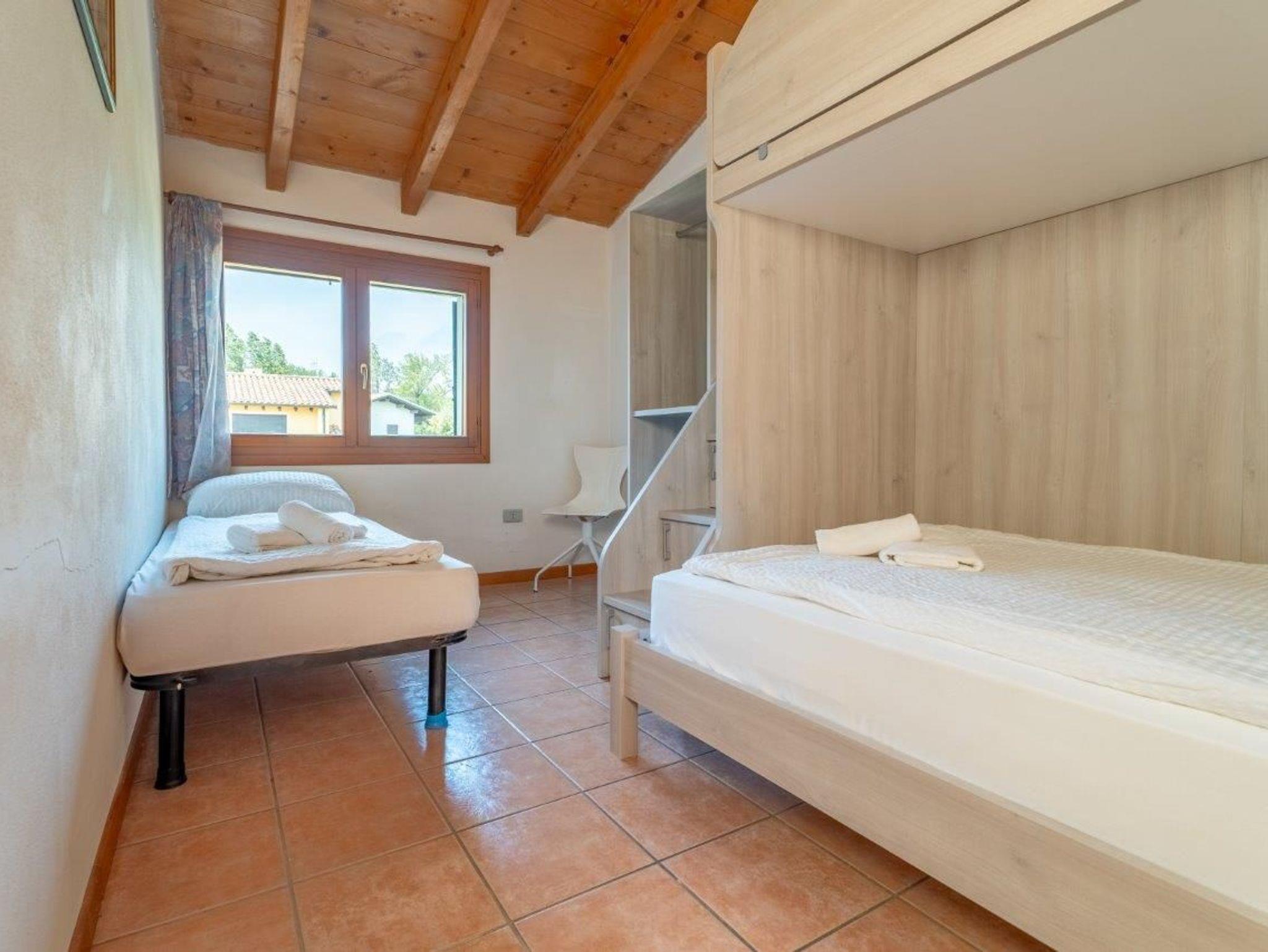 • Ein Schlafzimmer mit zwei Einzelbetten und einem Etagenbett